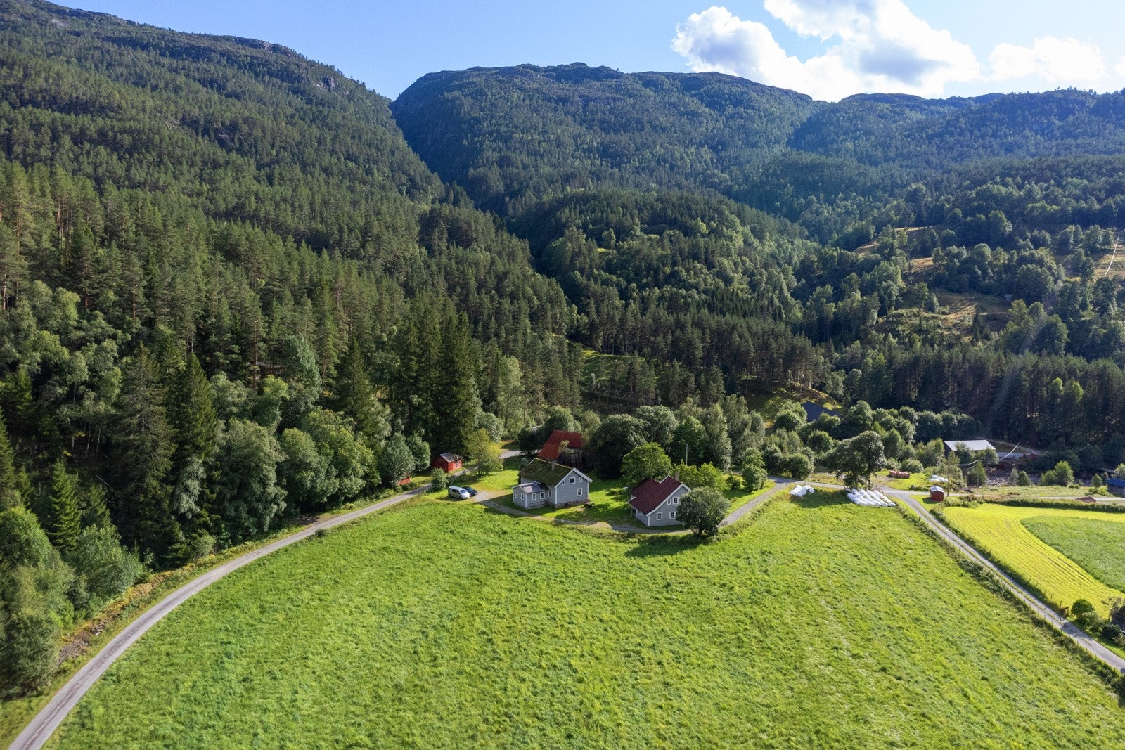 Eiendommen ligger ca. 205 m.o.h. og har adresse Gardavegen 437, 4244 Nesflaten. Avstand til sentrum i Nesflaten med butikk, skole og barnehage er ca. 9 km. Avstand til kommunesenteret i Suldal er ca. 55 km.