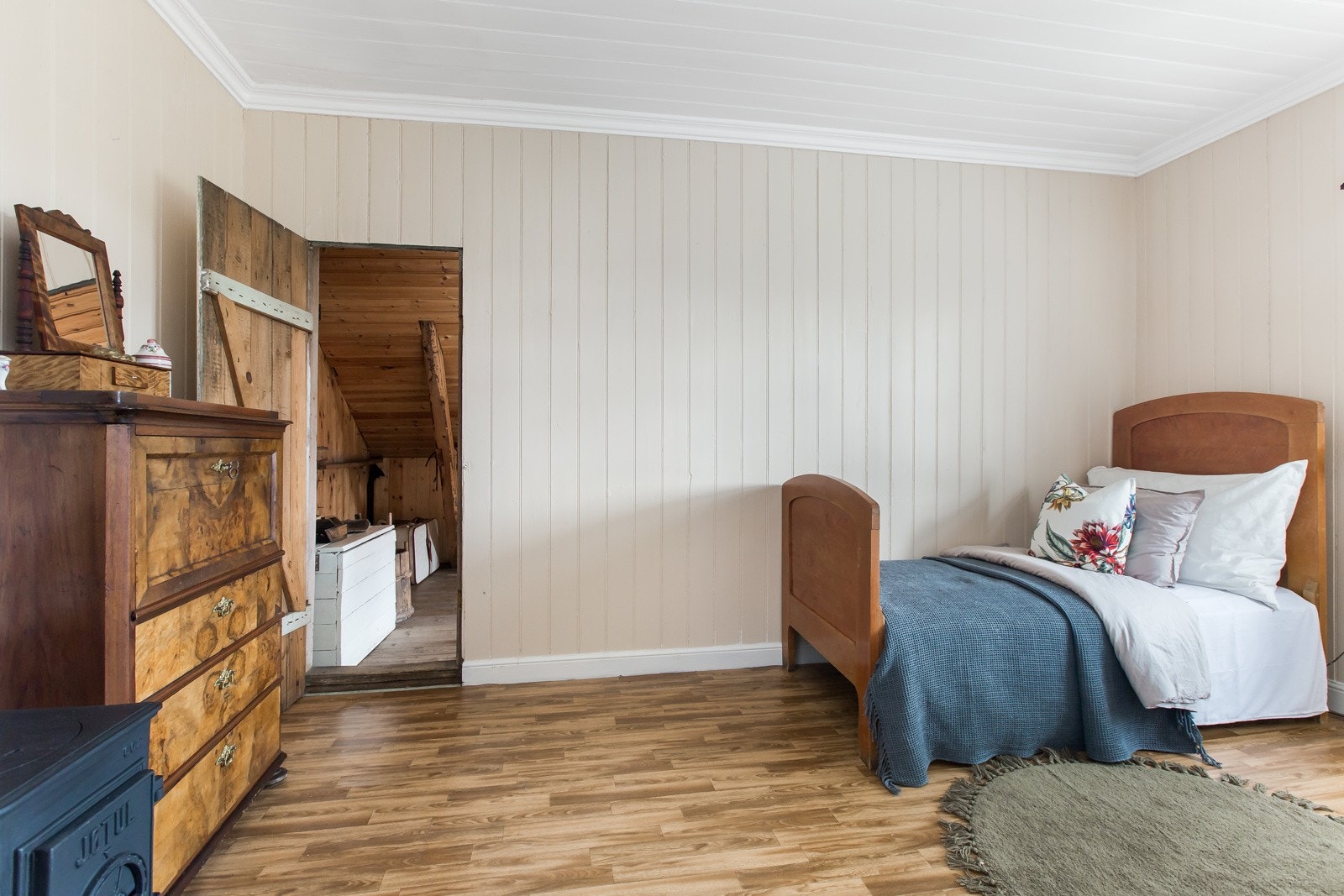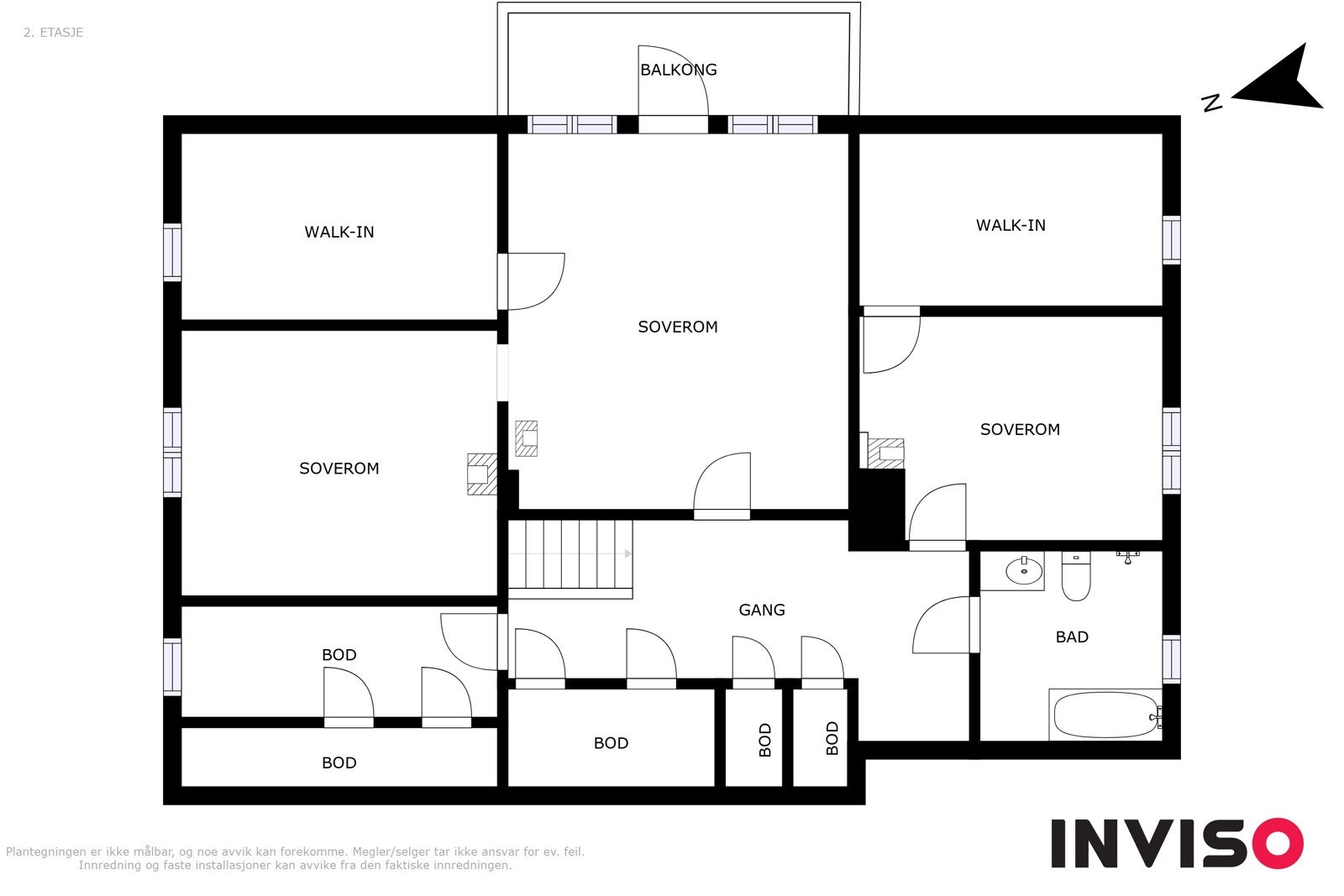 takhøyde med kneloft og består av 3 soverom, bad og 3 større bodrom. Planløsningen i huset er