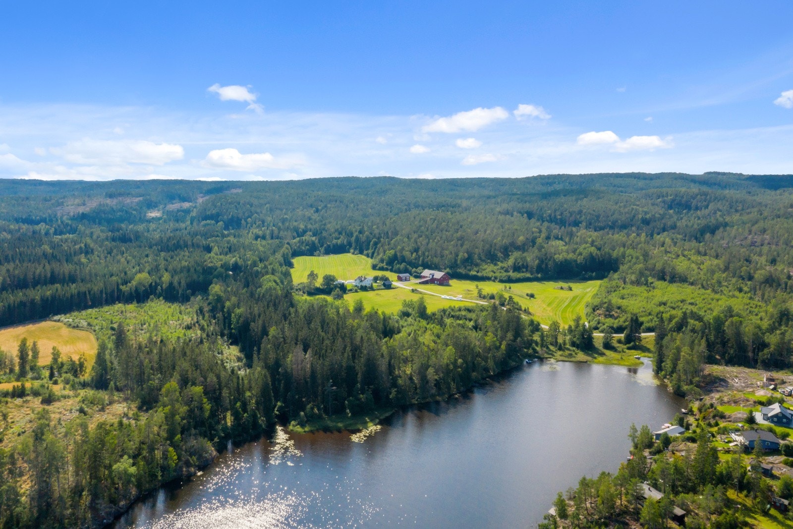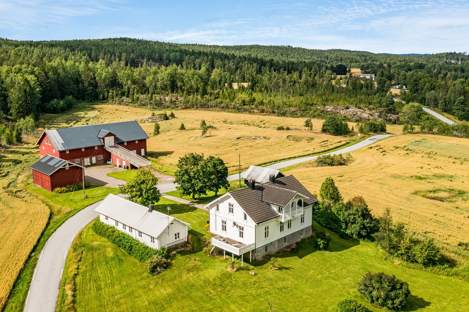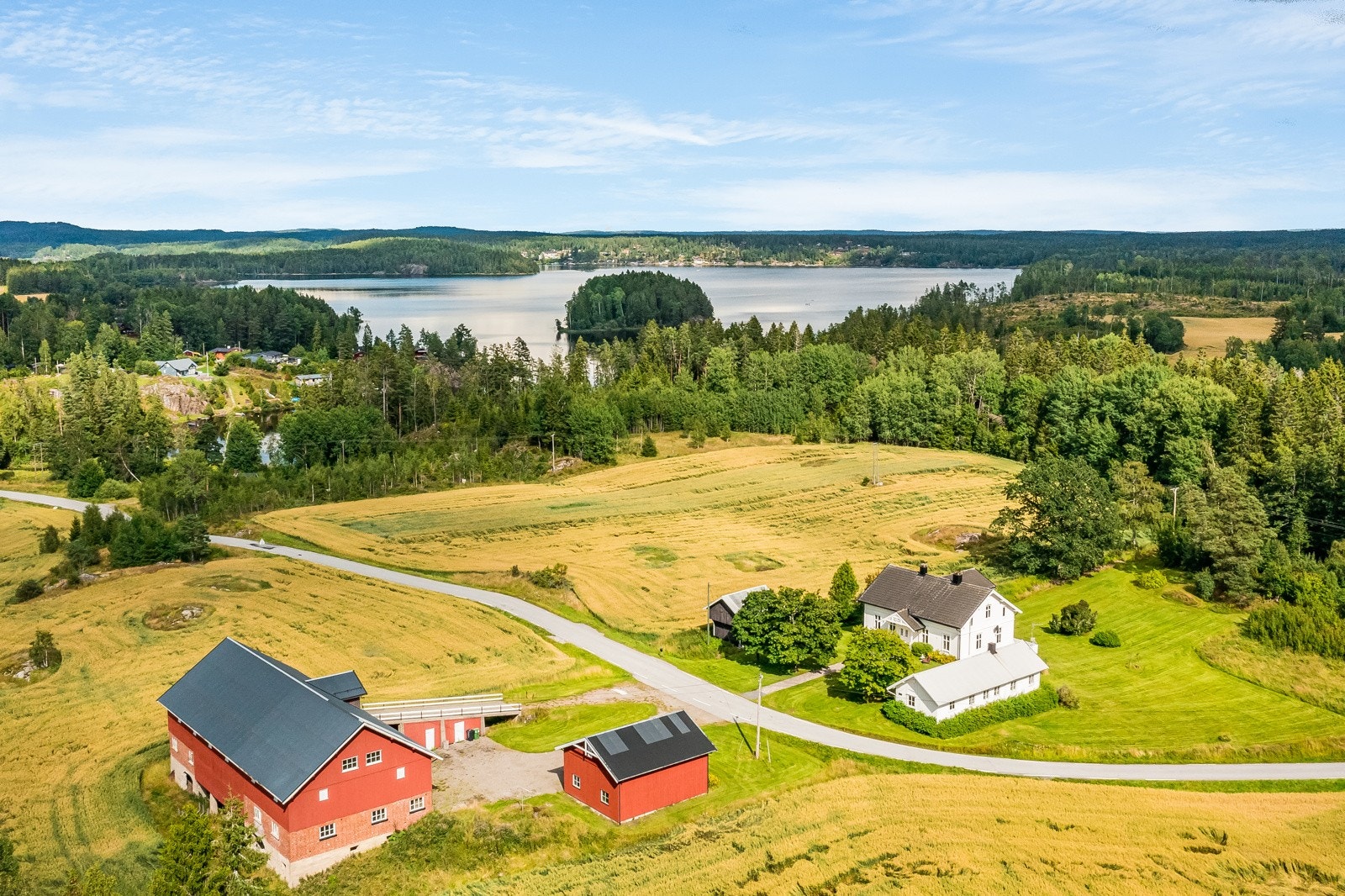 Tidligere Teigen gård | To bolighus, stabbur, vognskjul og låve | 17,8 dekar totalt og tinglyst båtplass i Ara