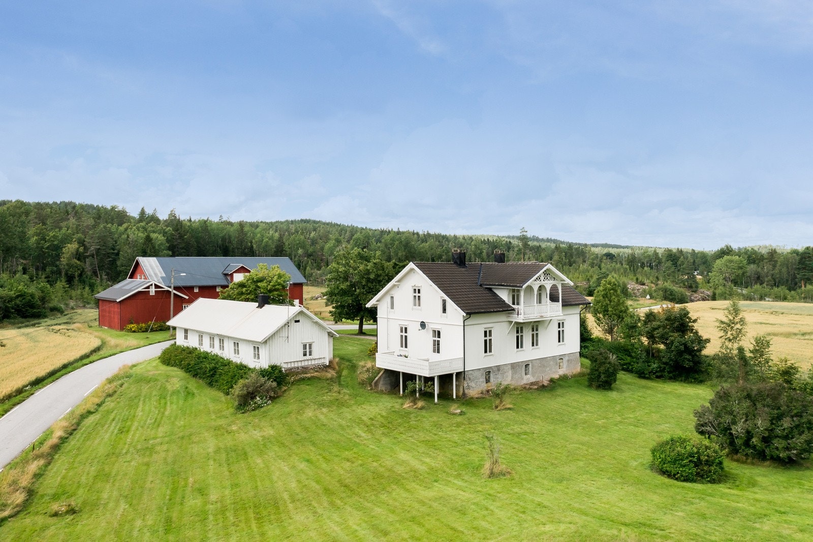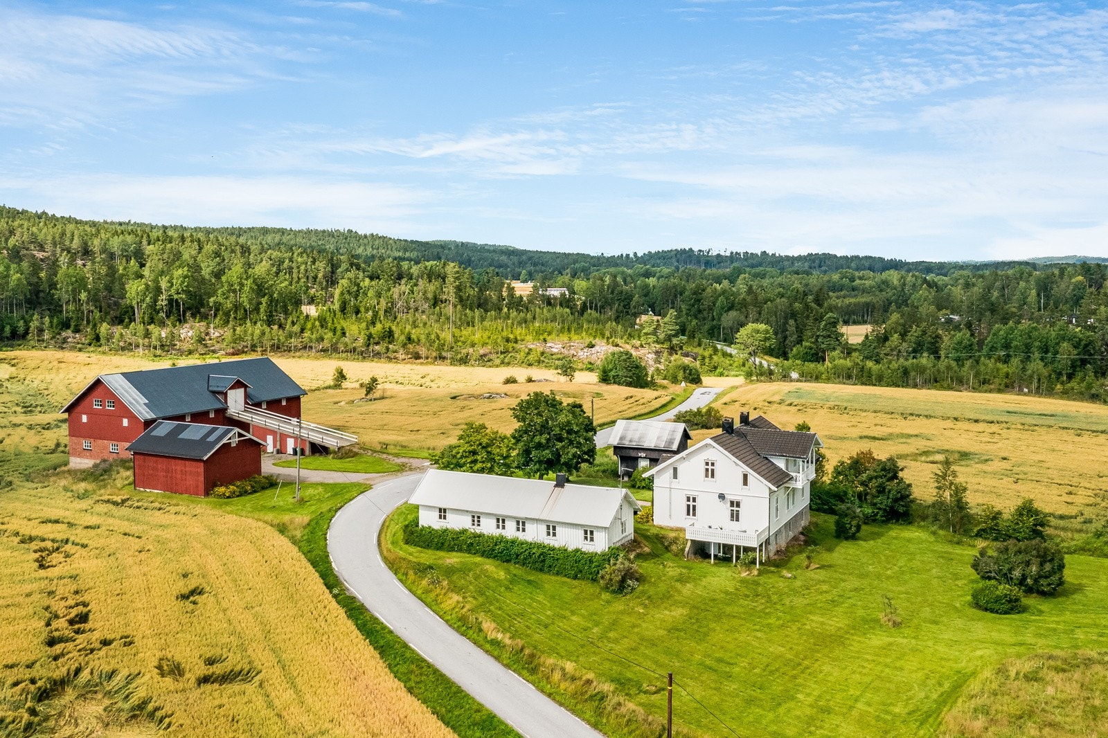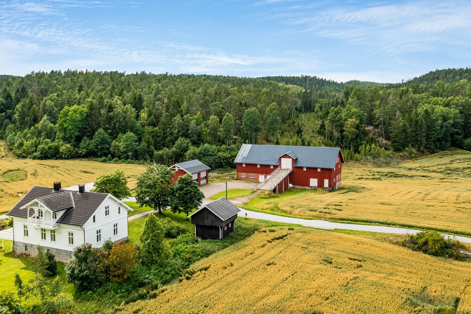 Tidligere Teigen gård | To bolighus, stabbur, vognskjul og låve | 17,8 dekar totalt og tinglyst båtplass i Ara