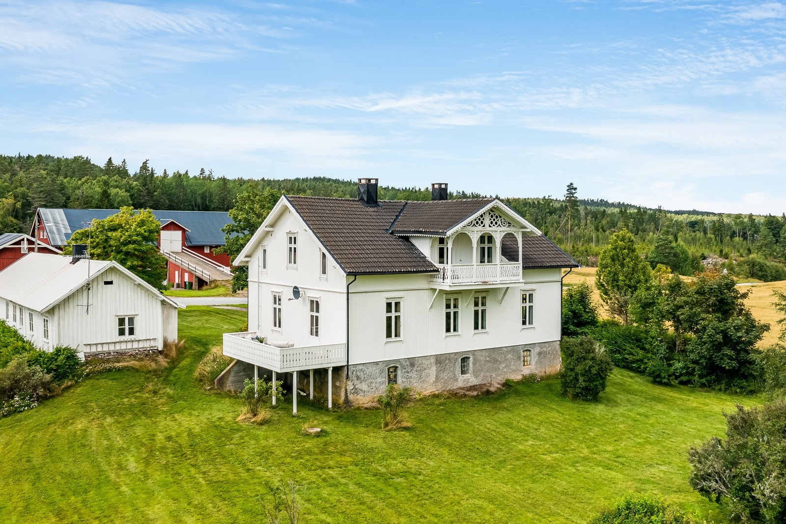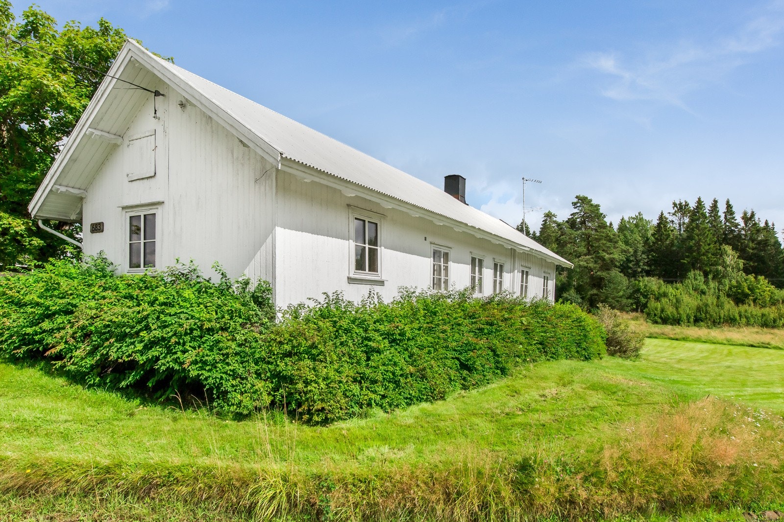 Våningshuset er en flott sveitserbygning oppført i 1877 og har i dag to fulle etasjer med god takhøyde.
