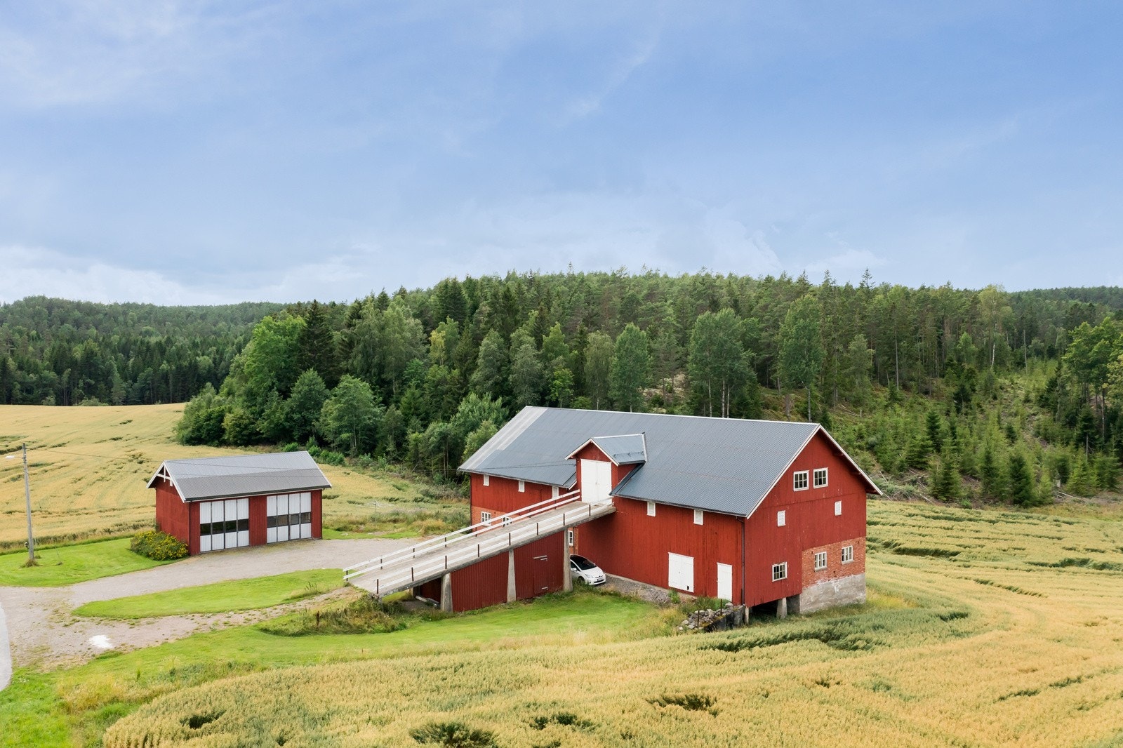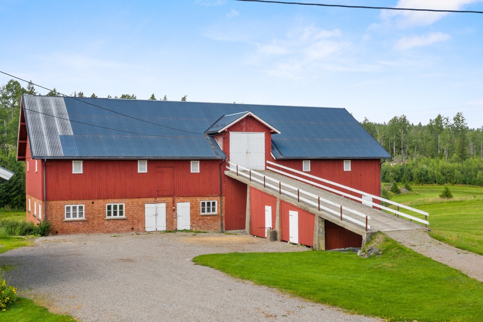 originalt med en eldre fjøsdel, løer og kjørebro i andre etasje. Utvendig låvebru er støpt og står plassert