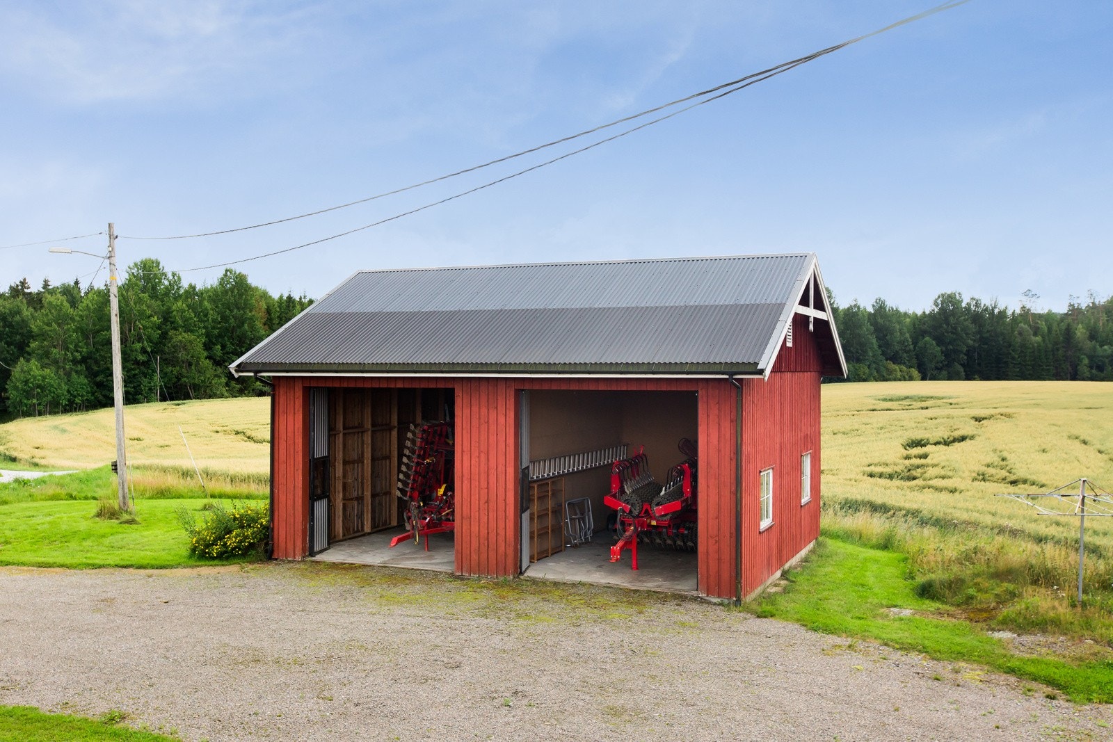 Vognskjulet er stolpefritt og er et driftsrelevant bygg for lagring av maskiner og redskap. Bygningen har