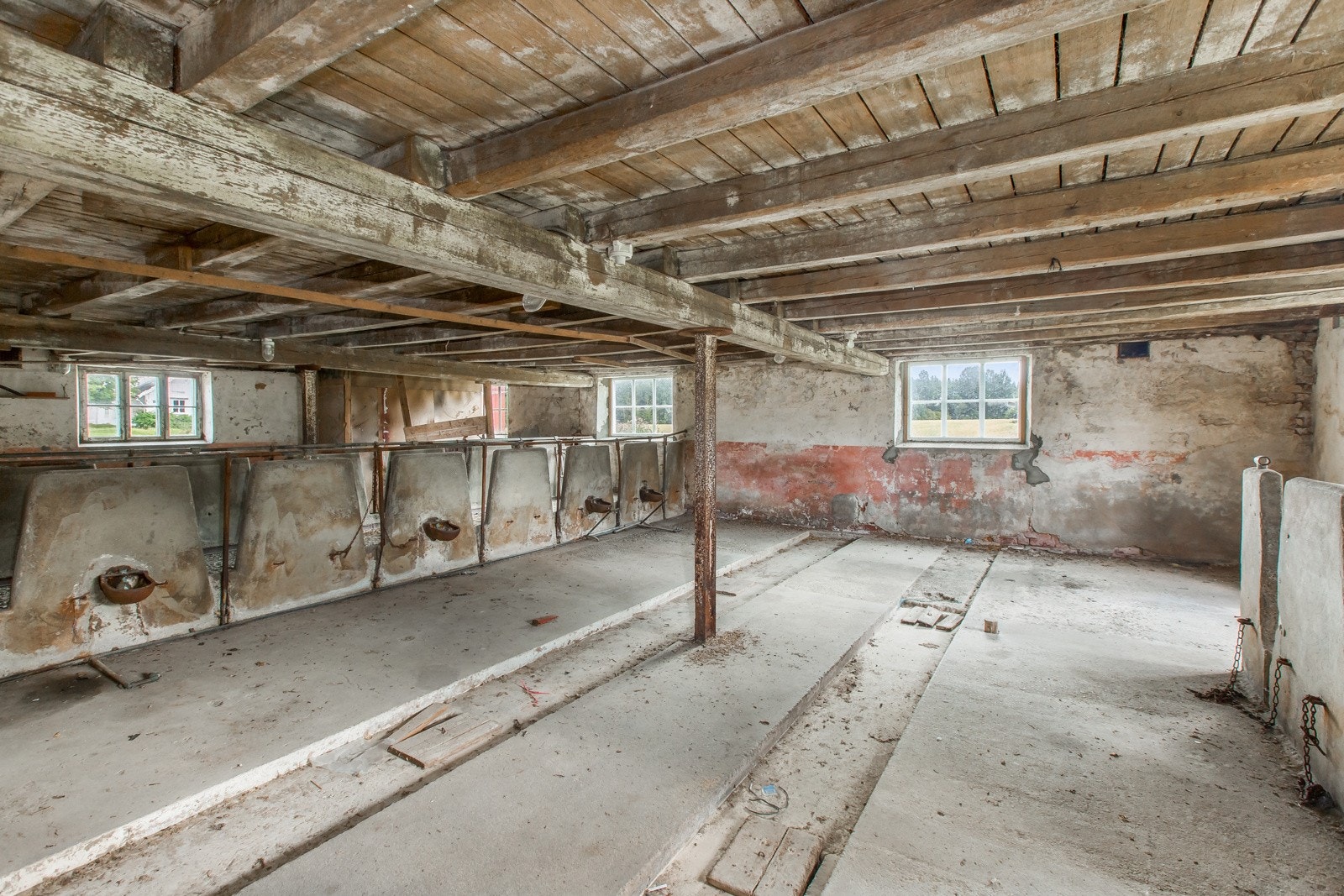 Ved overtakelse av eiendommen blir våningshuset og kårbolig ryddet og rengjort. Øvrige bygninger og