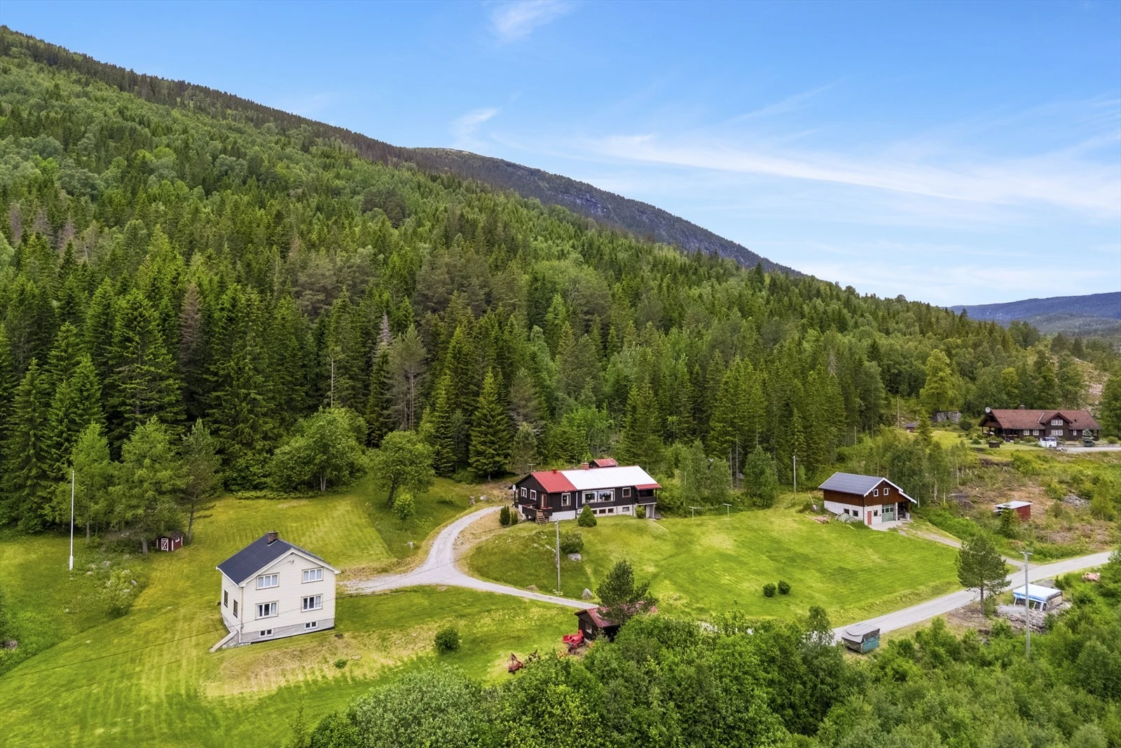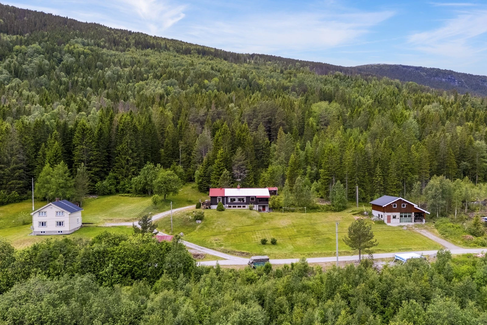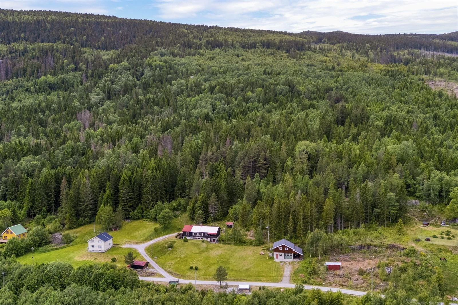 Småbruk på ca. 47 daa med idyllisk og usjenert beliggenhet | 2 eneboliger og verksted m/garasje | ca. 40 dda prod. skog