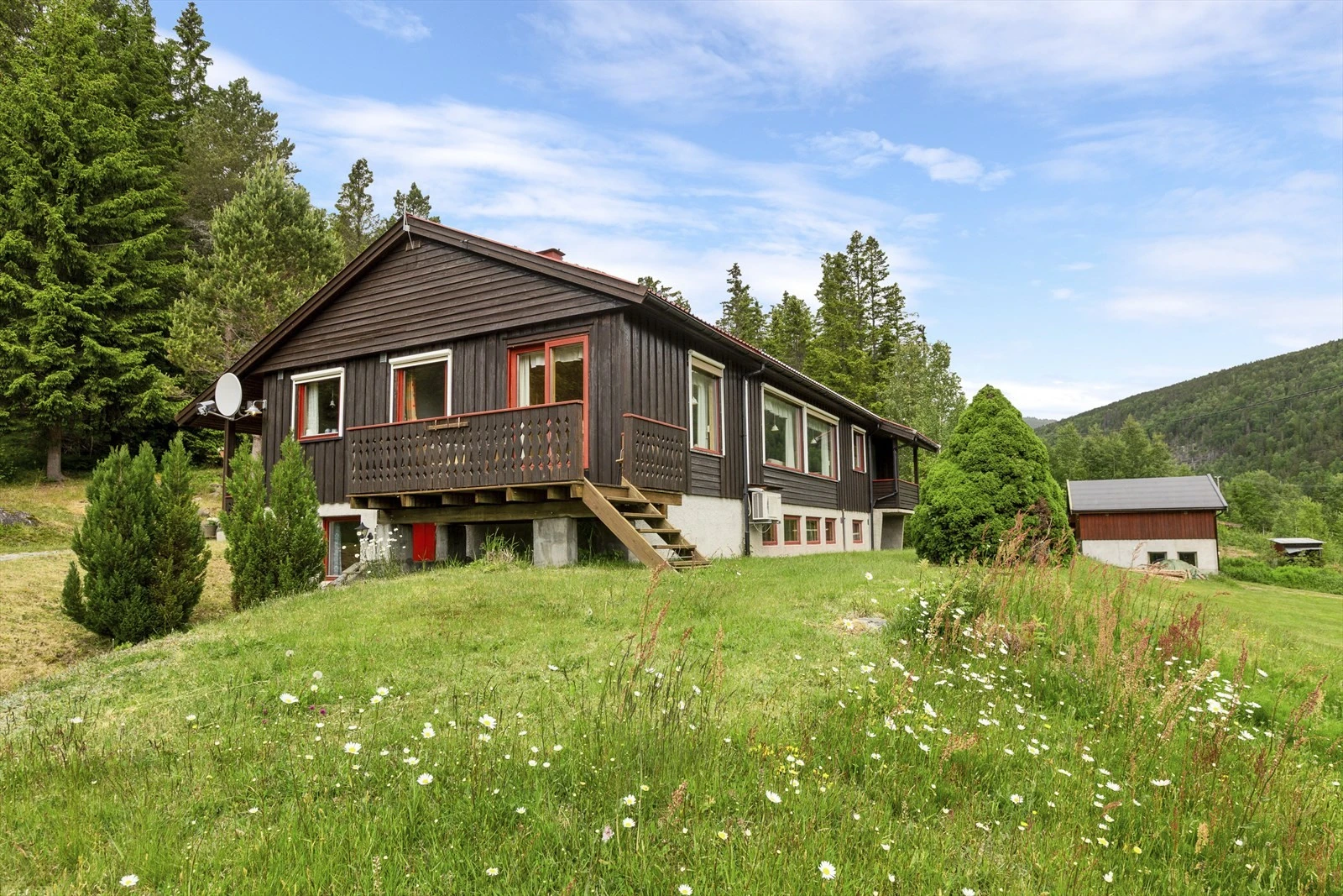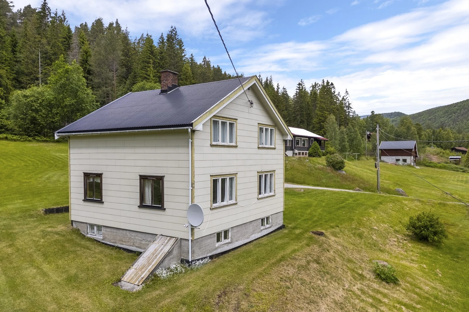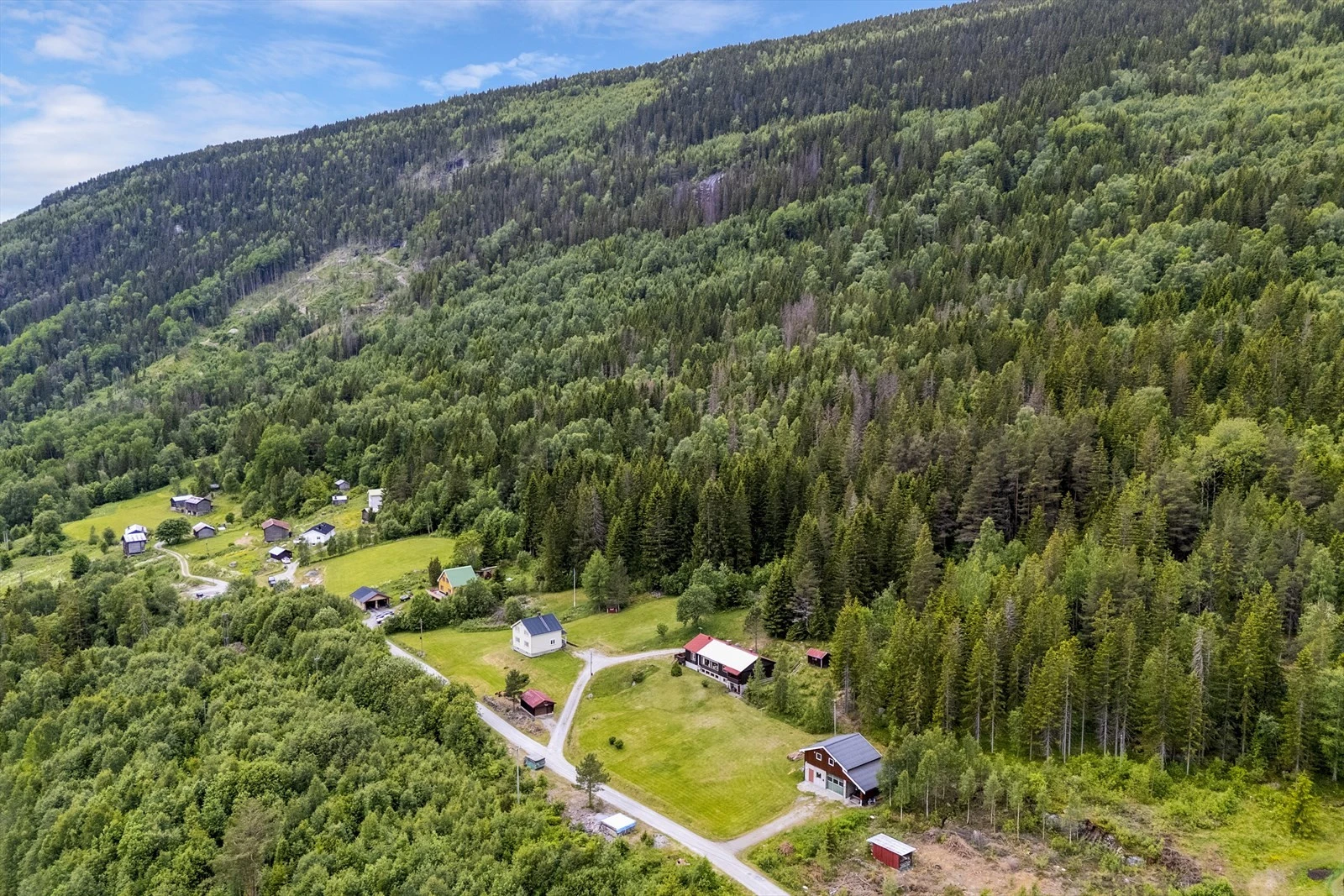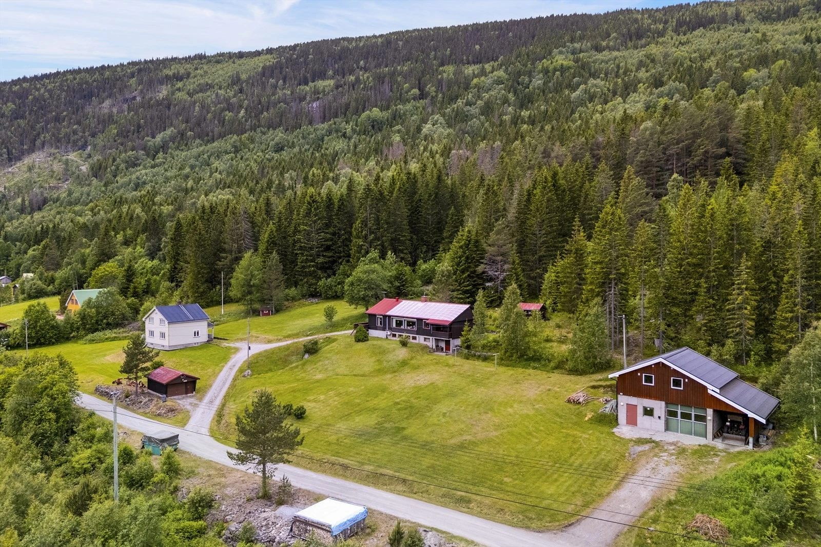 Småbruk på ca. 47 daa med idyllisk og usjenert beliggenhet | 2 eneboliger og verksted m/garasje | ca. 40 dda prod. skog