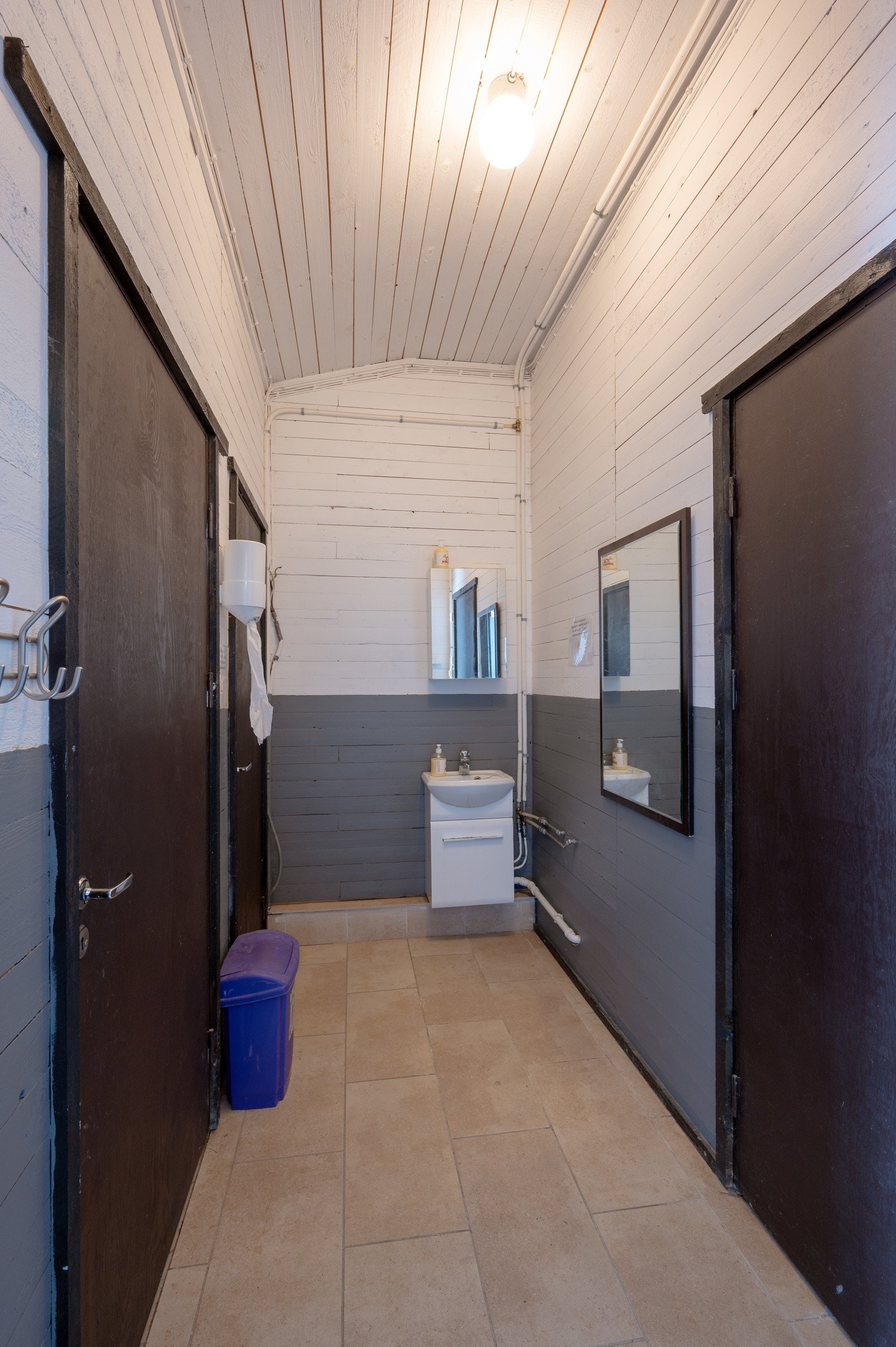 overflatebehandlet og flisrommet er isolert og platebeslått. Bygningen har også blitt malt opp innvendig