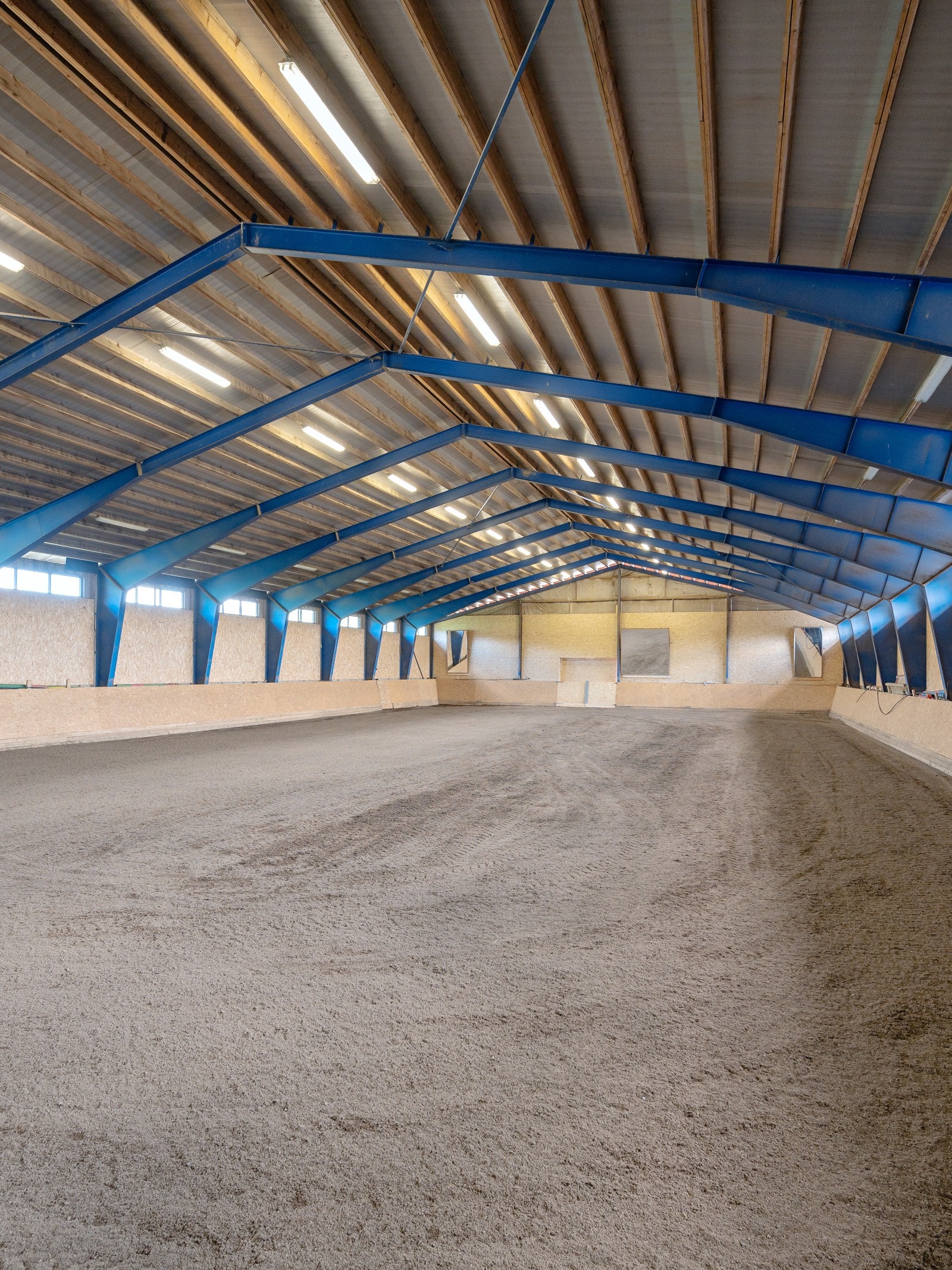 Ridehallen ble oppført i 1997 og har et totalareal på 1416 kvm. Ridehallen på 20x40 meter har et gruset