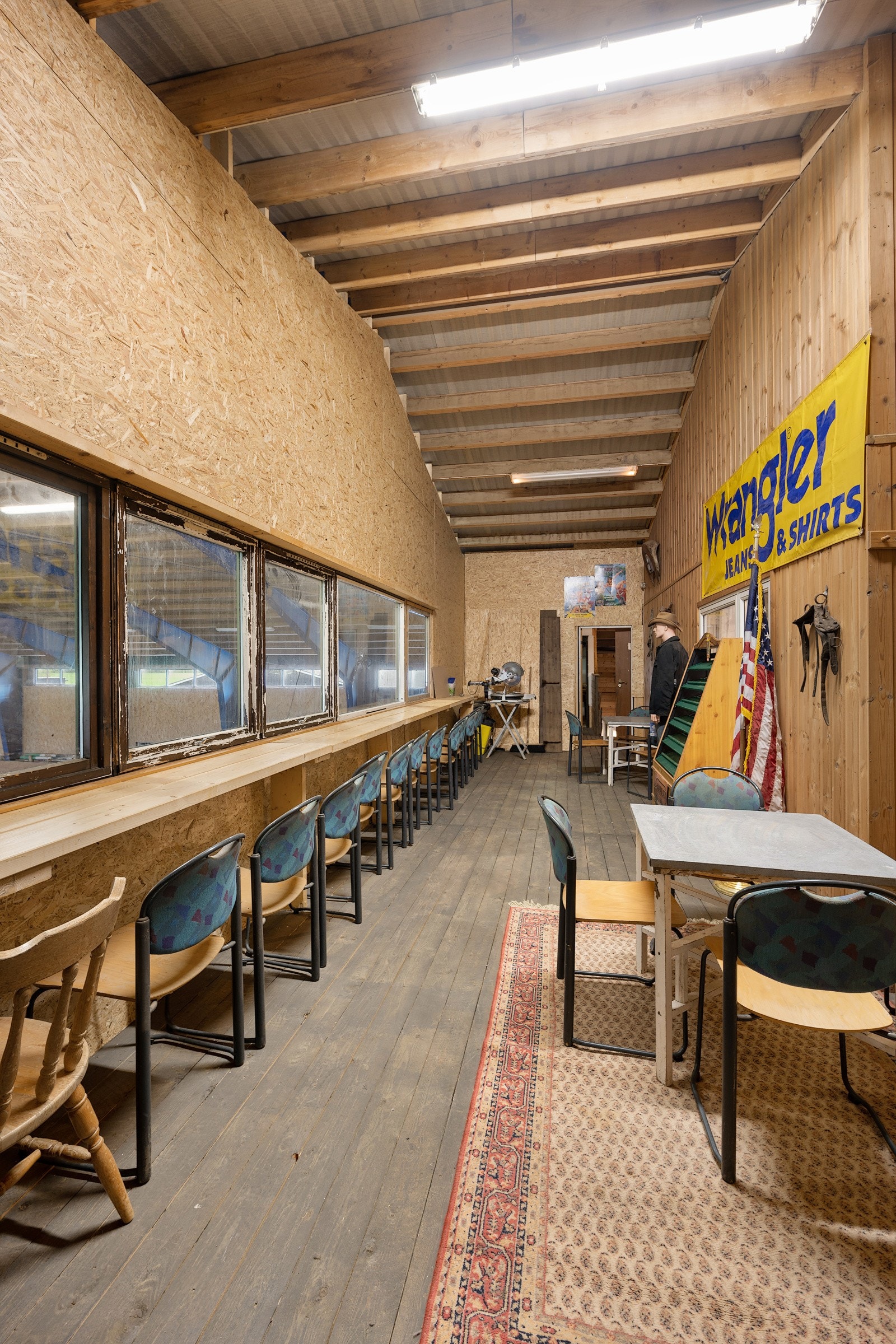 fine tilskuerfasiliteter mot ridehallen og et hyggelig kafélokale med kjøkkenfasiliteter og en stor salong