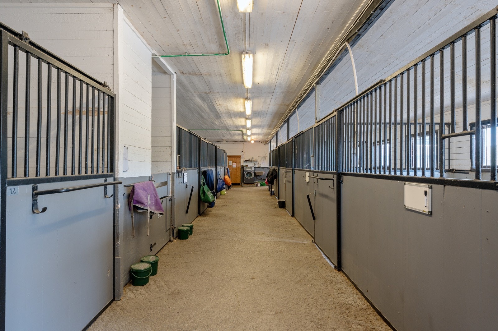 oppgraderinger. Stallen har en rasjonell og moderne inndeling med 16 hestebokser, 1 ponnyboks, 4