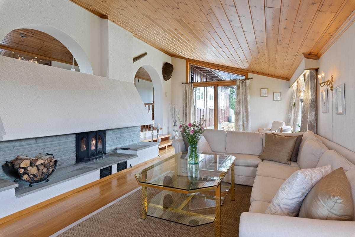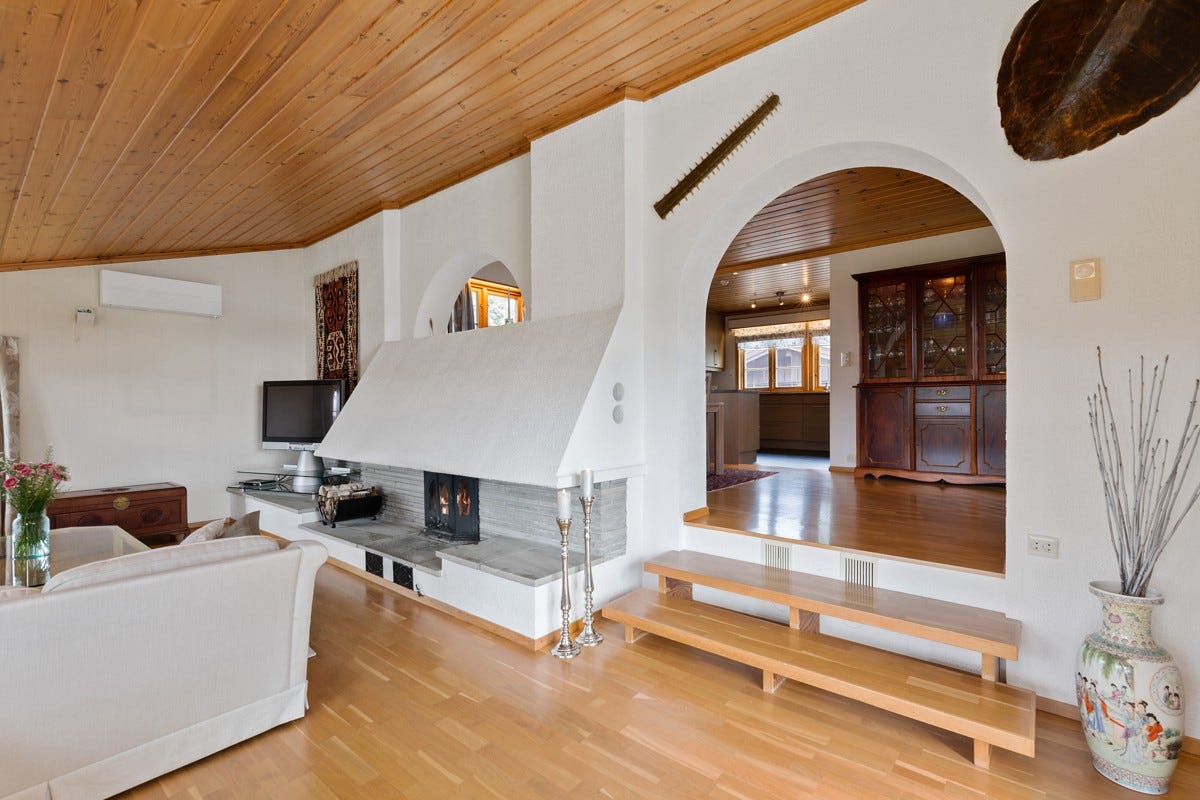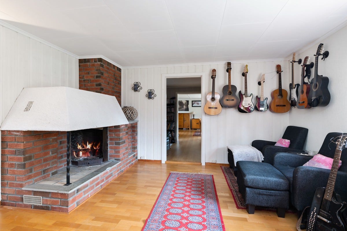 flere rom, blant annet kjellerstue, soverom og flere boder. I hovedetasjen består boligen av stue,
