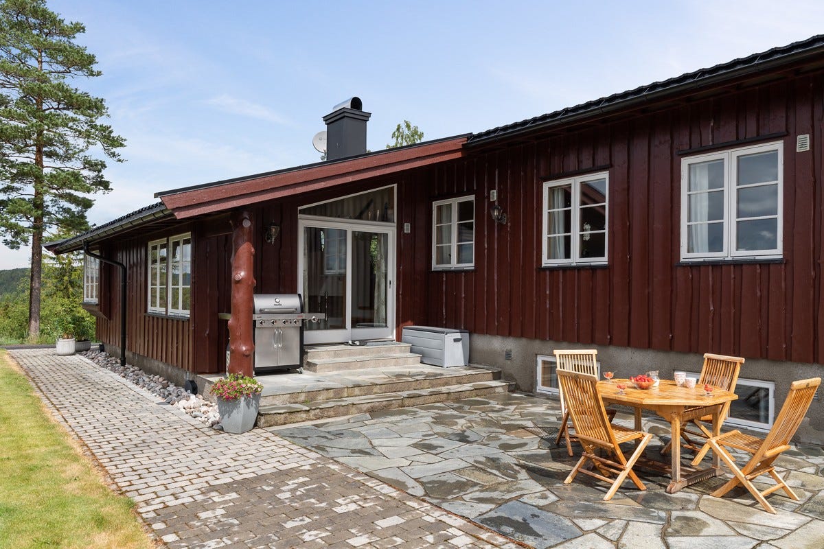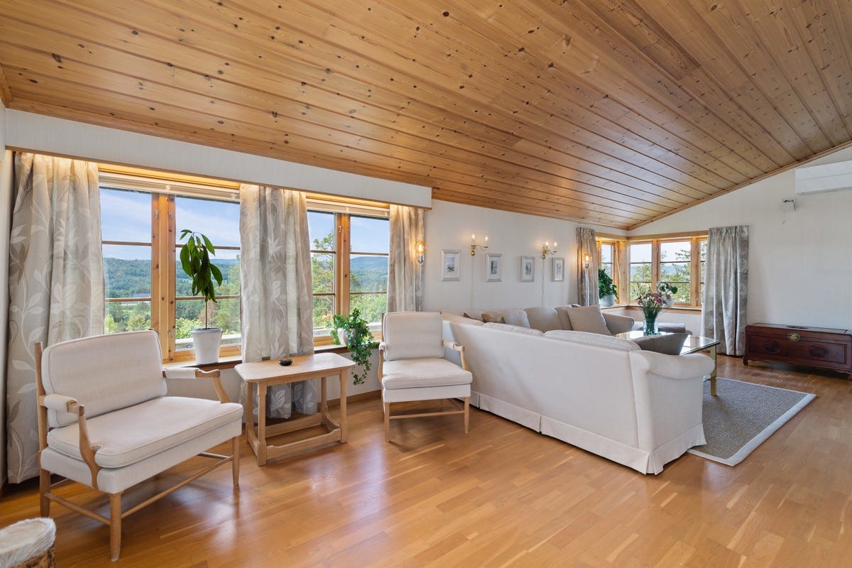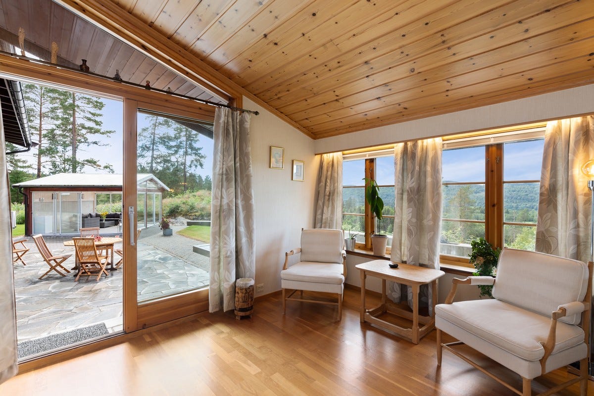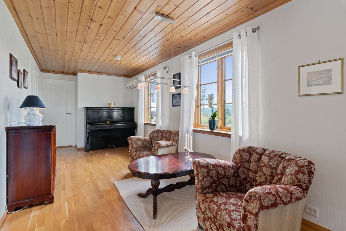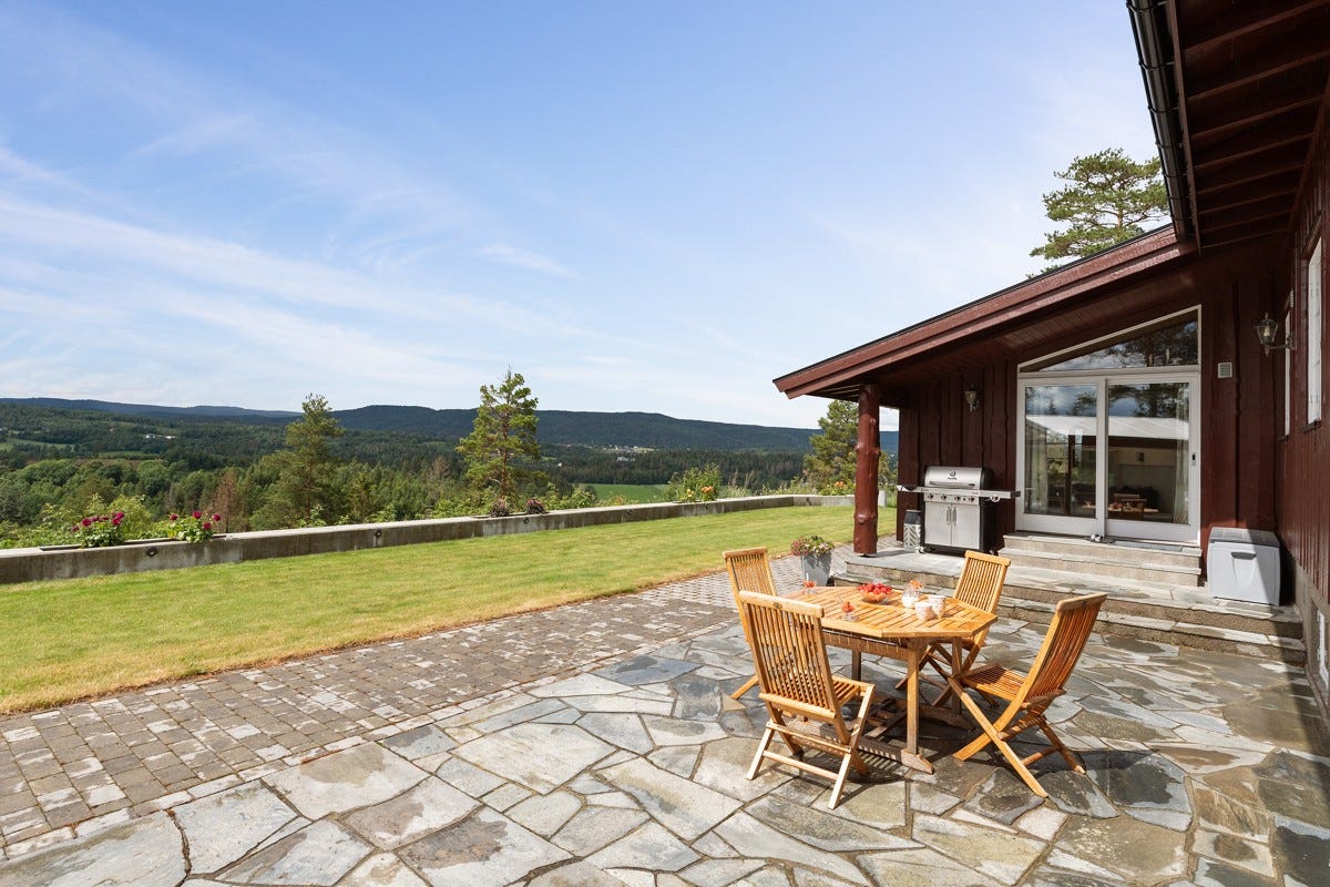 Hålandveien 19 er oppført i 1984 og har flott beliggenhet på eiendommens høyeste punkt med vid utsikt til