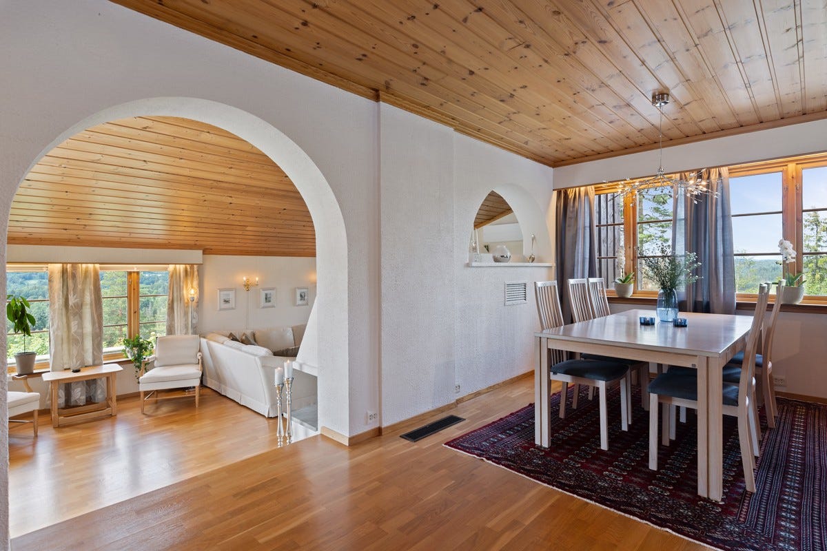 syd, vest og nord. Boligen har gjennomgående normalt god standard og egen sekundærinngang til kjeller