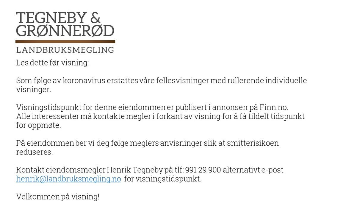 salgsoppgaven. Interessenter på eiendommen får også mulighet til å befare denne eiendommen i