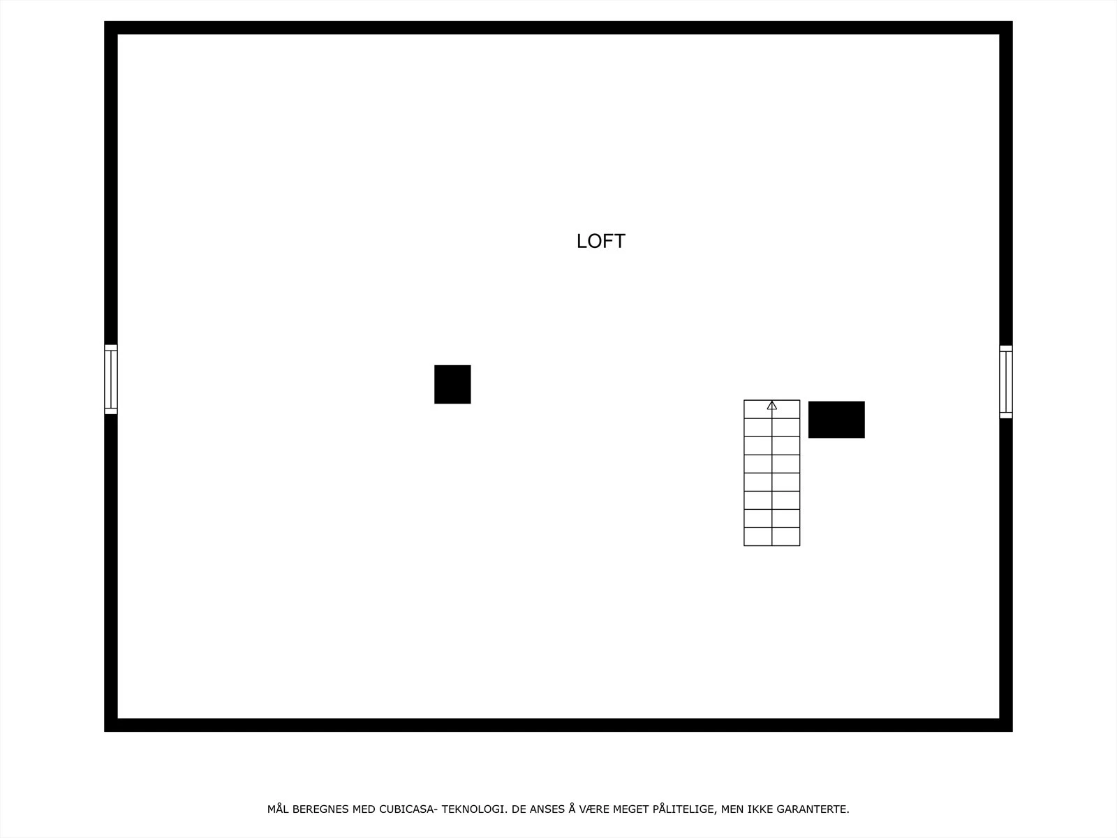 Loft (30 kvm.): Uinnredet loftsrom.