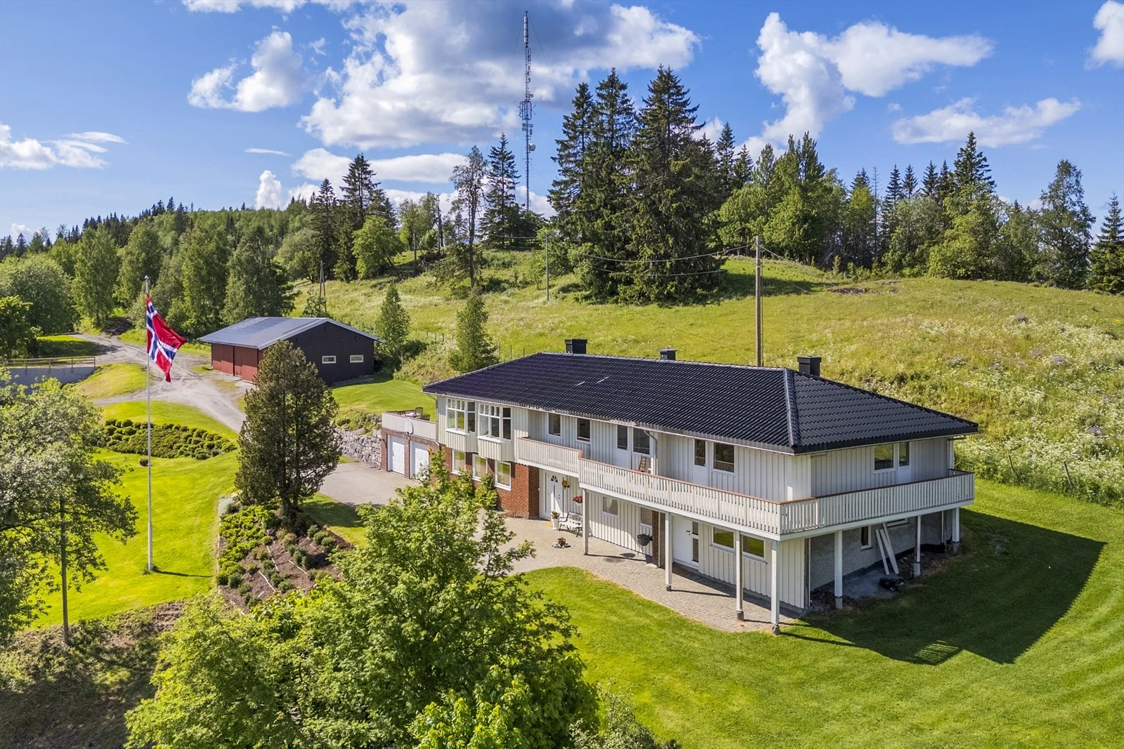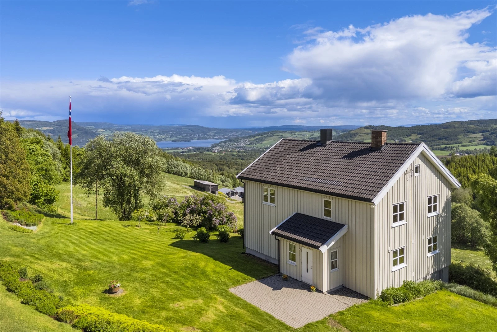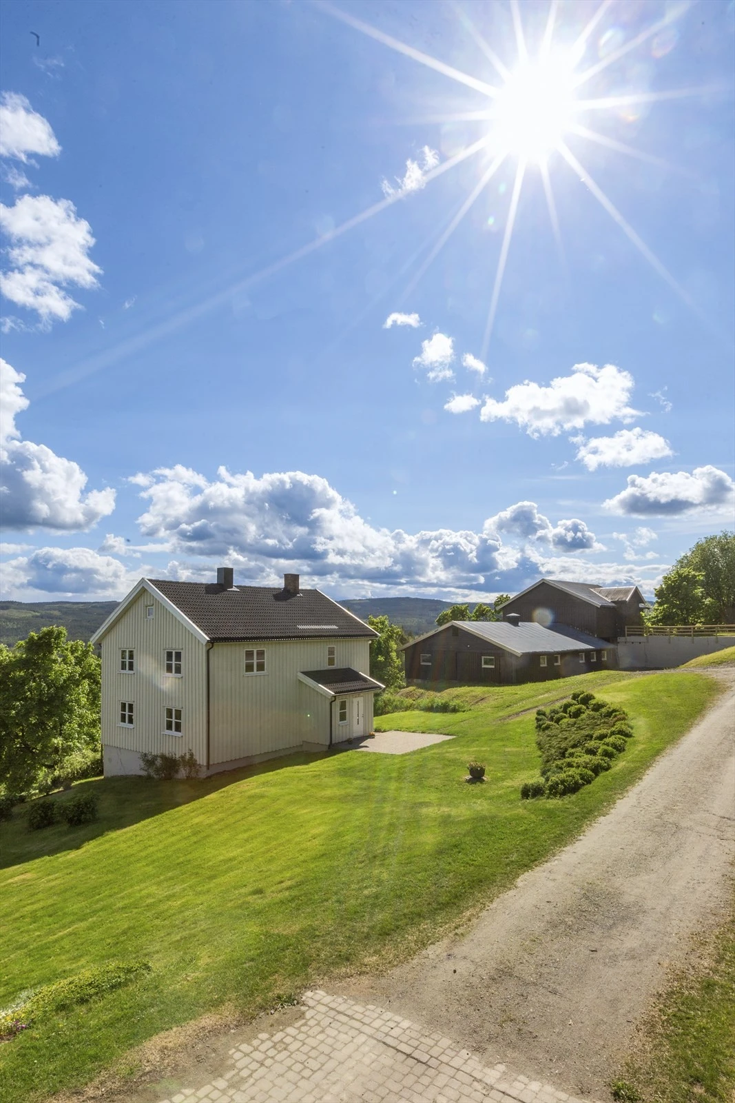 Gårdens våningshus er langstrakt og innholdsrikt. Boligen er godt vedlikeholdt utvendig som innvendig. Hovedbygningen er over 2 plan og ble oppført midt på 70 tallet. Boligen ble senere påbygd på begynnelsen av 80 tallet. Boligen har to separate innganger i underetasjen. Trimrommet i underetasjen har innlagt både varmt- og kald vann, samt avløp. Det betyr at det er lett å anlegge en hybelleilighet i denne delen av underetasjen. Huset inneholder bl.a. 6 soverom og 3 bad. I fra stuen, kjøkkenet og tre soverom har du en fantastisk utsikt. Stue med peis som gir god plass til å huse hele familien til middag og andre sosiale tilstelninger. Herfra kan du gå rett ut til den store herlige terrassen. Her kan du bare nyte stillheten og naturen som omkranser eiendommen.