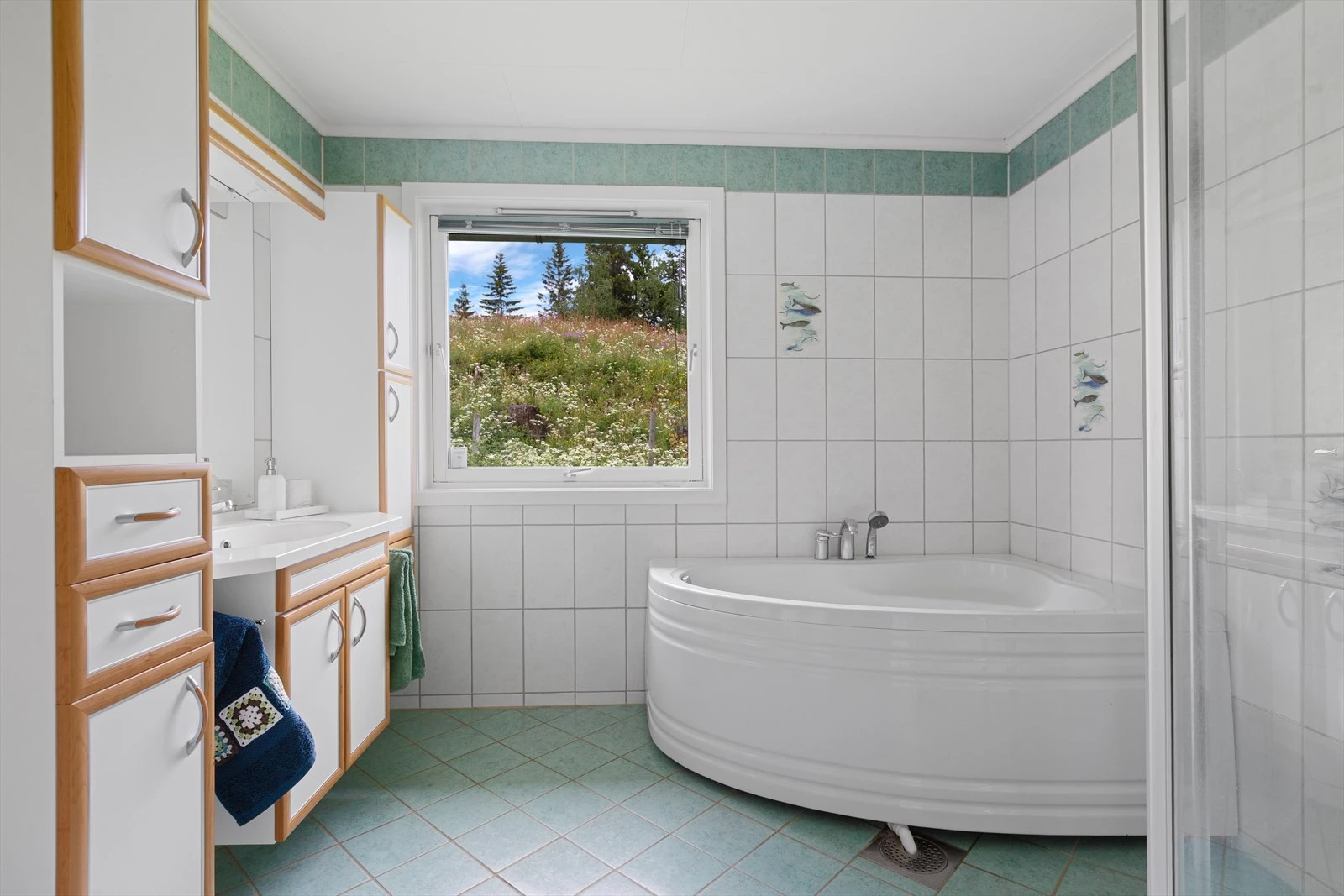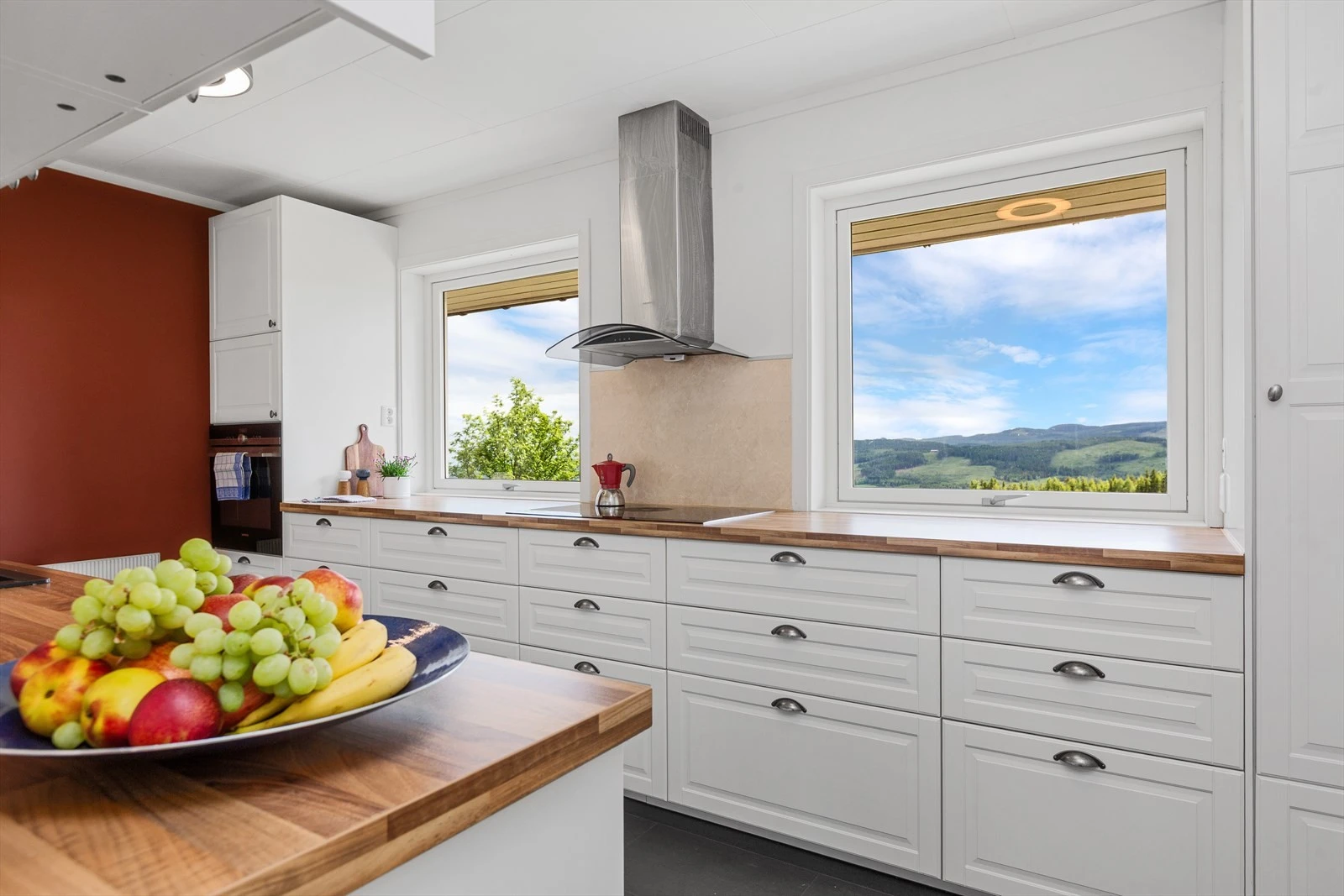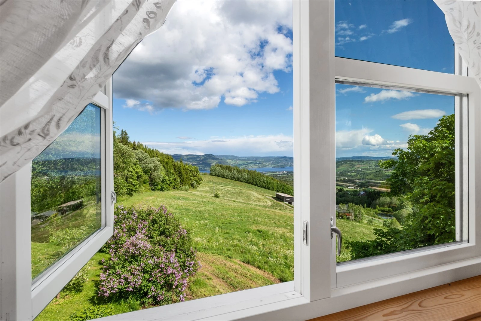 Ytterdør i treverk med 2-lags energiglass. Heve/skyvedør i treverk med 2-lags energiglass. Balkongdører i treverk med 2-lags energiglass. Leddet garasjeport med elektrisk åpner.