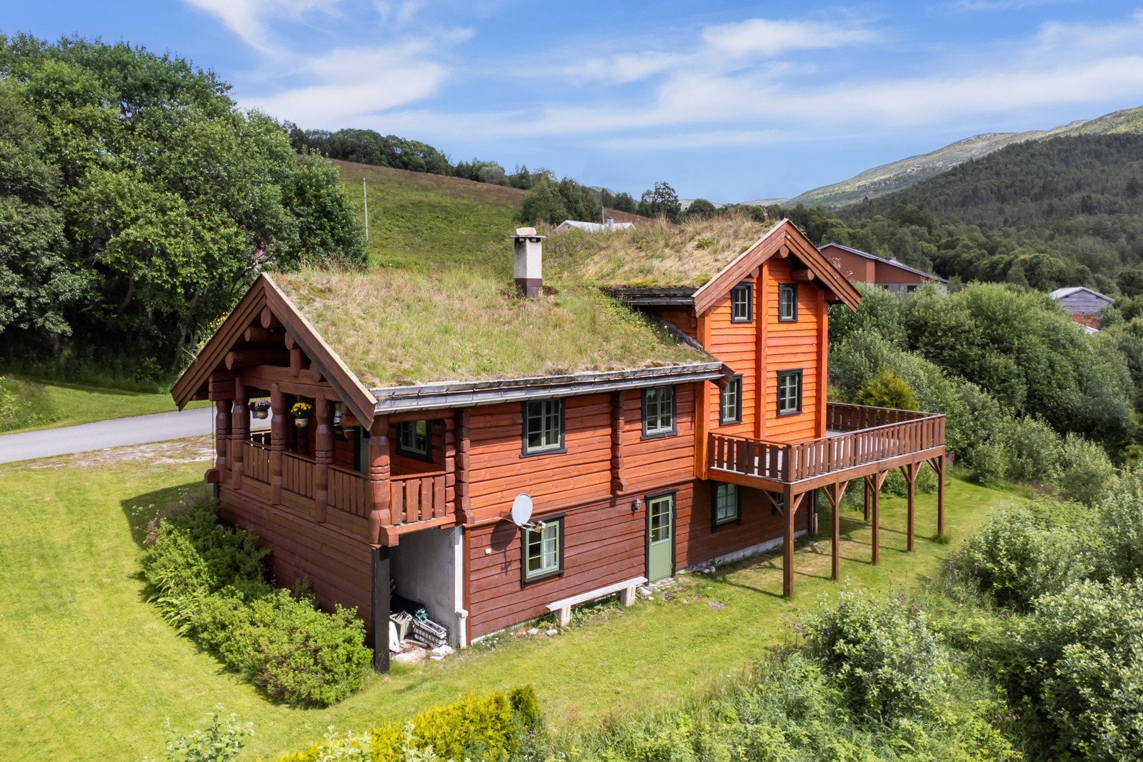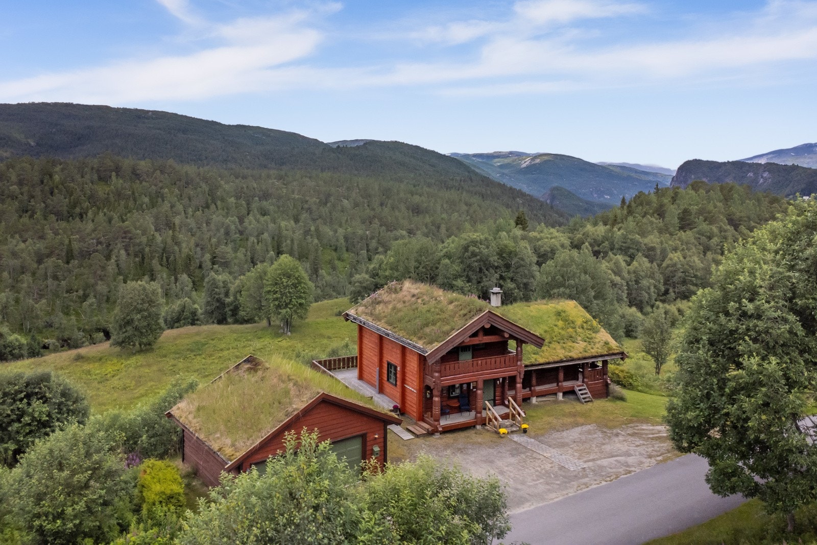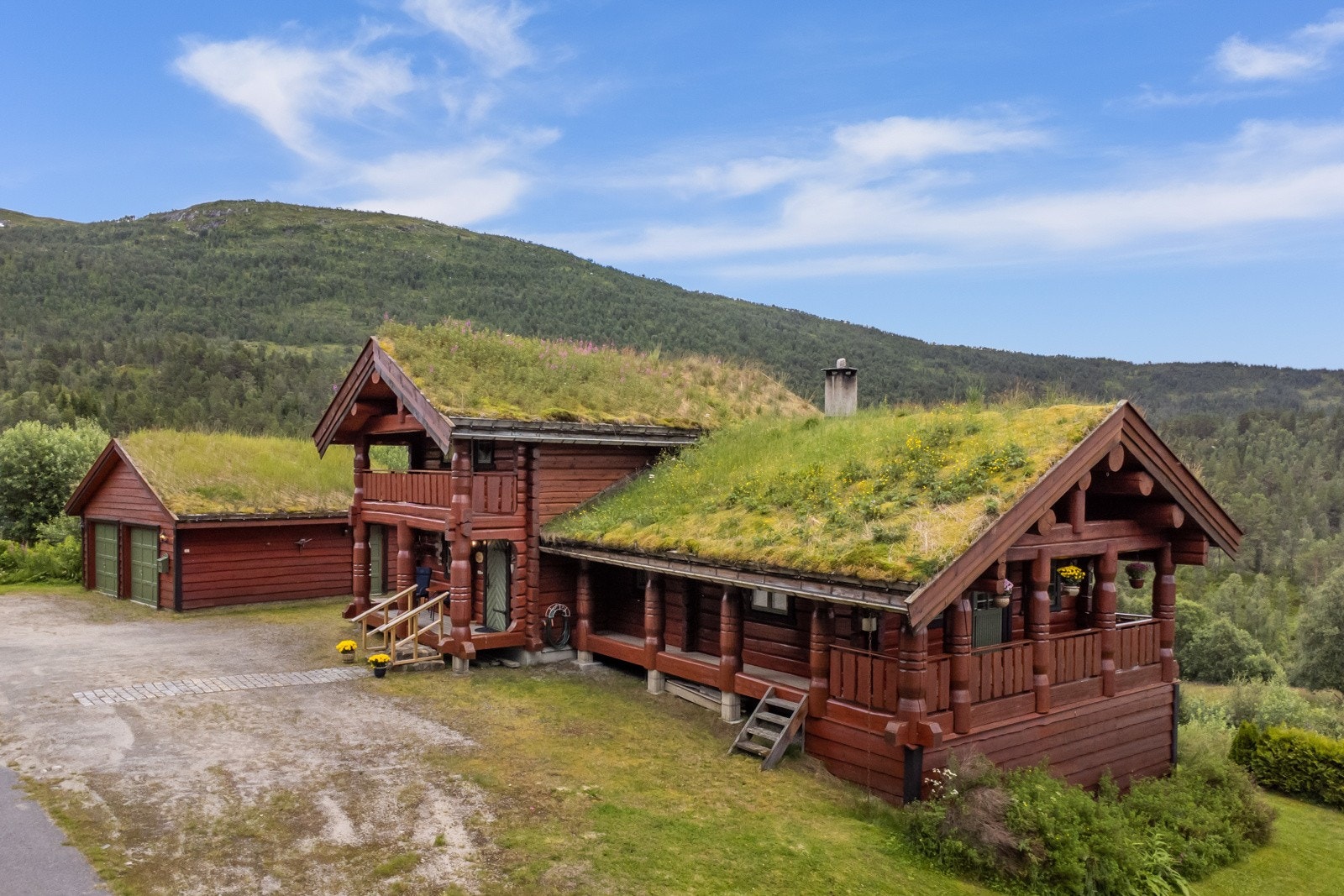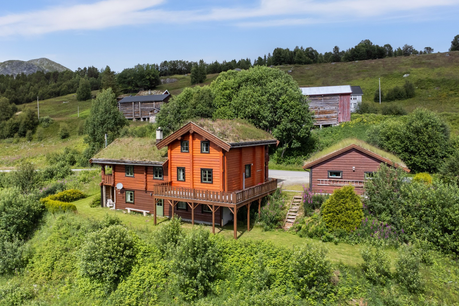 Hovedbygningen ble oppført i 2003 med en god størrelse på 194 kvm P-rom i tre etasjer. Den kraftige laftekonstruksjonen passer arkitektonisk godt i landskapet, og gir bygningen et solid preg. Bygningens hovedetasje består av store oppholdsrom i form av en storstue, spisestue og kjøkken. Kjøkkenet er bygget i en åpen nisje med tilhørende spisestue, og gjennom kjøkkenvinduet sydvendt utsyn til flott fjell- og kulturlandskap. En sentralt plassert vedovn skaper et naturlig skille mellom kjøkkenavdeling og storstuen. Storstuen har lysinnslipp fra syd, vest og øst med utgang til vestvendt veranda og svalgang. Disse oppholdsrommene har en samlet god romløsning, og en flott atmosfære med den åpne himlingen, takåsene og det kraftige laftetømmeret.