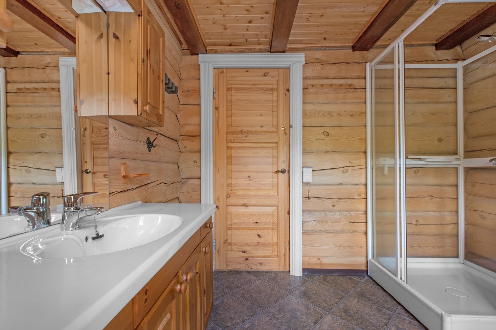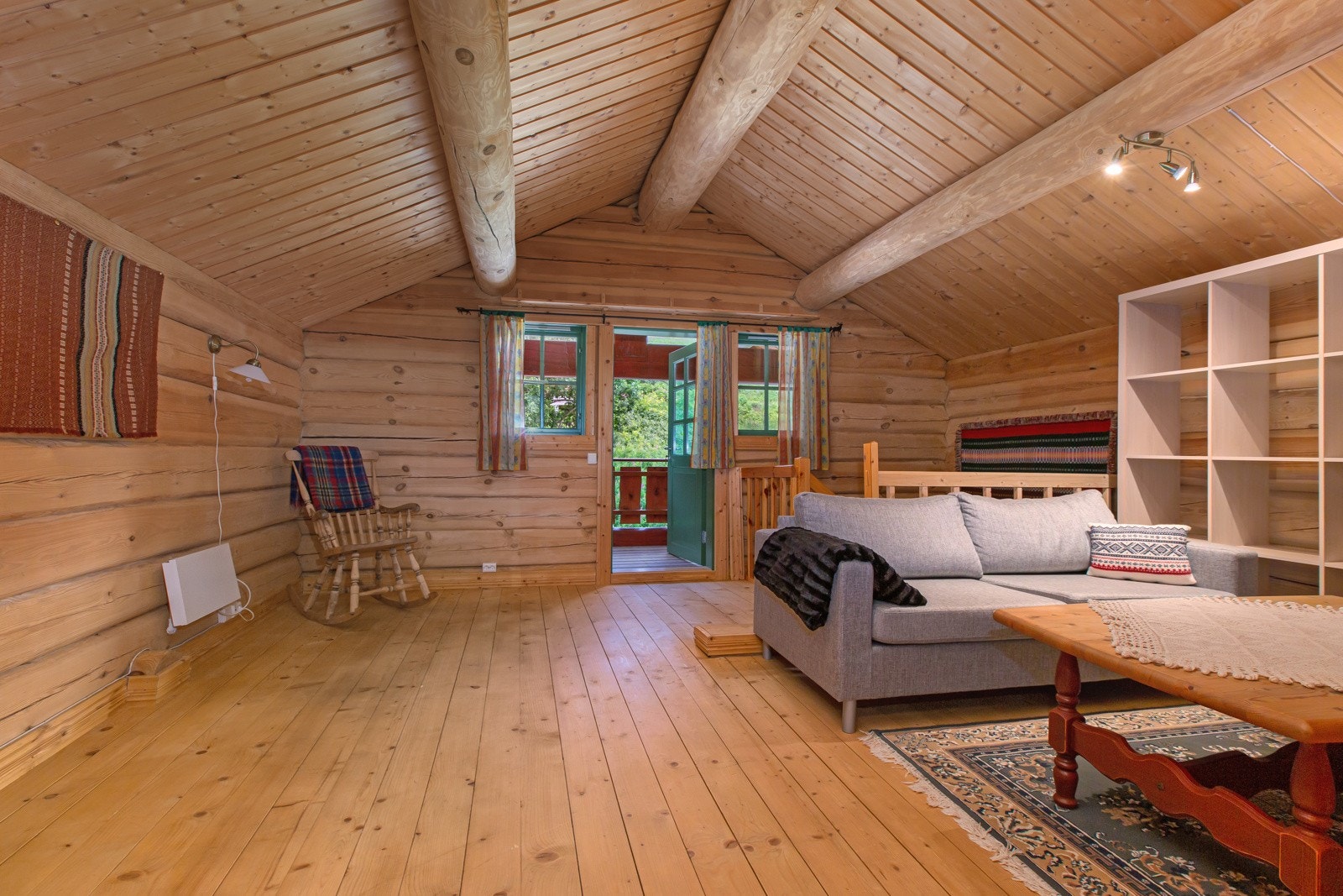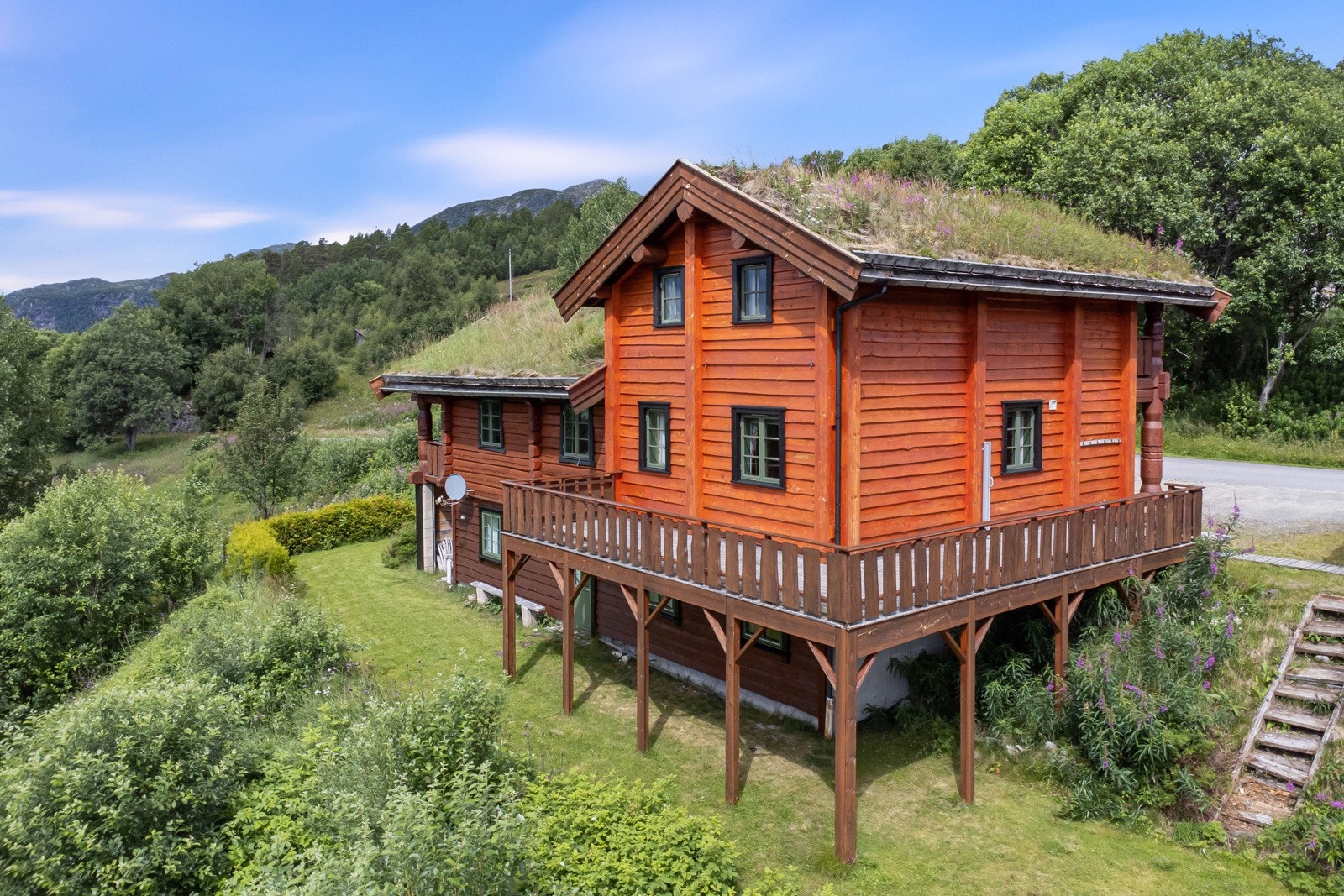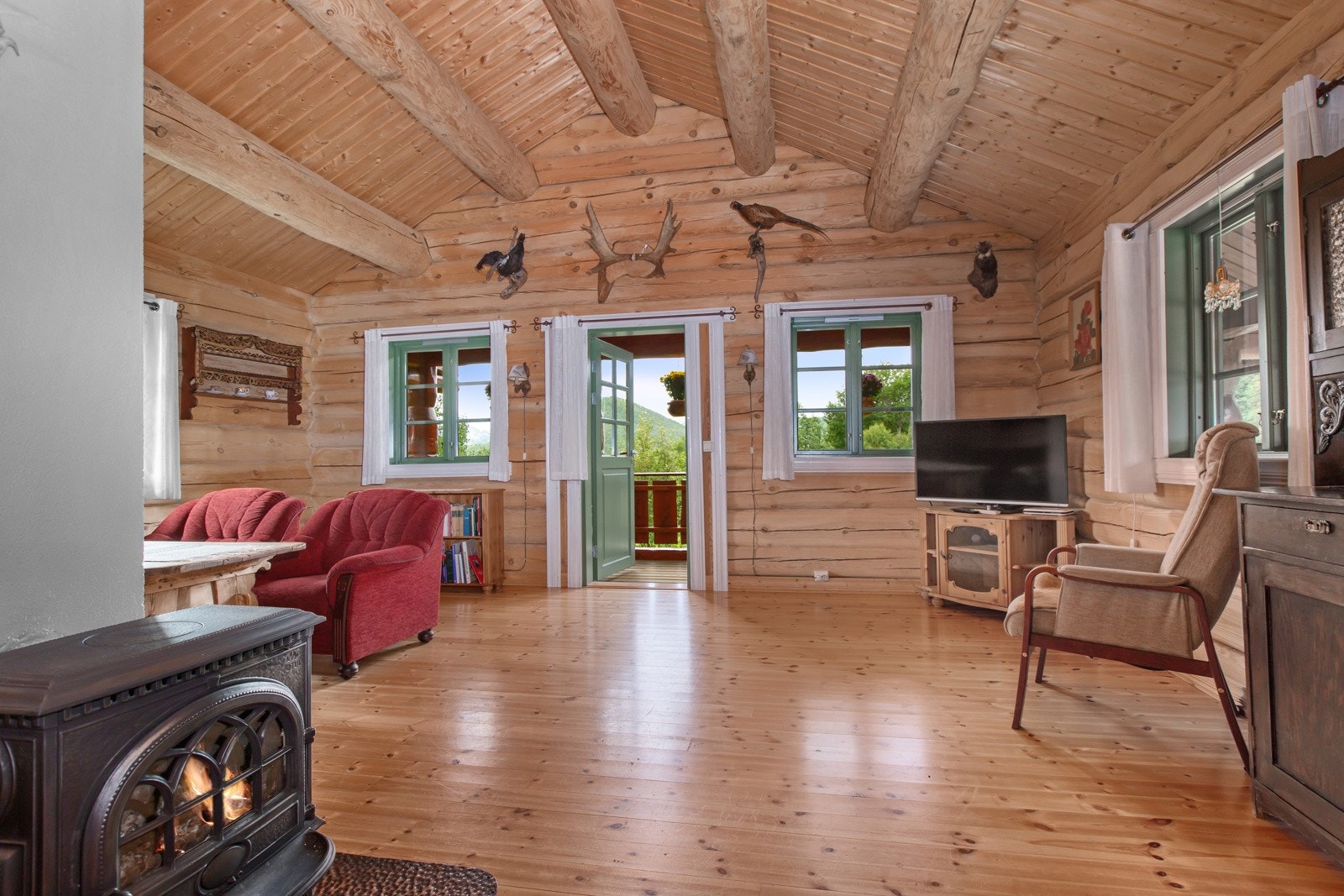 Hovedbygningen ble oppført i 2003 med en god størrelse på 194 kvm P-rom i tre etasjer. Den kraftige laftekonstruksjonen passer arkitektonisk godt i landskapet, og gir bygningen et solid preg. Bygningens hovedetasje består av store oppholdsrom i form av en storstue, spisestue og kjøkken. Kjøkkenet er bygget i en åpen nisje med tilhørende spisestue, og gjennom kjøkkenvinduet sydvendt utsyn til flott fjell- og kulturlandskap. En sentralt plassert vedovn skaper et naturlig skille mellom kjøkkenavdeling og storstuen. Storstuen har lysinnslipp fra syd, vest og øst med utgang til vestvendt veranda og svalgang. Disse oppholdsrommene har en samlet god romløsning, og en flott atmosfære med den åpne himlingen, takåsene og det kraftige laftetømmeret.