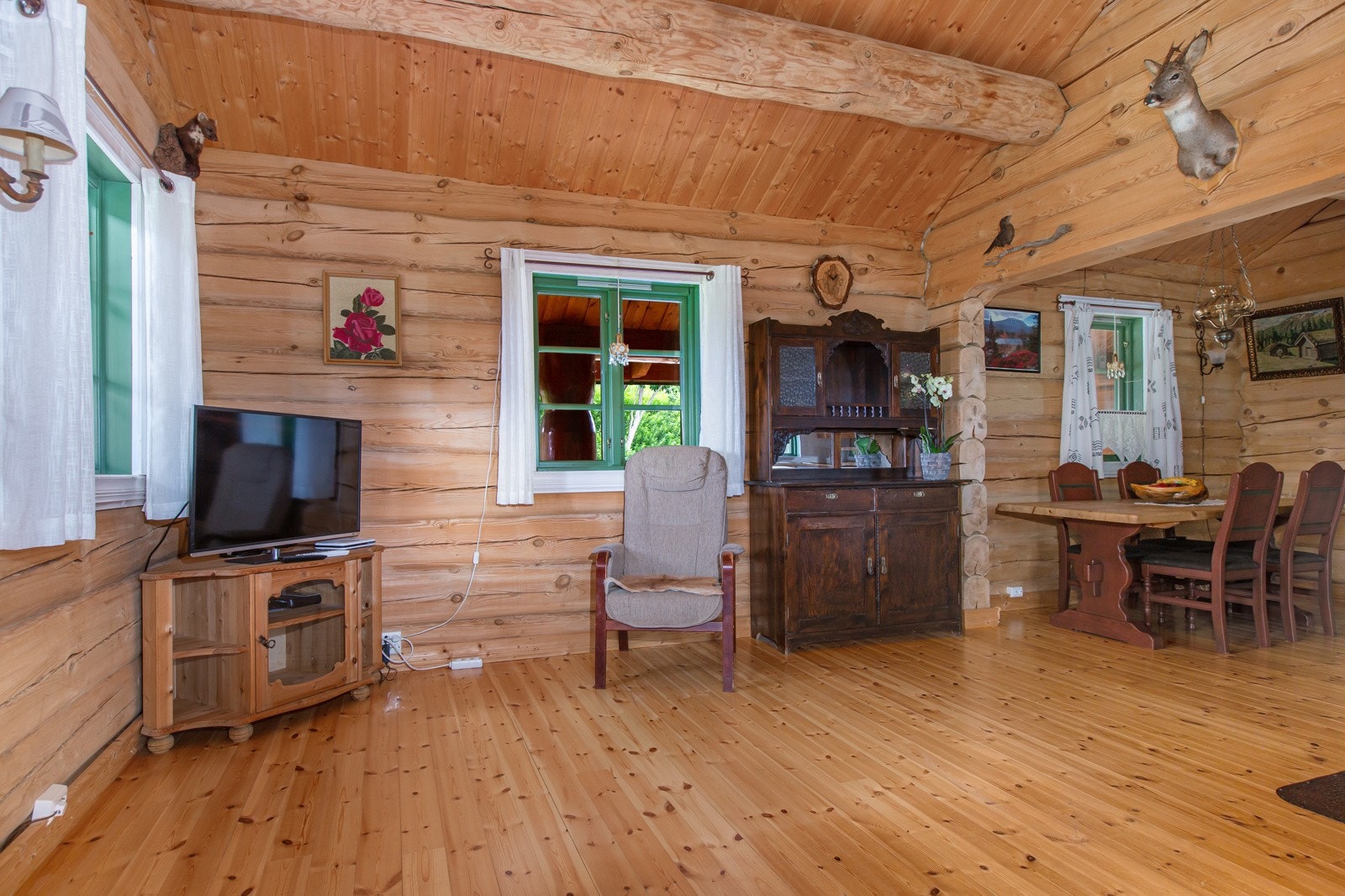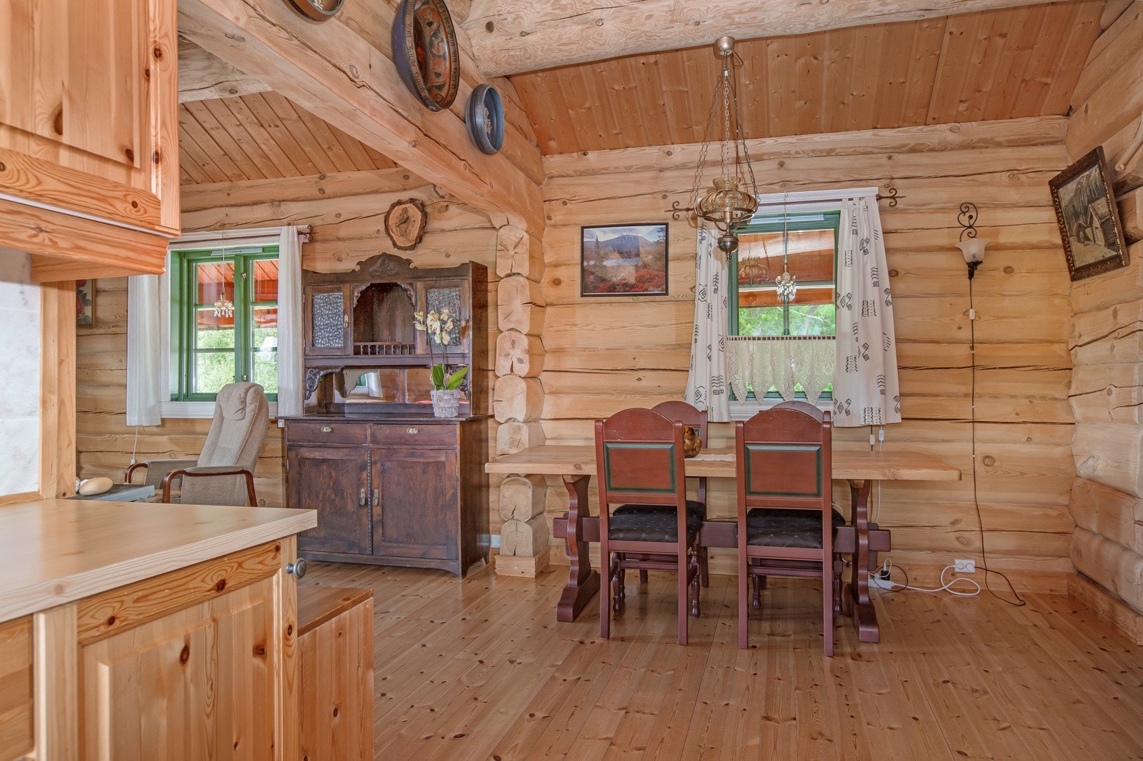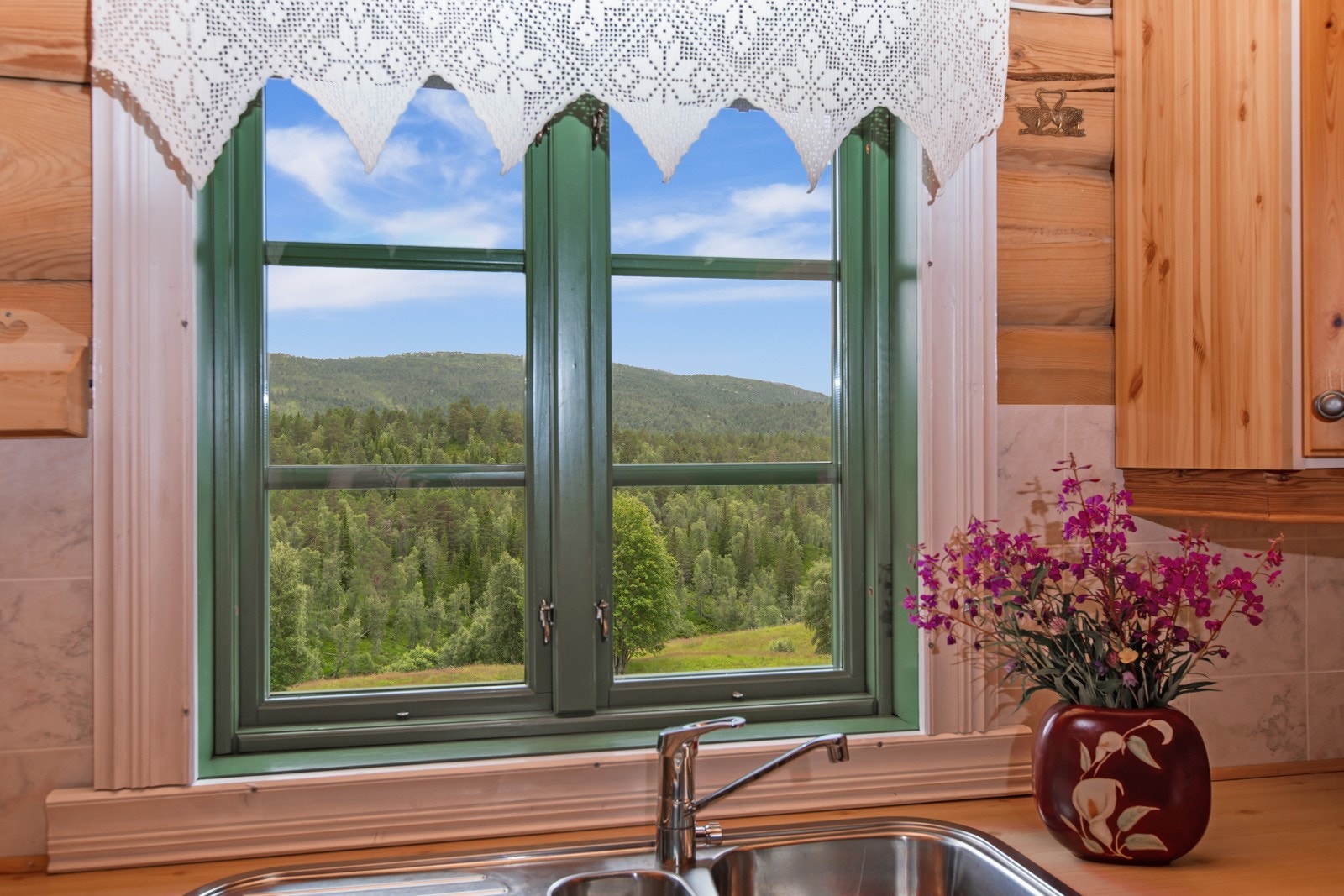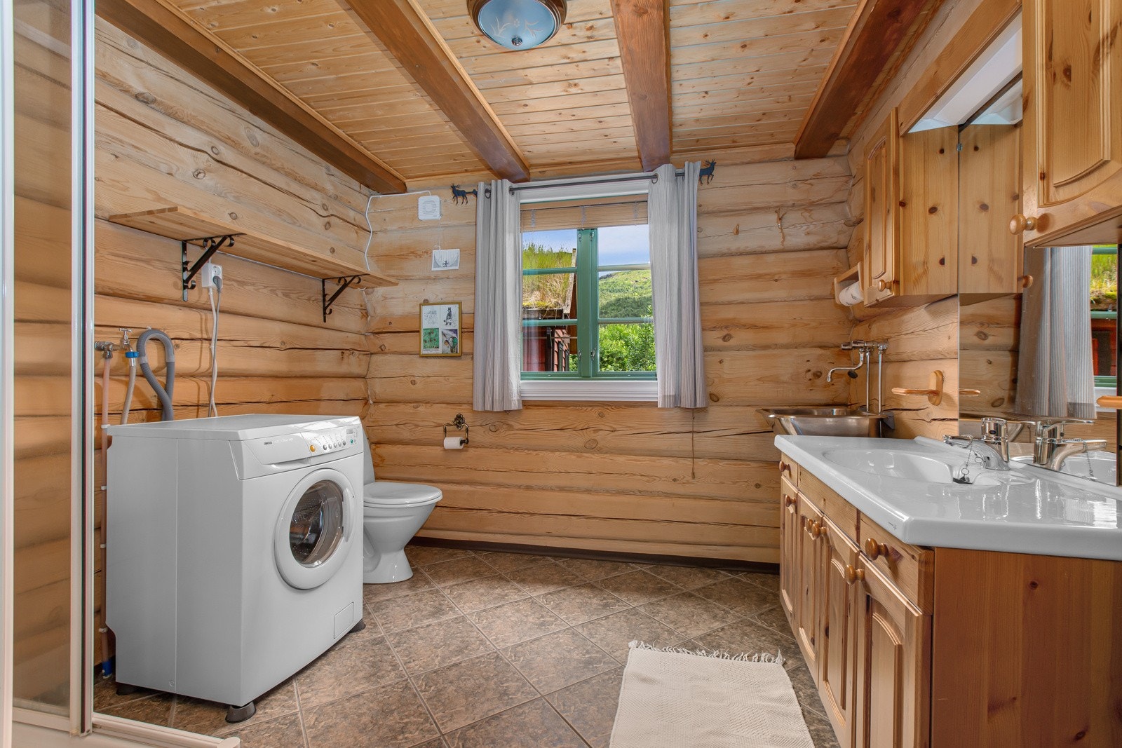 Hovedbygningen ble oppført i 2003 med en god størrelse på 194 kvm P-rom i tre etasjer. Den kraftige laftekonstruksjonen passer arkitektonisk godt i landskapet, og gir bygningen et solid preg. Bygningens hovedetasje består av store oppholdsrom i form av en storstue, spisestue og kjøkken. Kjøkkenet er bygget i en åpen nisje med tilhørende spisestue, og gjennom kjøkkenvinduet sydvendt utsyn til flott fjell- og kulturlandskap. En sentralt plassert vedovn skaper et naturlig skille mellom kjøkkenavdeling og storstuen. Storstuen har lysinnslipp fra syd, vest og øst med utgang til vestvendt veranda og svalgang. Disse oppholdsrommene har en samlet god romløsning, og en flott atmosfære med den åpne himlingen, takåsene og det kraftige laftetømmeret.