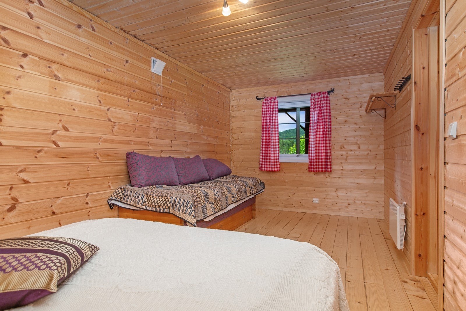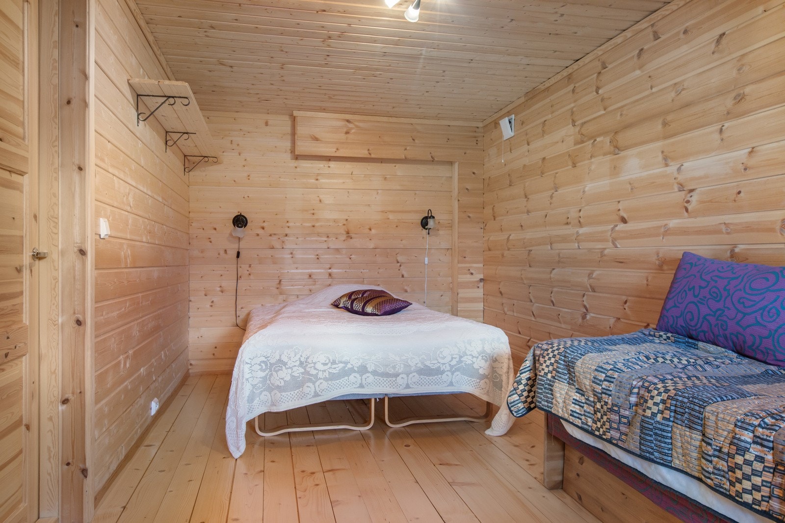 Bygningen er oppført på enkle punktfundamenter, etasjeskiller i tre. Hovedkonstruksjon oppført i bindingsverk, utvendig kledd med trepanel. Tak oppført som saltak av plassbygde sperrer, pålagt undertak og pappshingel som taktekke. Fabrikkframstilt dør, fabrikkframstilte vinduer. Innvendig furugulv, vegger og himling med trepanel. Montert enkel kjøkkeninnredning. Pipe med tilknyttet vedovn.