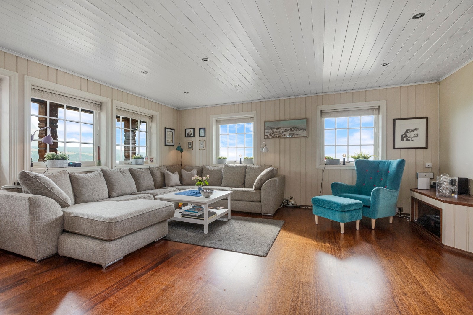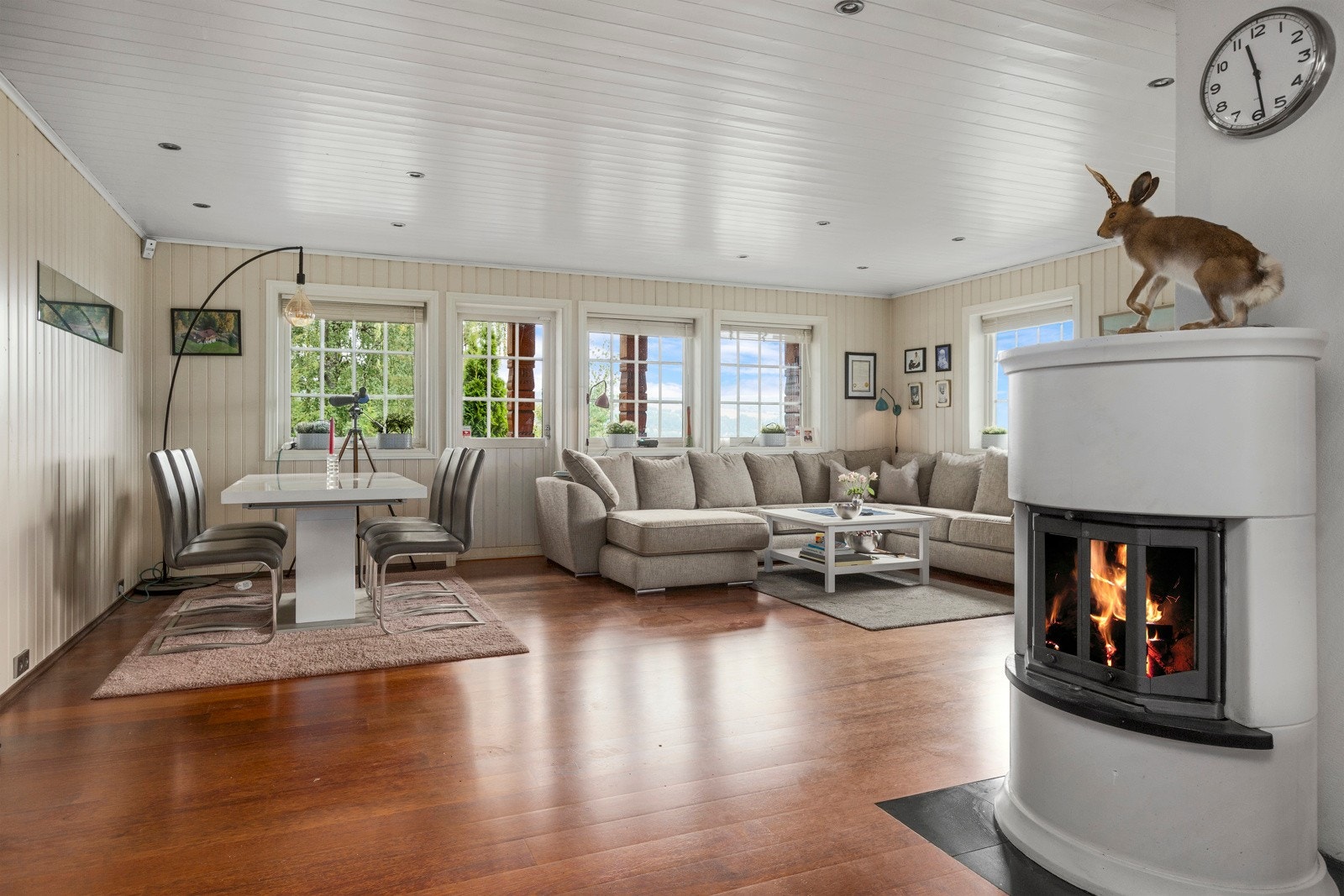 Bygningen har malte trevinduer med 2-lags fra byggeår