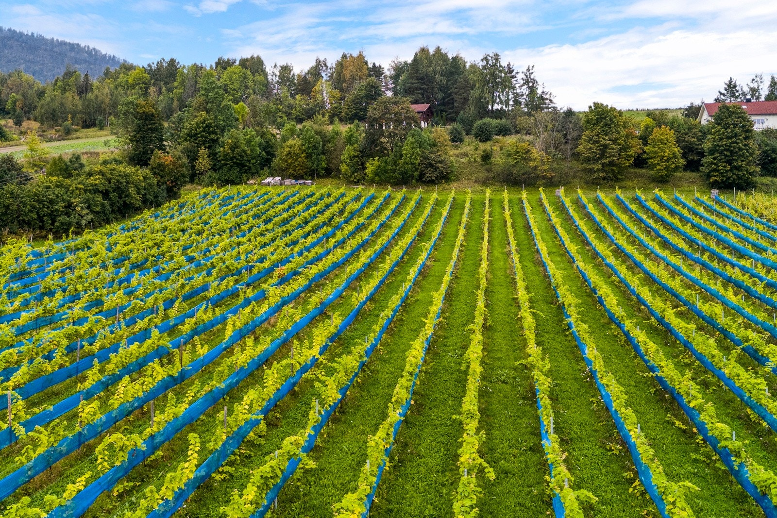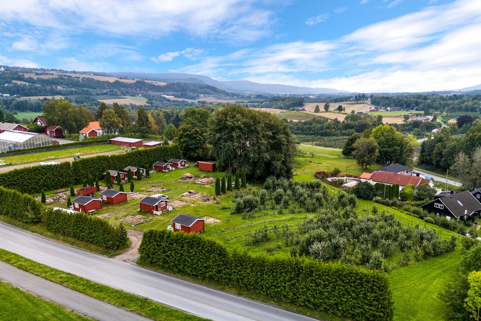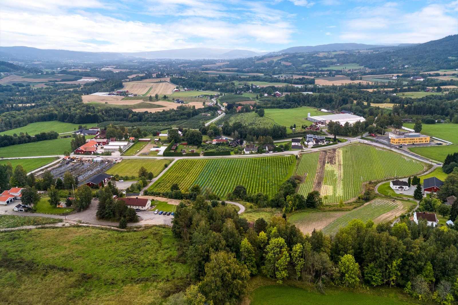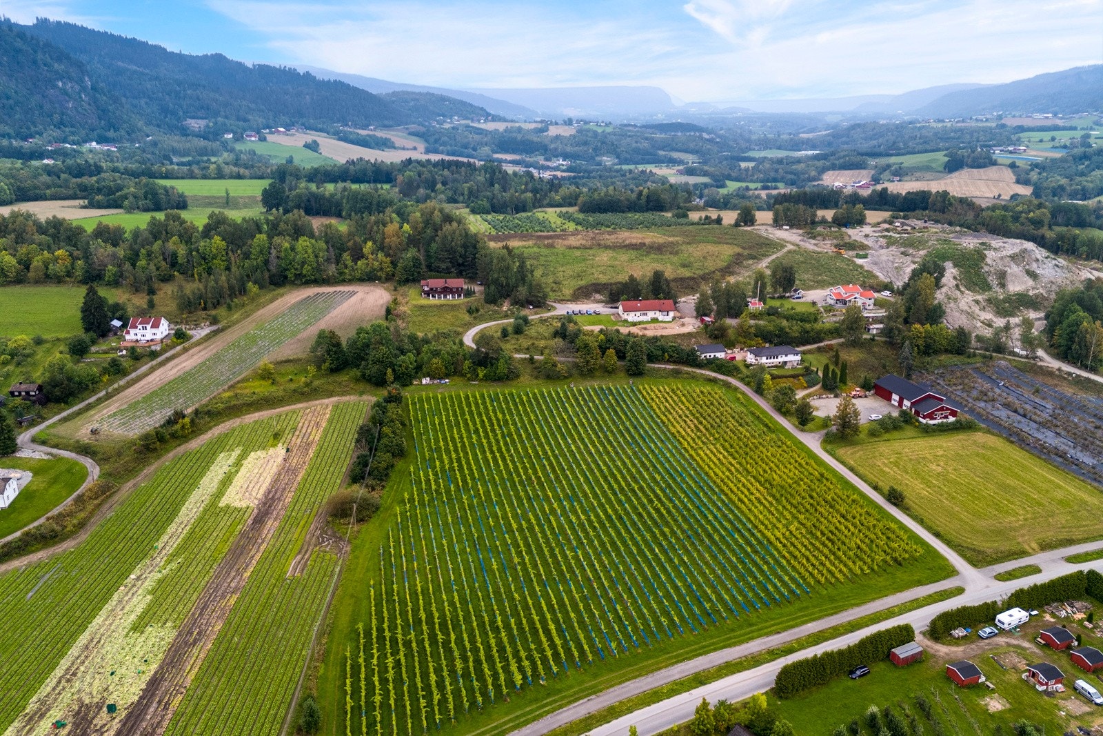 » Jord: 67 mål fulldyrket areal, fordelt på syd- og nordsiden av moreneryggen. På sørsiden dyrkes druer og epler, mens nordsiden er viet til epledyrking. Ytterligere 30 mål vil bli dyrkbart når et massedeponi er ferdig planert, noe som gir gode fremtidige produksjonsmuligheter. Jorda har vært bortleid i mange år, men leiekontrakten opphører i mai 2025. Dette gir ny eier muligheten til å velge om leieforholdet skal videreføres, eller om man ønsker å drive eiendommen selv.
