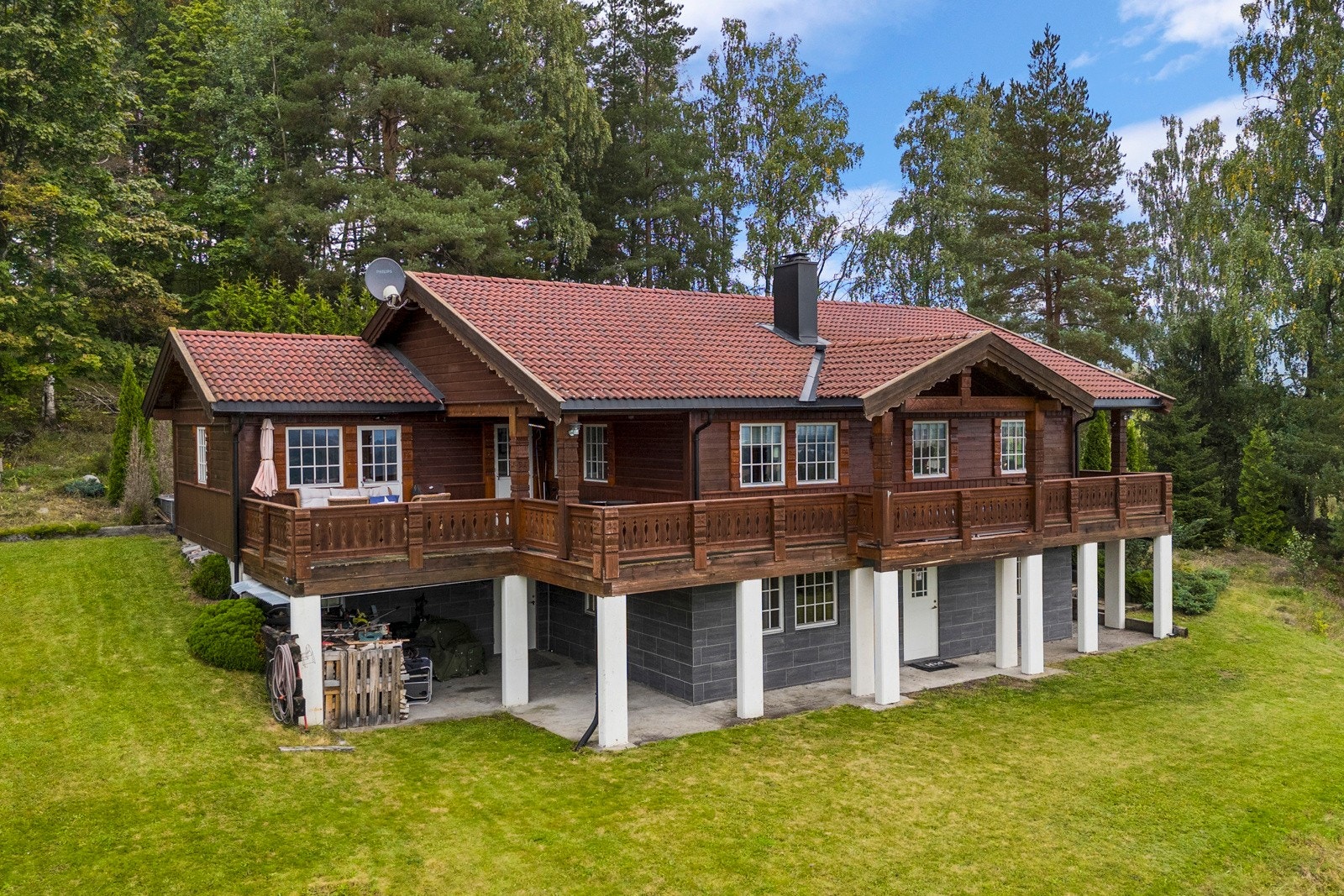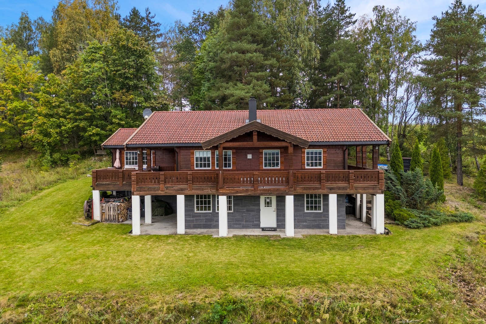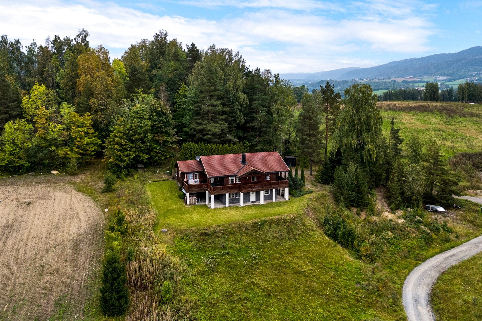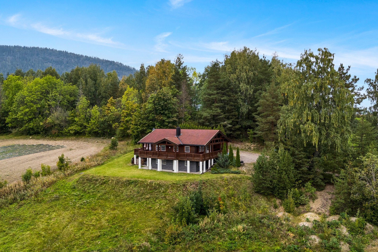 En høytliggende landbrukseiendom med fantastisk beliggenhet øverst på Eggemorena i Lier.