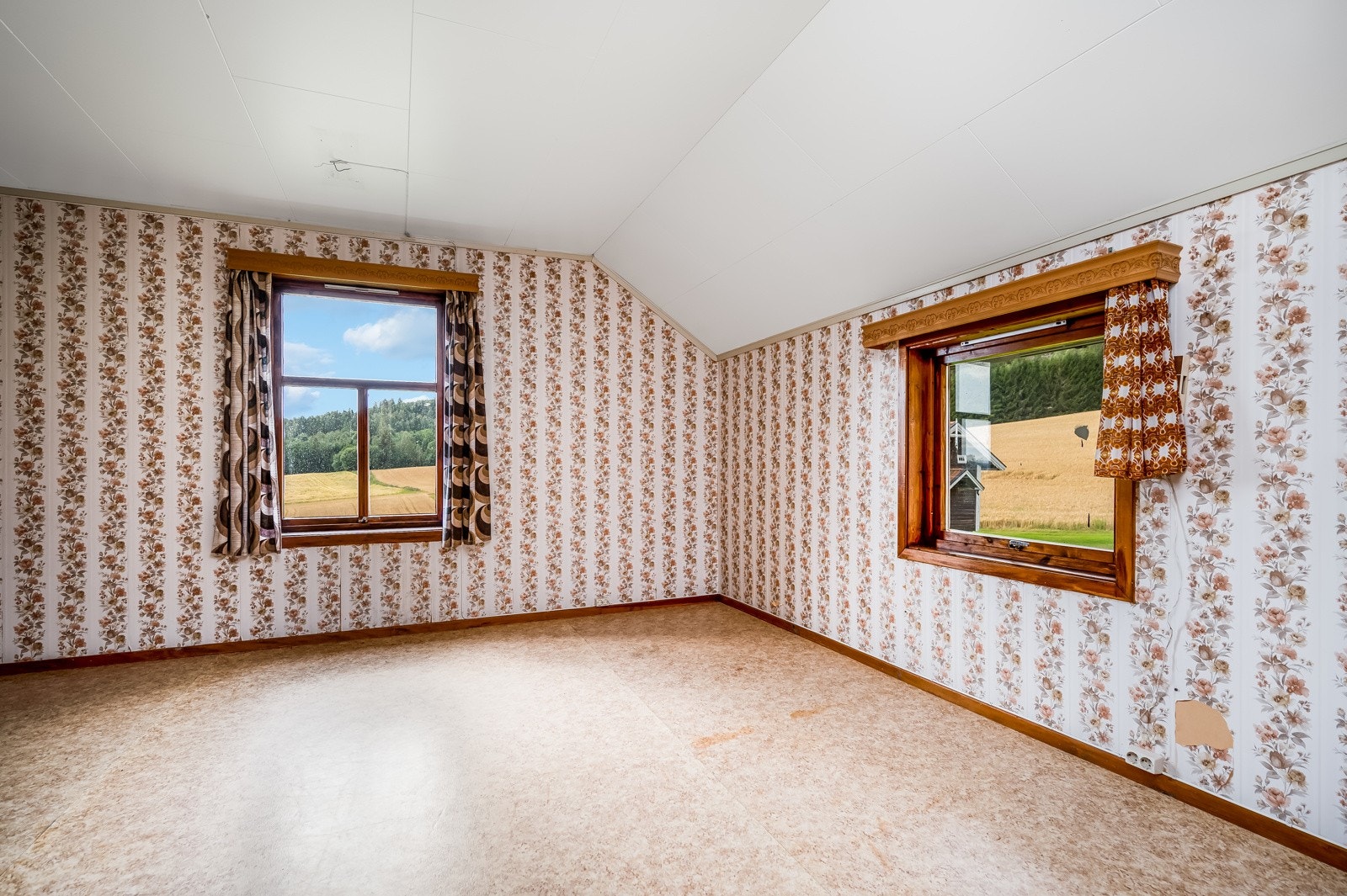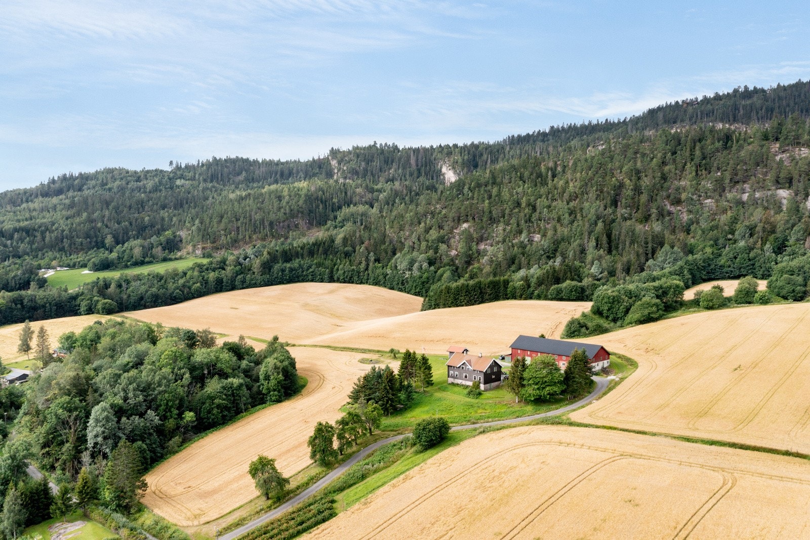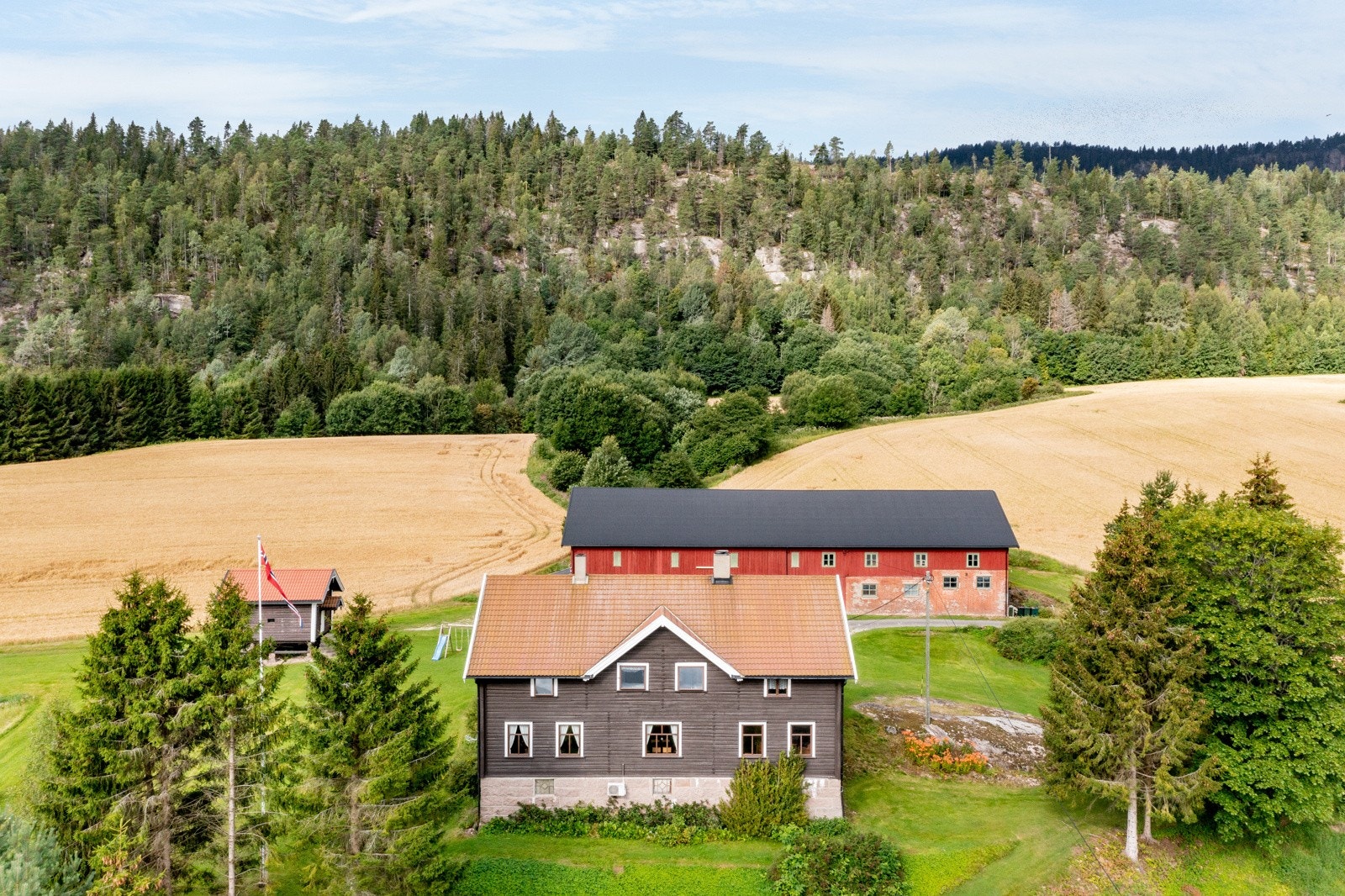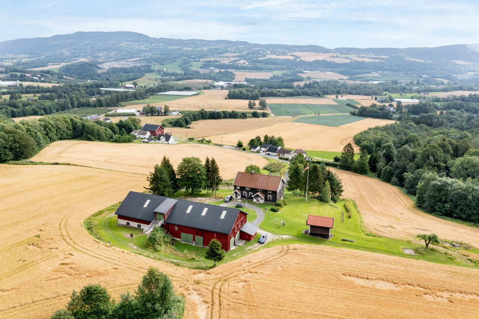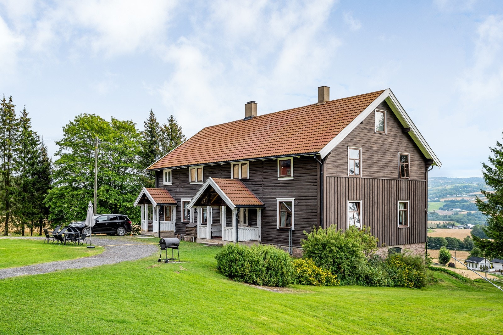 eiendommen er det flott og vidstrakt utsikt ut over de omkringliggende områdene. Gården har et romslig
