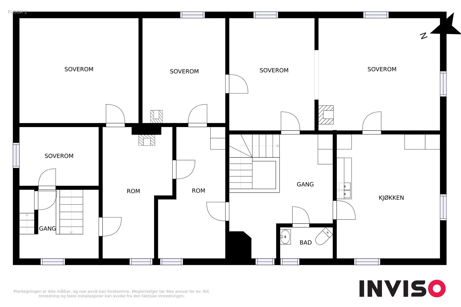 Trappegang - 5 store soverom - trappegang med nedgang til hovedinngangen - wc - stort kjøkken (vann