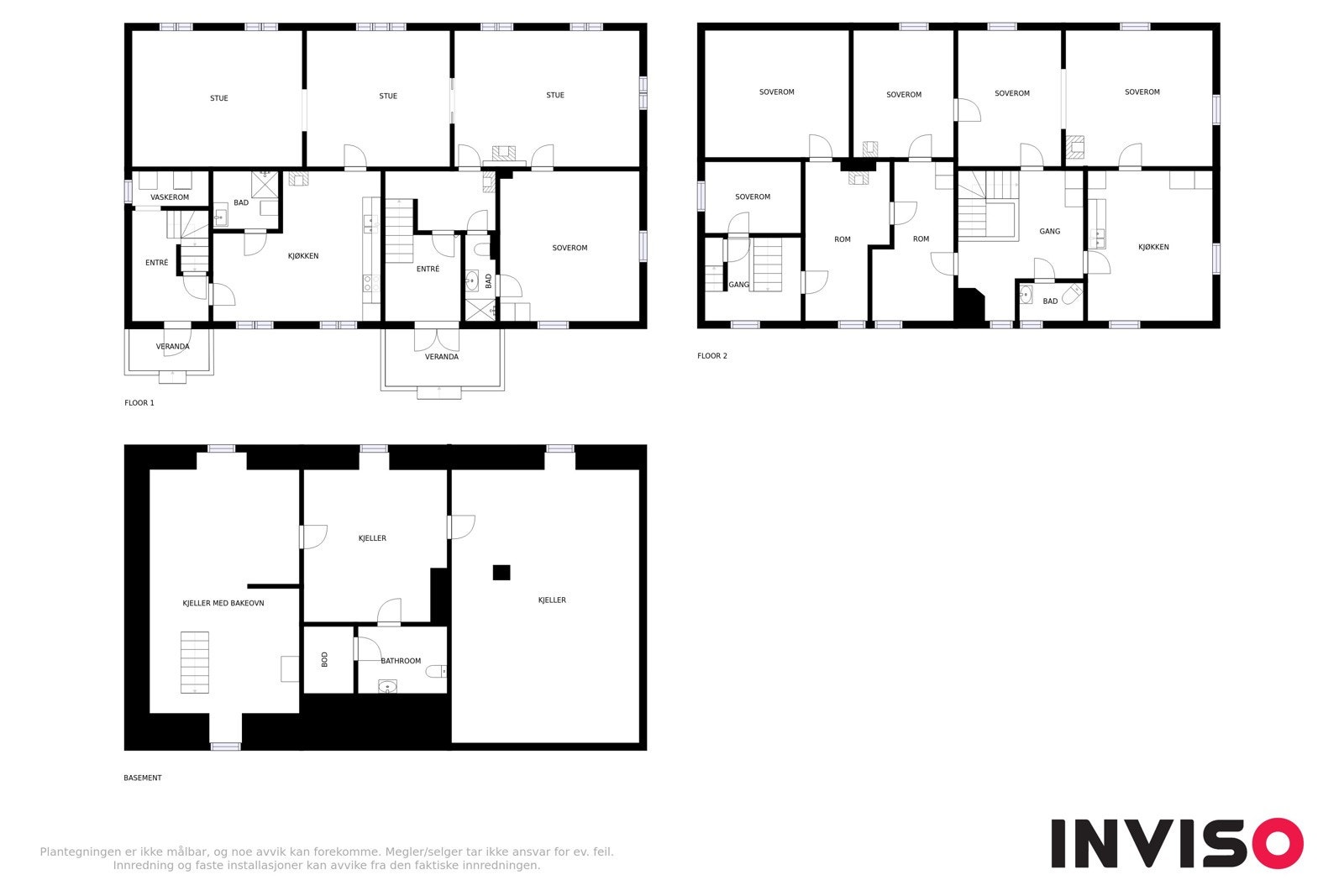 med full kjeller med god takhøyde og god lagringsplass, to fulle etasjer med takhøyde opp til 2,8 meter