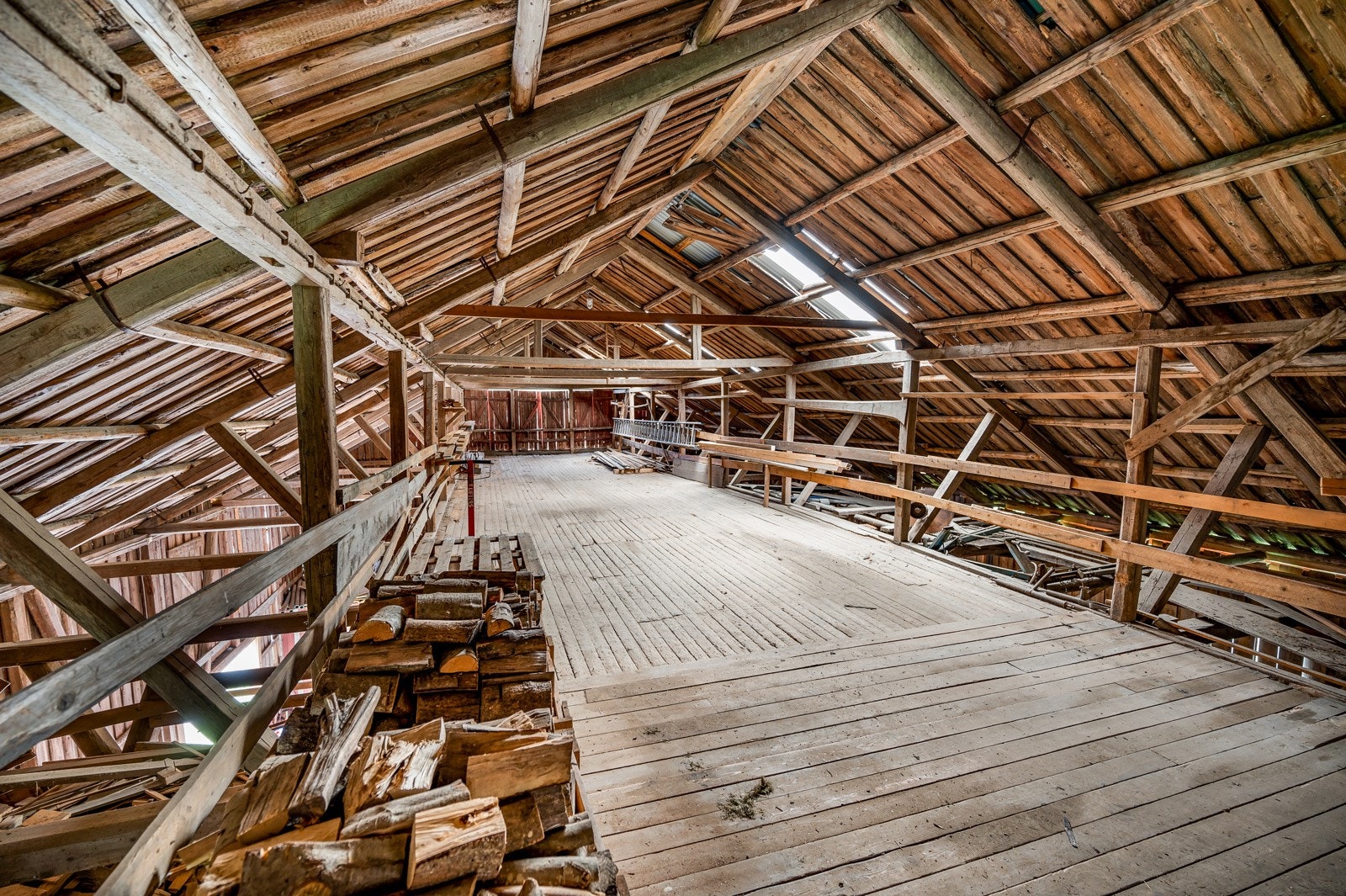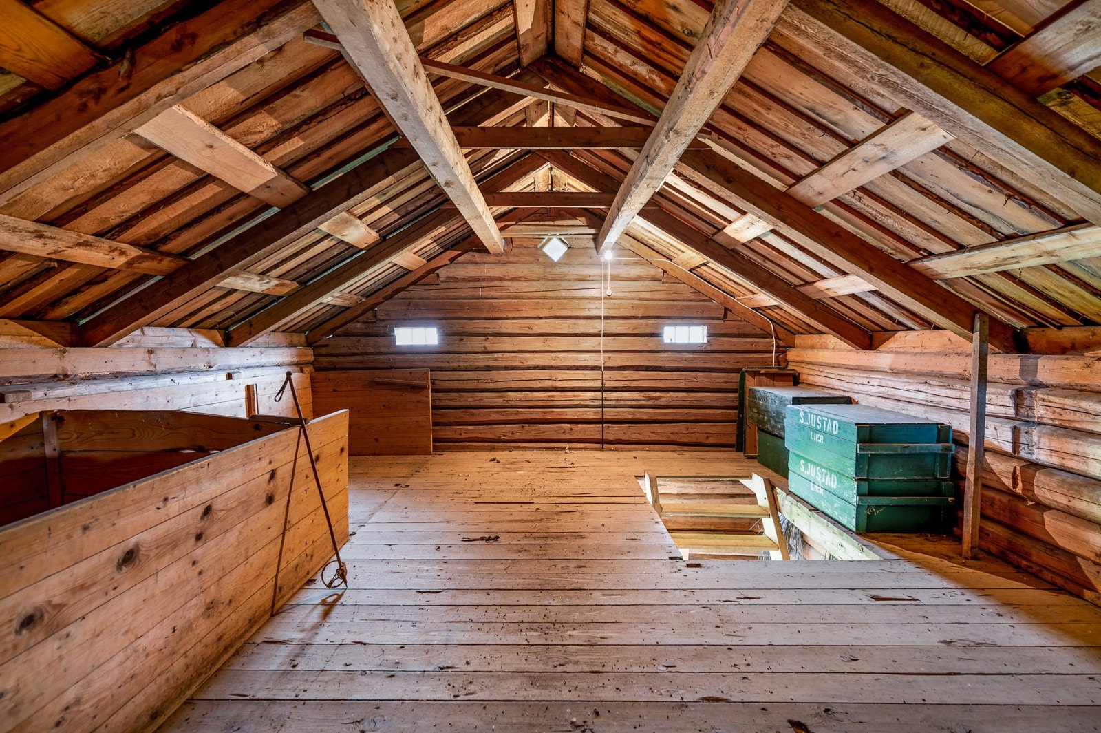 Inneholdende 3 store lagringsrom. God takhøyde (2,3-2,4 meter).