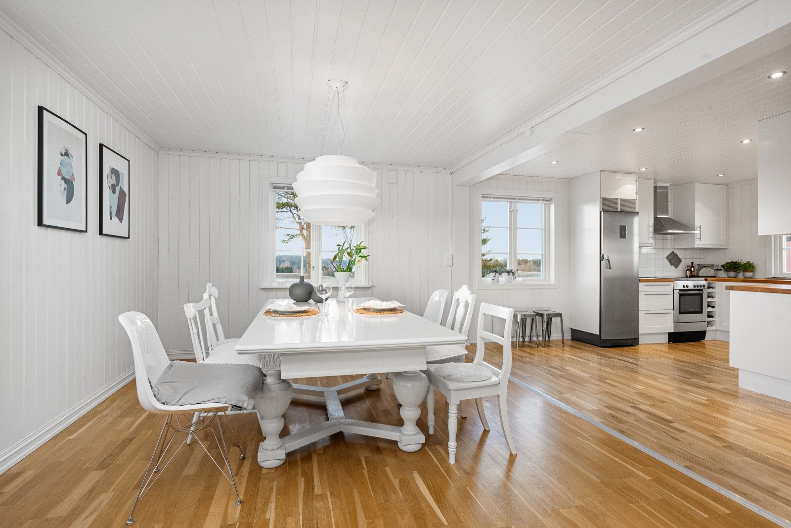 1. etasje primærrom: Entré med trapp til 2. etasje, separat wc, dagligstue, spisestue og kjøkken.