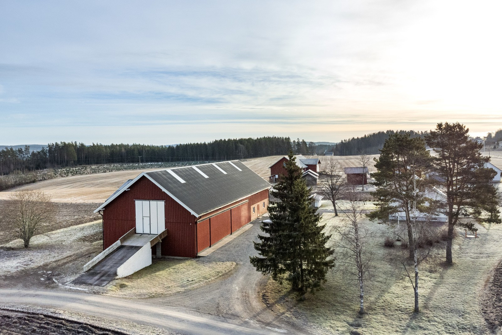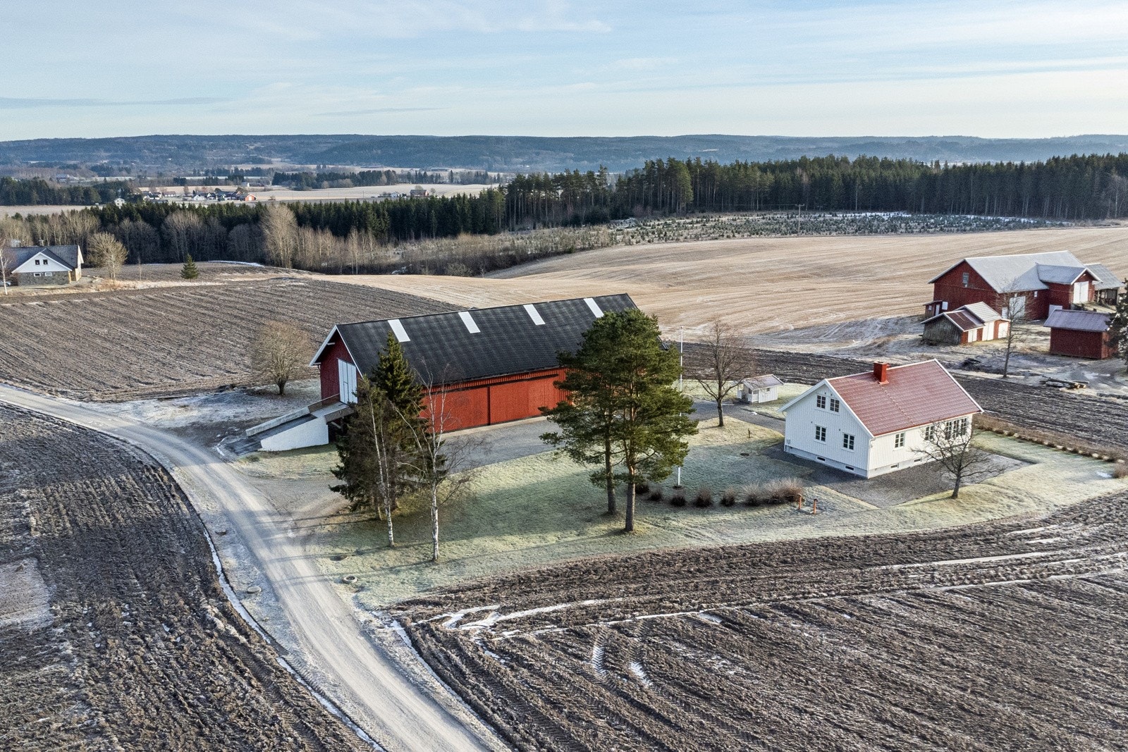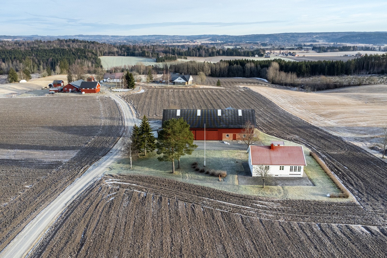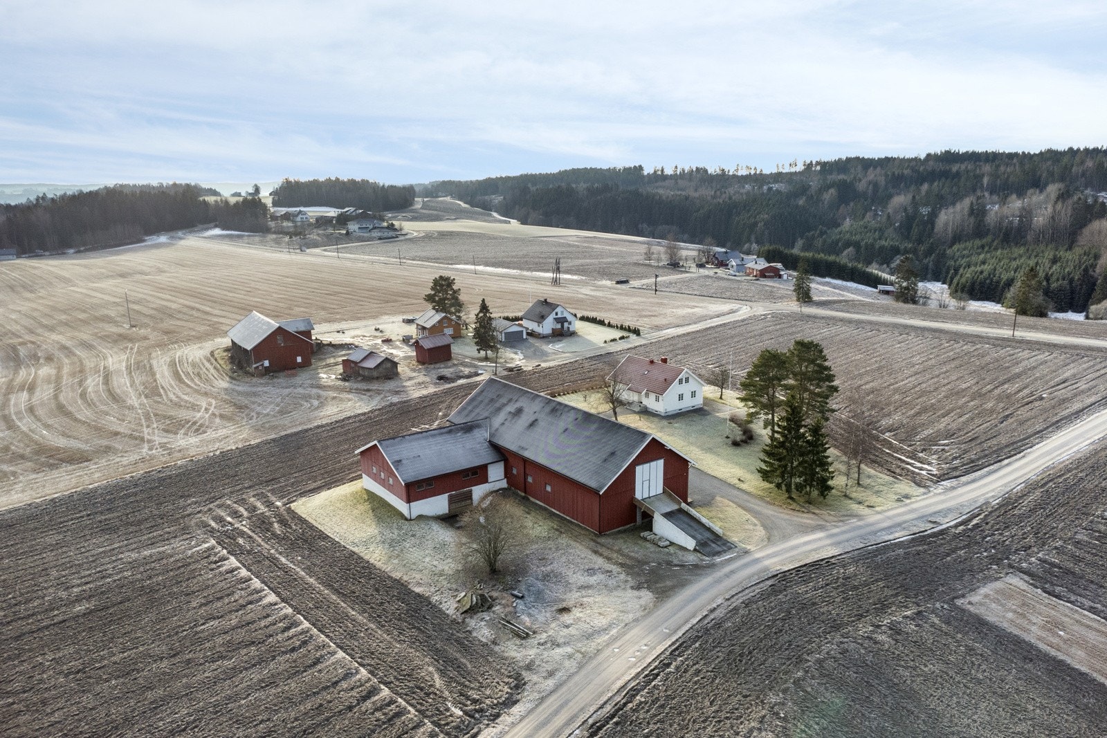 Tunet på Finsrud fremstår som svært ryddig og ligger åpent i landskapet. Man har god riggplass til maskiner og utstyr samtidig som boligtunet ligger mer beskyttet til. Gårdsveien g\år på siden av tunet og har ingen gjennomkjøring.