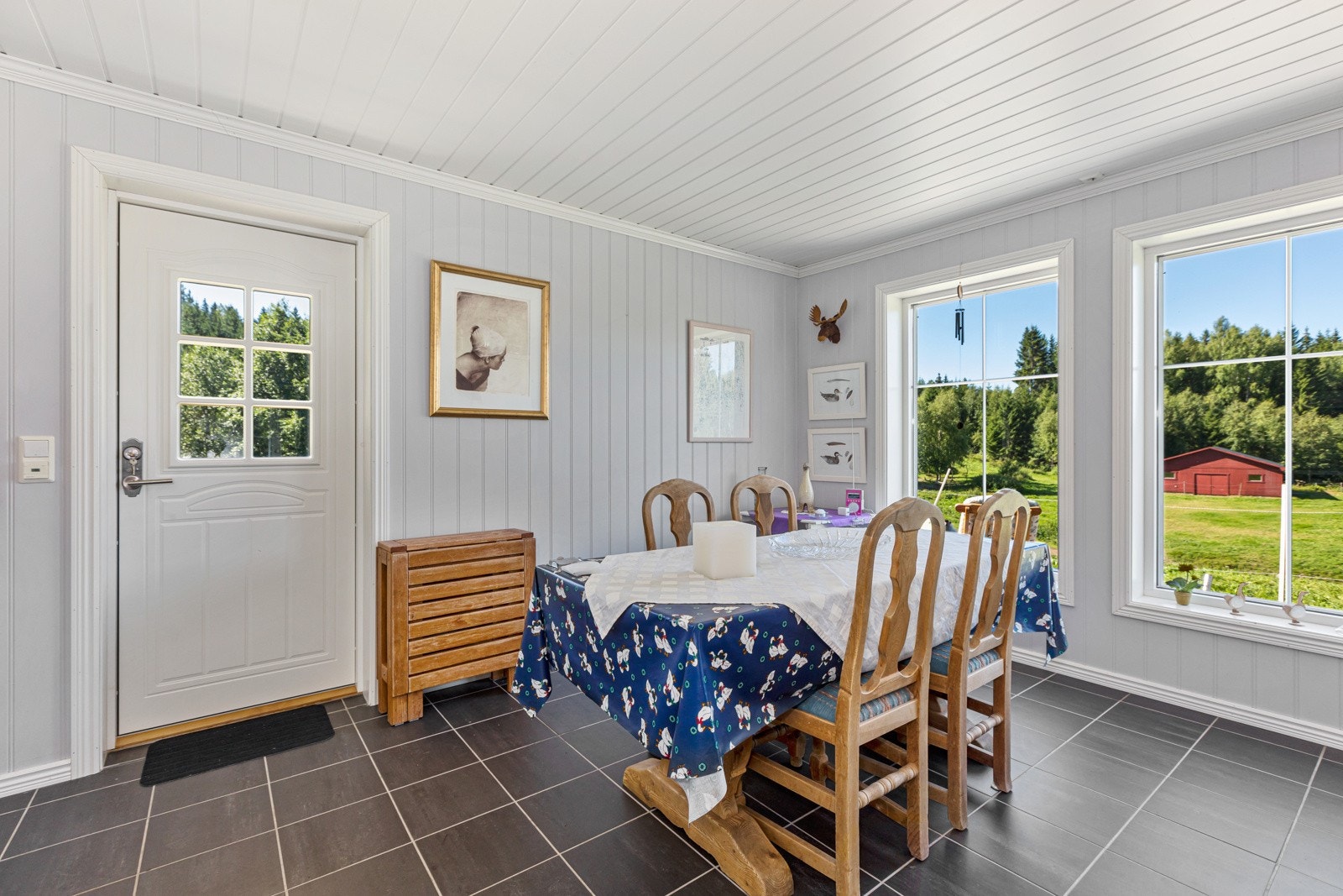 smie, stabbur og jordkjeller. Eiendommen består vider av fulldyrket jord på 16,4 daa innmarksbeite på 7,7