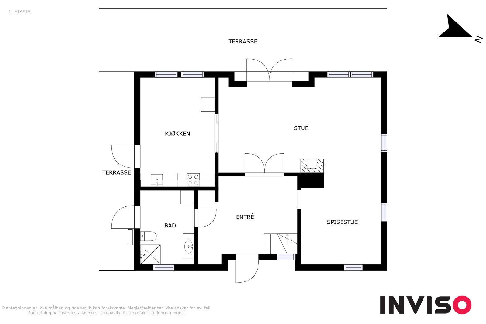 1.etg: Bad/vaskerom, stue, kjøkken, gang og spisestue.