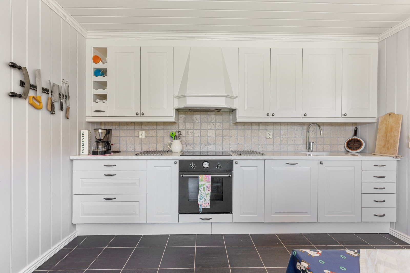 Kjøkkeninnredning: Hvit Sigdal herregård innredning med benkeplater i Corian Hvit innredning med