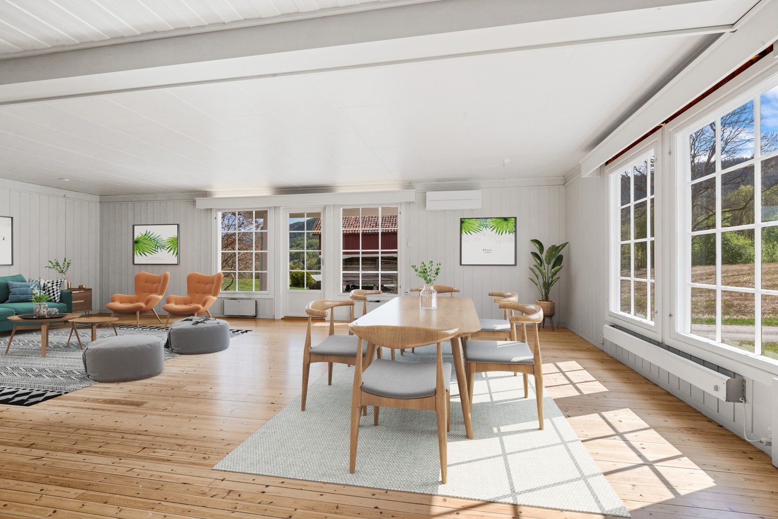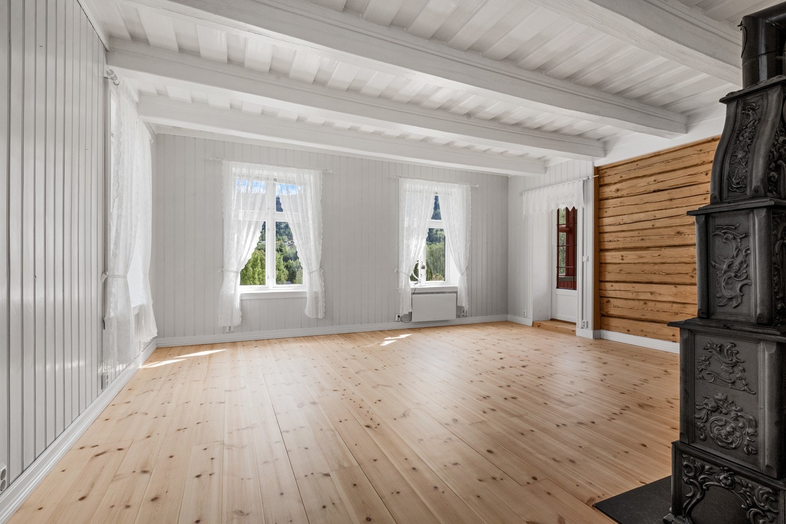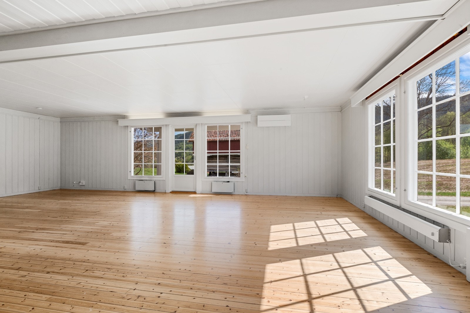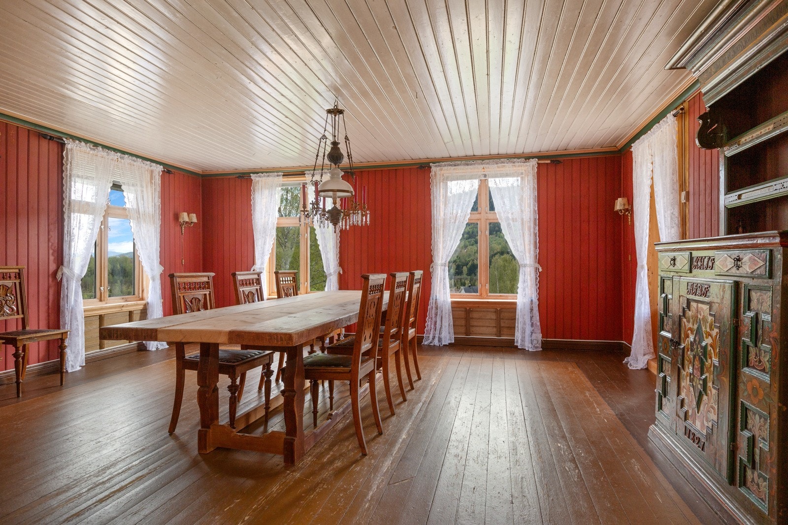 Det fine og ærverdige hovedhuset utstråler sjarm og historie, med detaljer som fremhever husets opprinnelige skjønnhet. Våningshuset er romslig og godt vedlikeholdt, med rom som inviterer til hyggelige samlinger og avslapning. Her kan du nyte tradisjonell norsk arkitektur samtidig som du har moderne fasiliteter lett tilgjengelig.