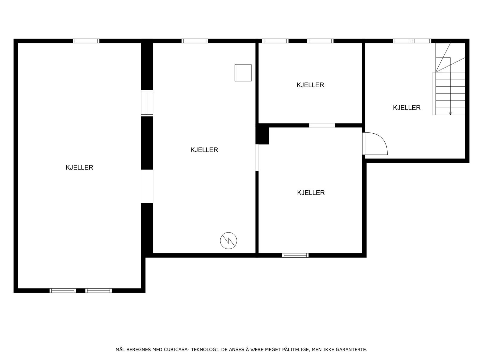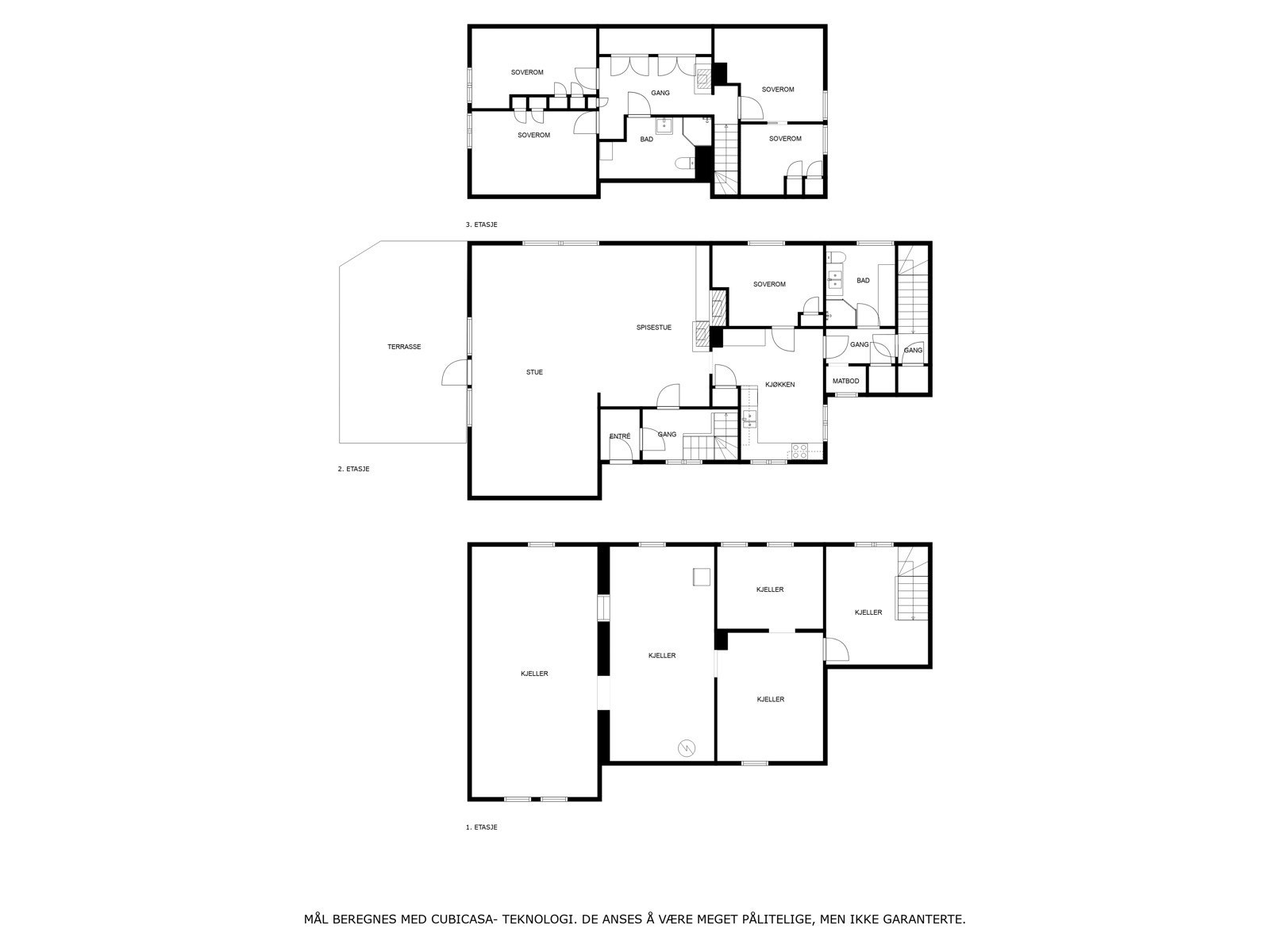 1.etg: Vindfang, trappegang, stue, kjøkken. soverom, mellomgang, spiskammers, bad/vaskerom, kjellernedgang.