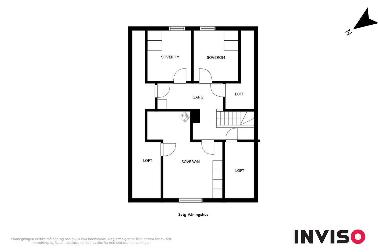 Adkomst via luke i gang i 2. etg. Kun for inspeksjon.