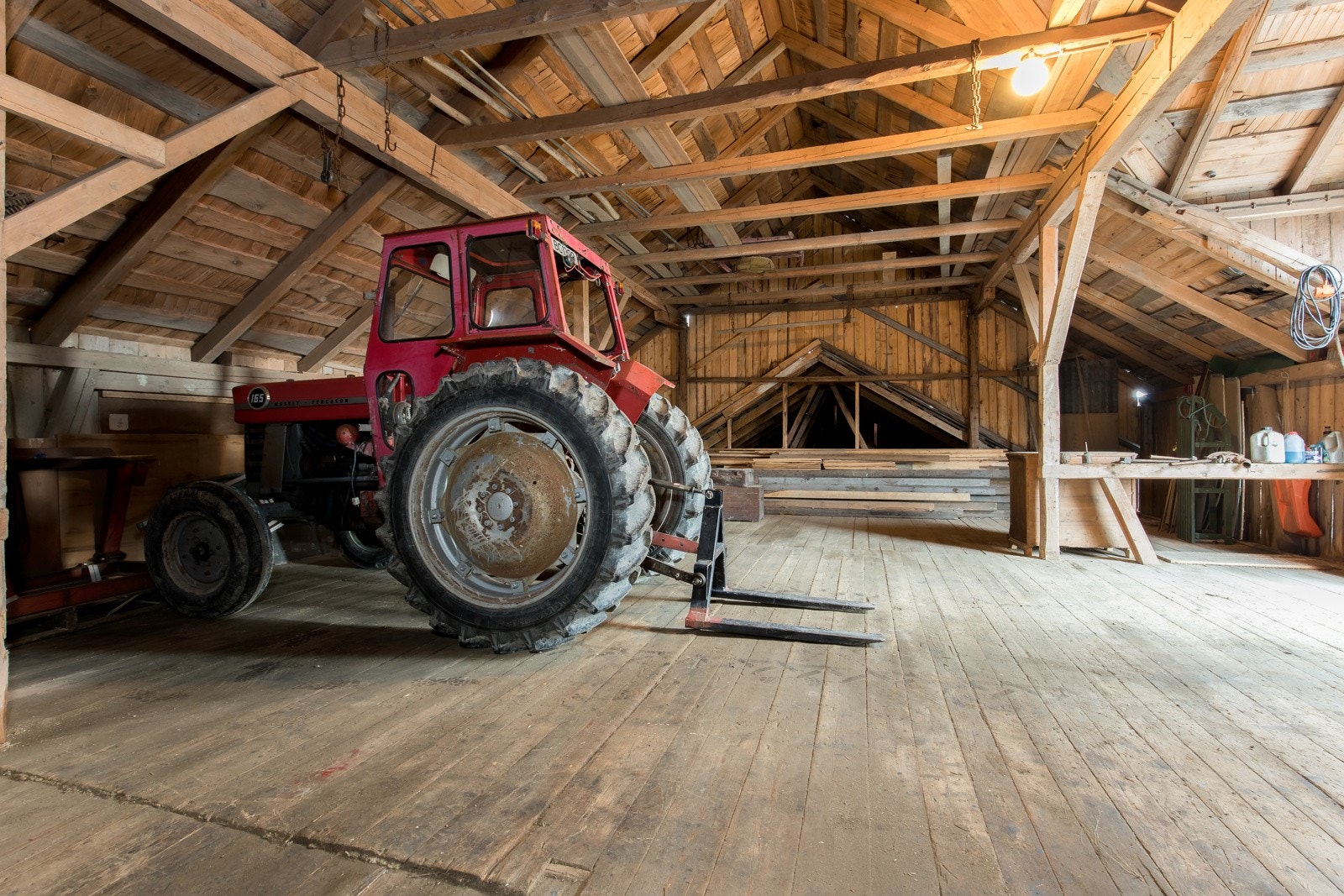 Låvedel - to rom under kjørebrua - lagringsrom. I tillegg er det en meget anvendelig verksteddel med et