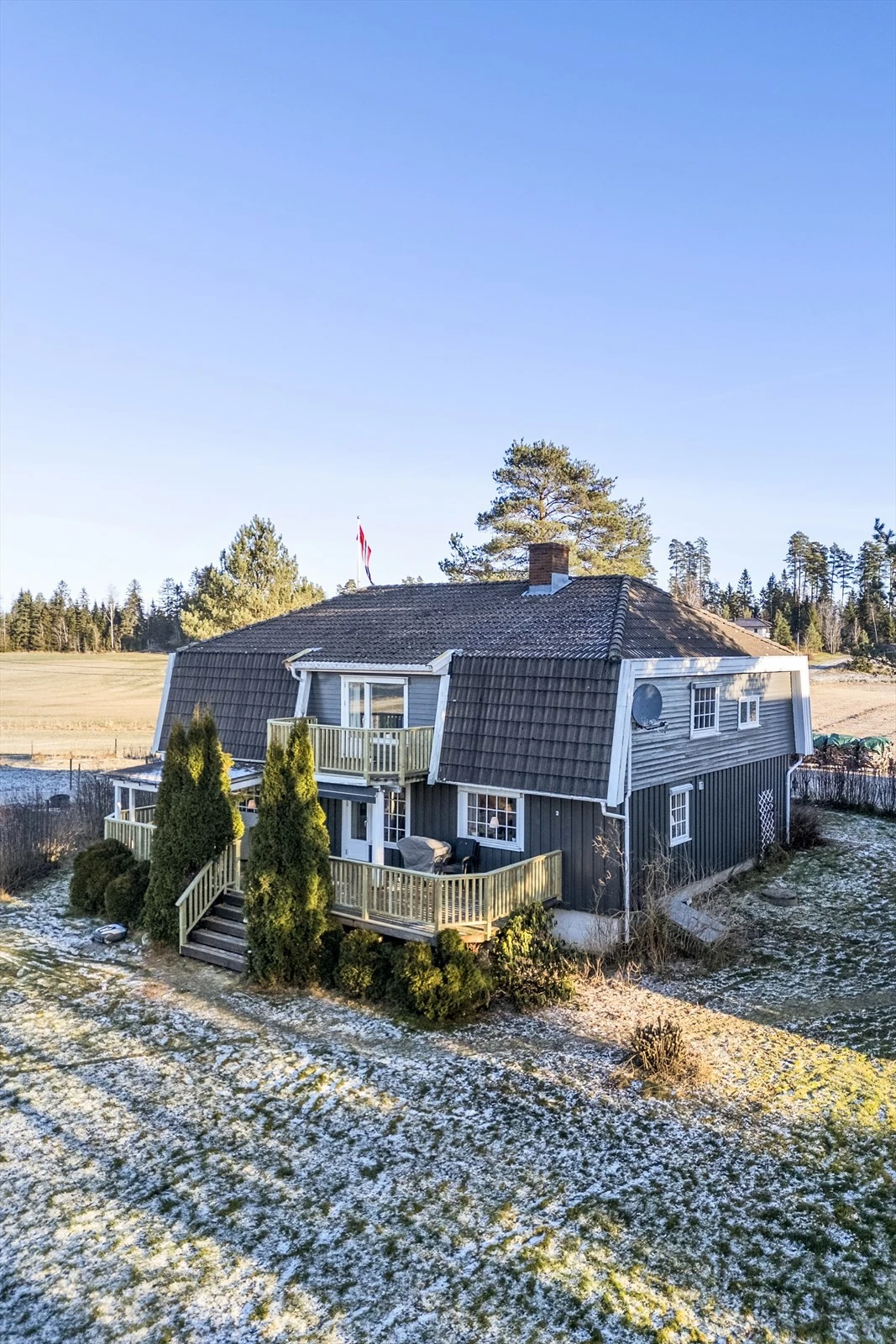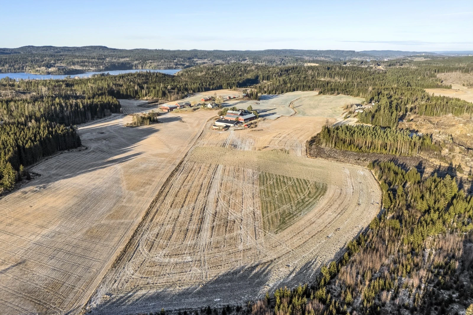 Velkommen til Herrudveien 94/»Herrud øst» – En idyllisk beliggende landbrukseiendom på ca. 394 daa. Eiendommen har 178,3 fulldyrka jord og 198,4 produktiv skog. Det er drift med kornproduksjon, skogbruk og husdyrhold med smågris og slaktegrisproduksjon. Gården driver kombinert produksjon, og det produseres p.t. ca 1400 slaktegris og 600 smågris pr. år. Nydelig tun bestående av stor gruset gårdsplass og opparbeidet hage med prydbusker og beplantninger. På eiendommen er oppført våningshus, garasje, redskapshus m/verksted og to grisehus. Våningshuset har 2 plan og inneholder bl.a. 4 soverom, 2 stuer og bad.