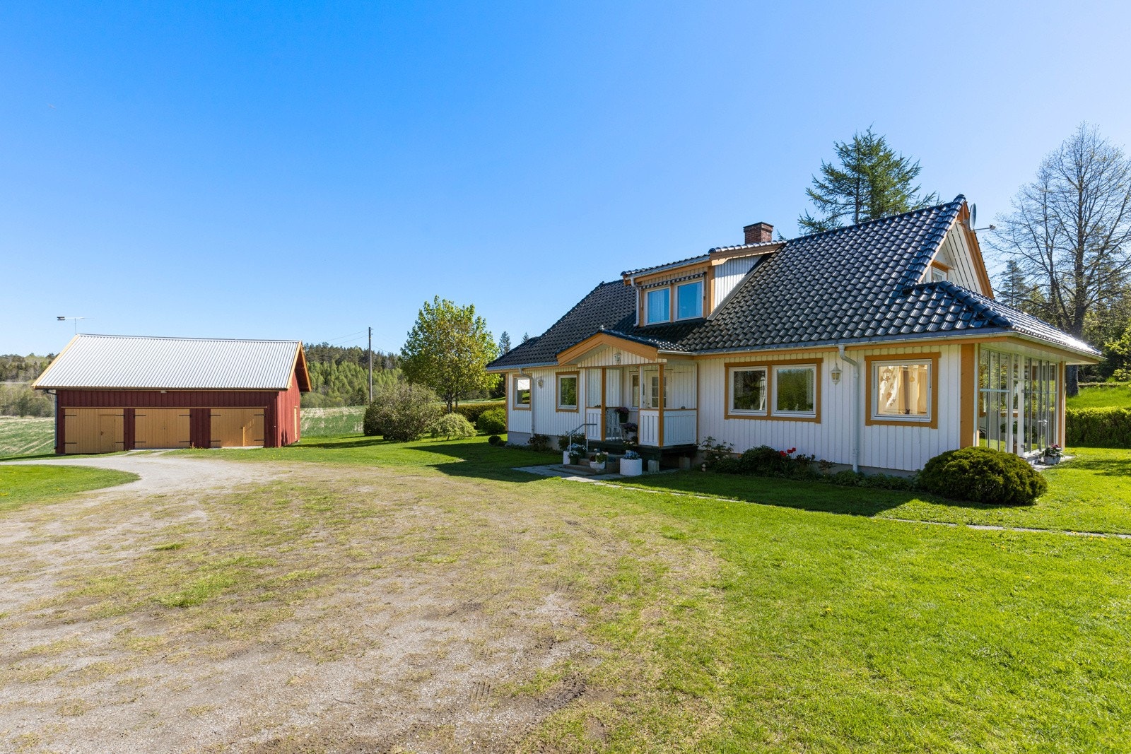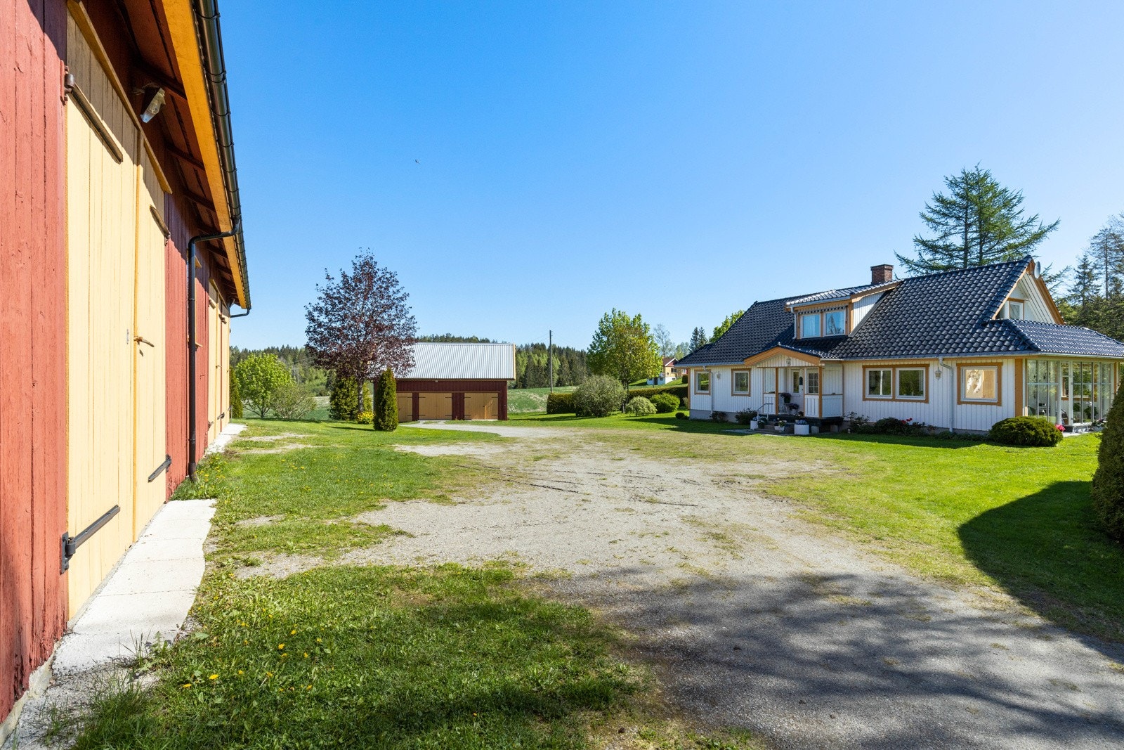 Eiendommen har en fin beliggenhet i vakkert kulturlandskap med jord og skog. Tunet ligger solrikt og flott