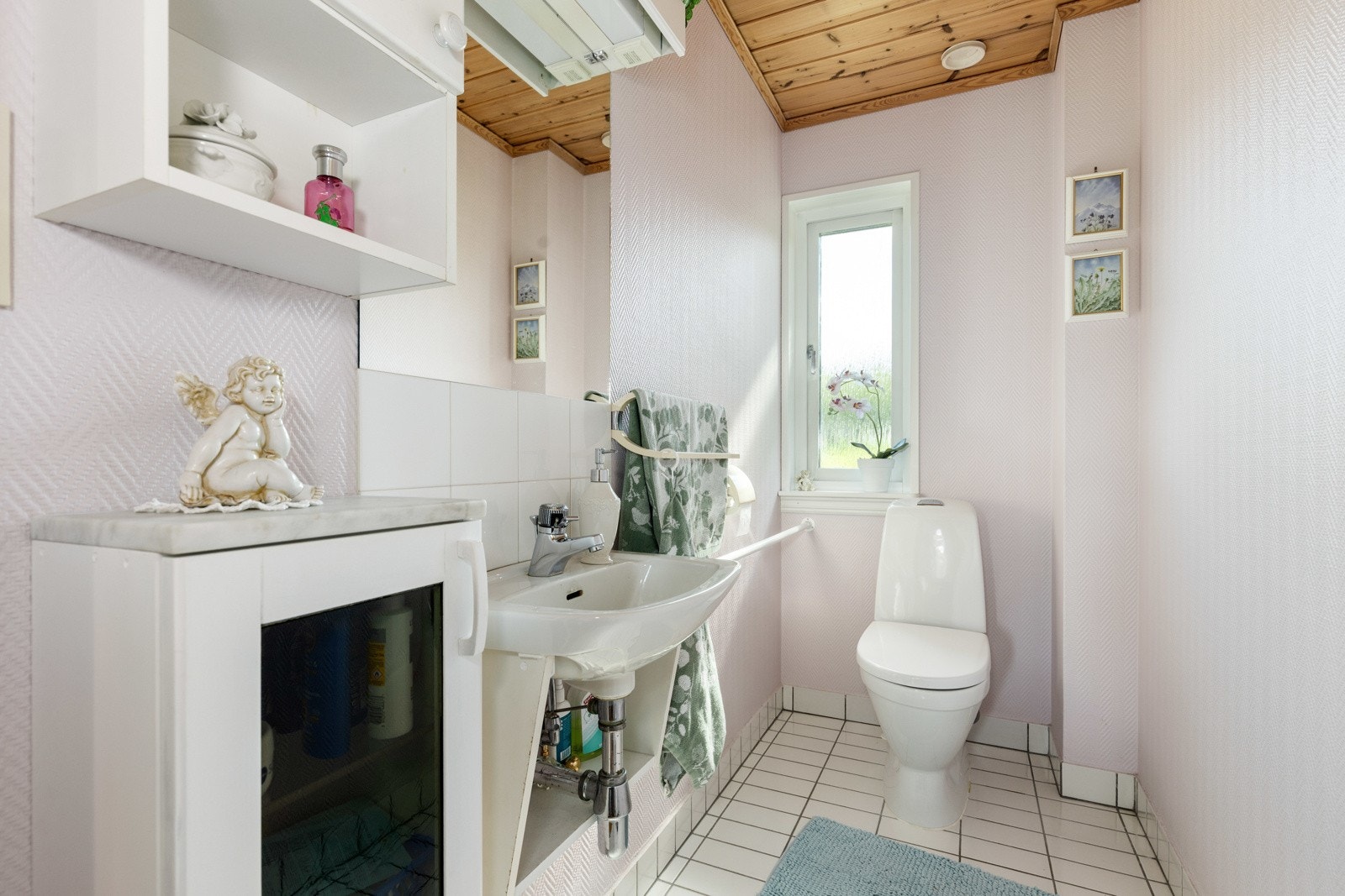 vaskerom med dusj og egen utgang til tomten via overbygget terrasse - wc - lite lagringsrom - soverom.