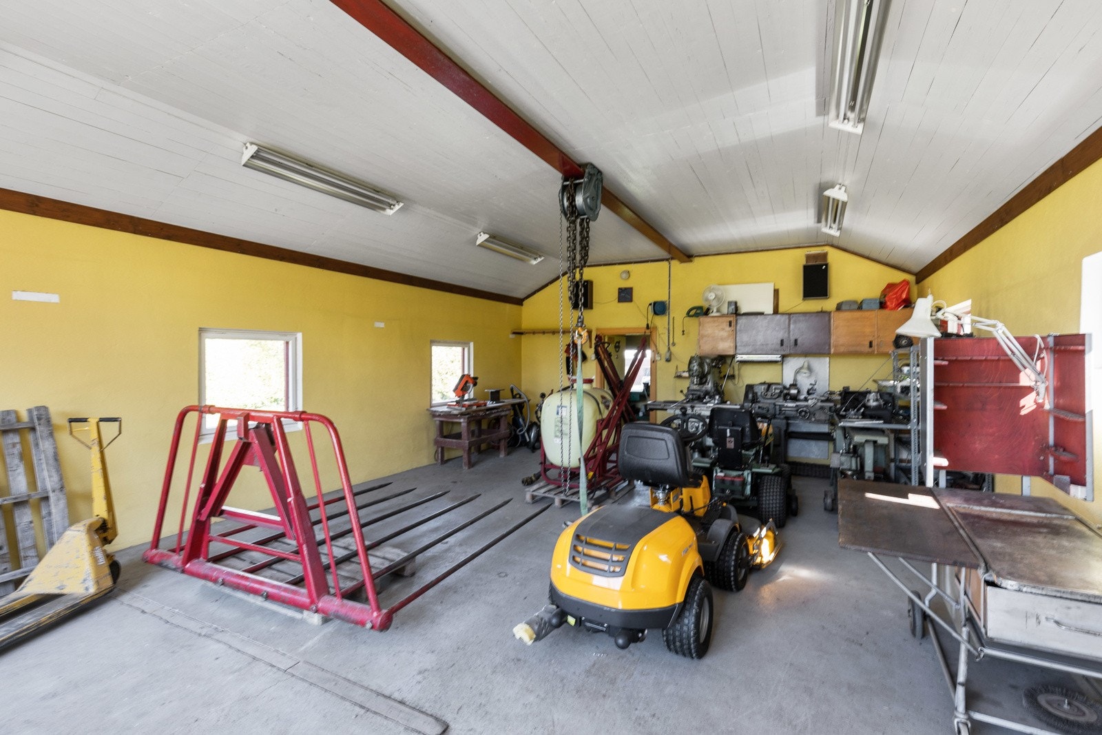 (saltak) er pålagt profilerte metallplater. Hele låvedelen er tilpasset kaldtlagerarealer for maskiner og