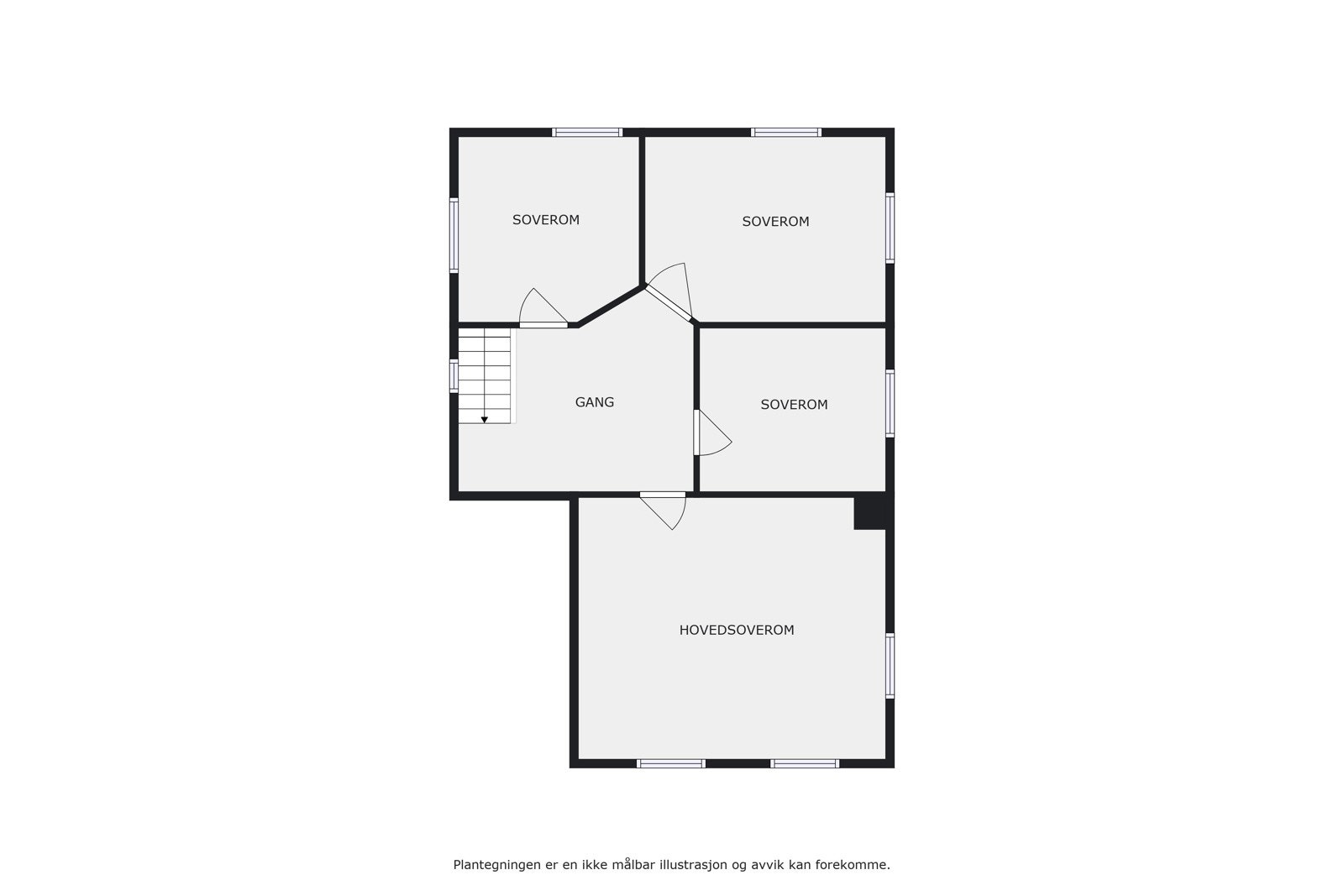 2. etasje Fire soverom, hvorav en har fått lagt opp VVS med tanke på å etablere bad / kjøkken i annen etasje