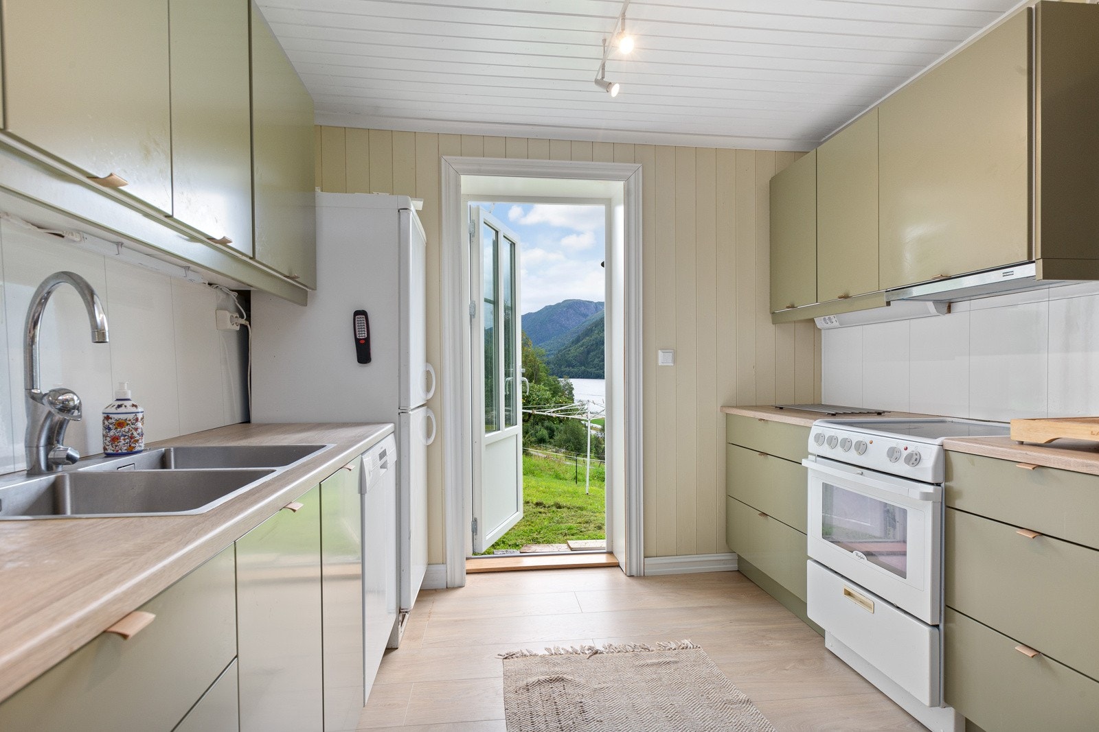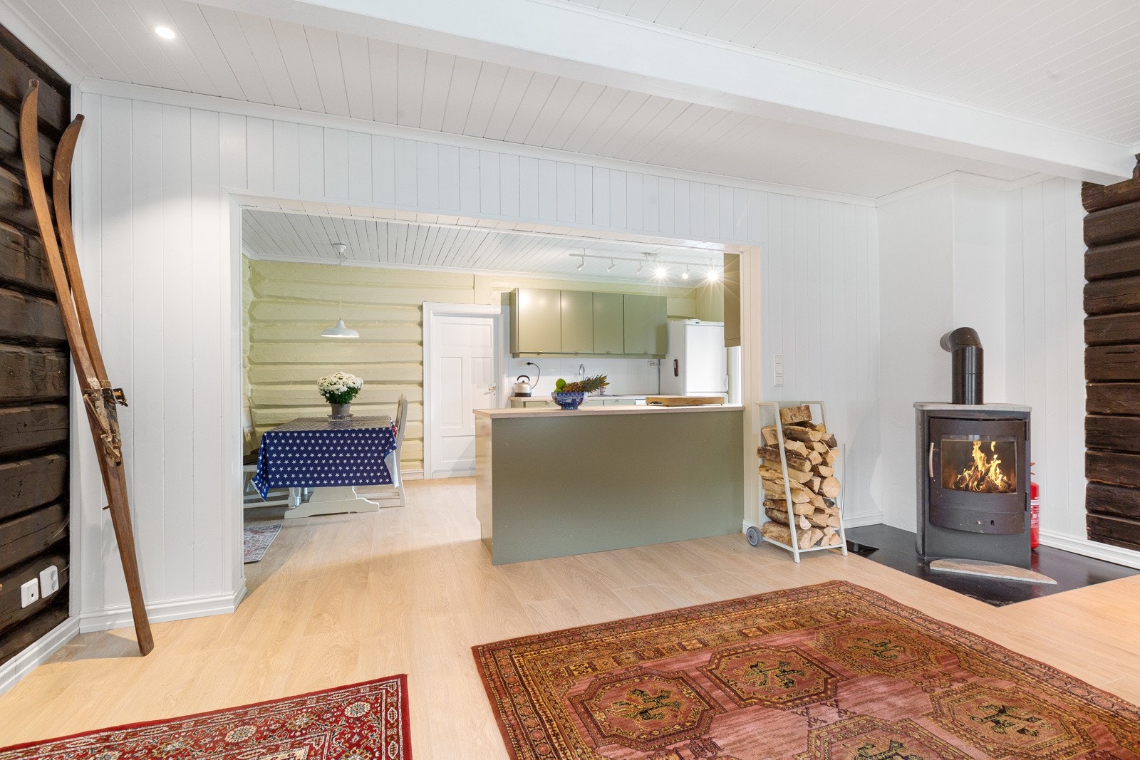 Denne idylliske, lille landbrukseiendommen har flott utsikt til Hjartsjåvatnet i øst, Mælafjell i sør, og oppover Hjartdal i vest. På kjølige høst- og vinterkvelder er det ekstra godt å sette seg godt til rette under pleddet med en deilig kopp med te og en god bok (kanskje et norsk folkeeventyr?), mens du hører på knitringen fra vedovnen. Det er også installert varmepumpe, så her i huset blir det varmt svært raskt.
