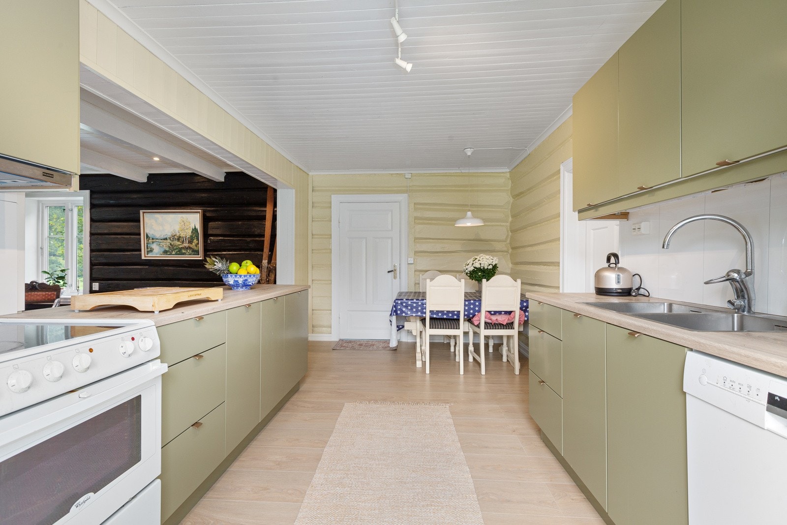 Kjøkkenet har ventilator med omluft (kullfilter). Det er kun kullfilterventilator på kjøkkenet og heller ikke andre forserte/mekaniske avtrekksløsninger fra kokesonen.