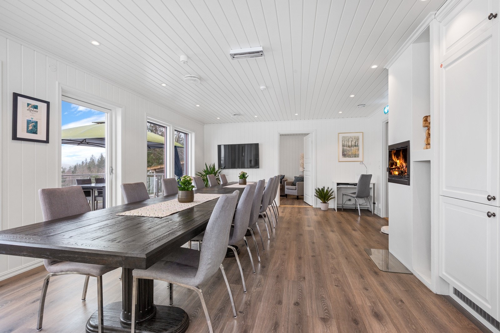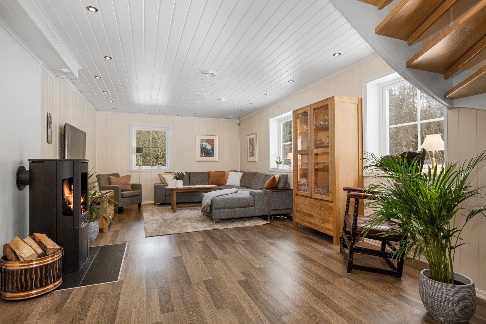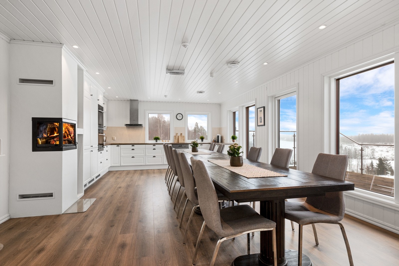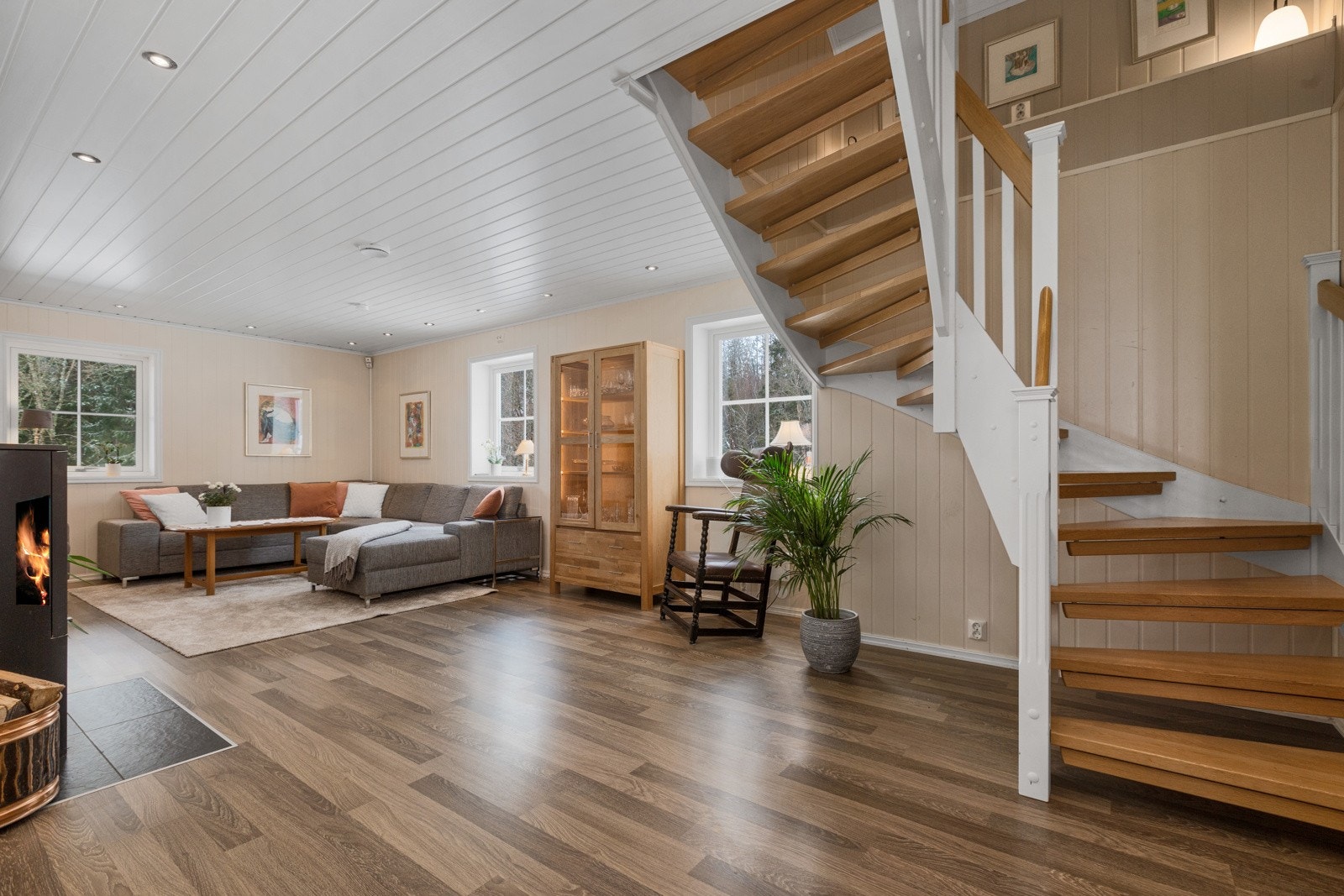 - Stort hovedhus med 4 soverom, 2 bad, stue med peisovn og 68 m2 terrasse