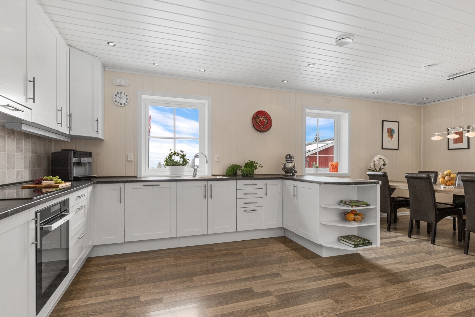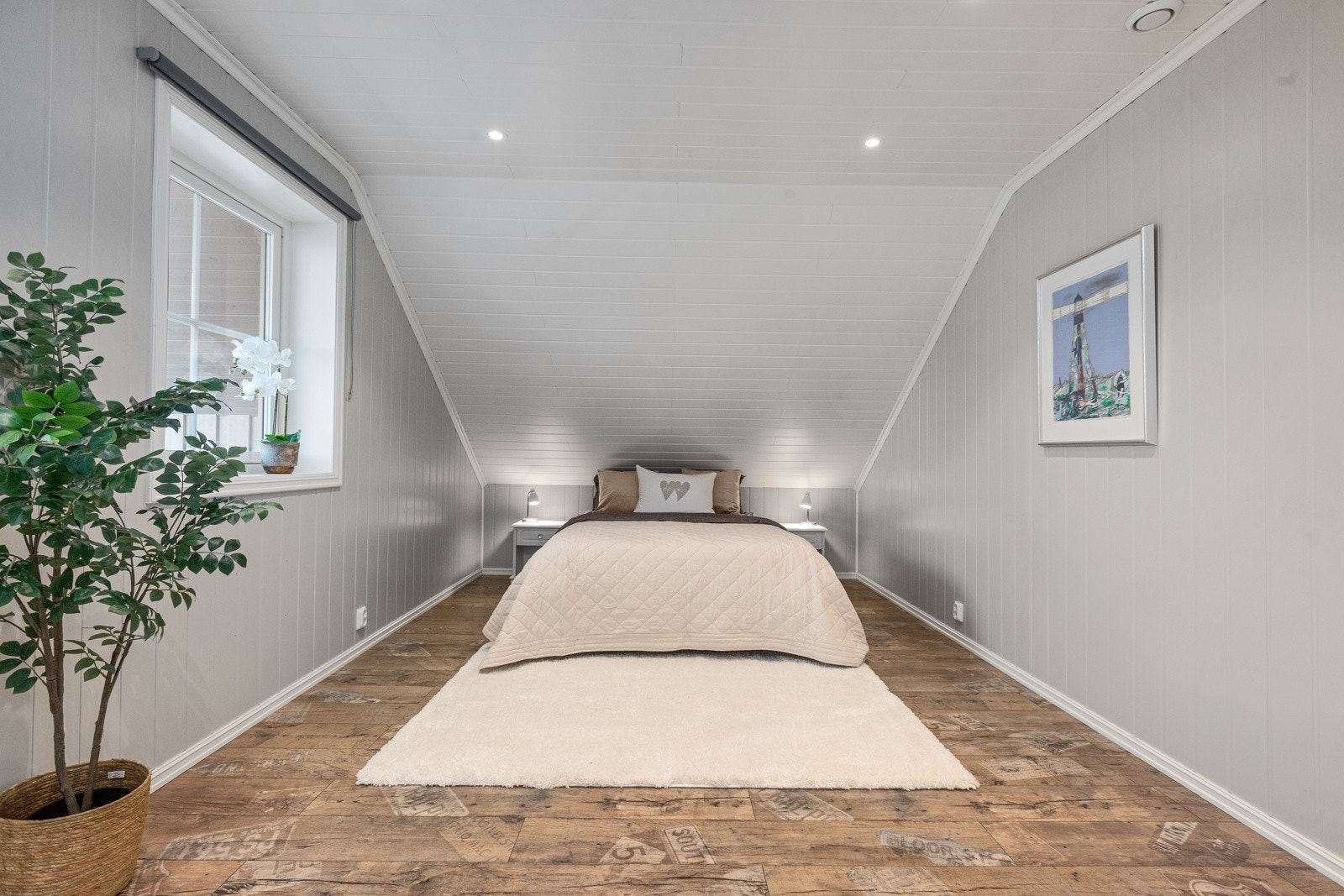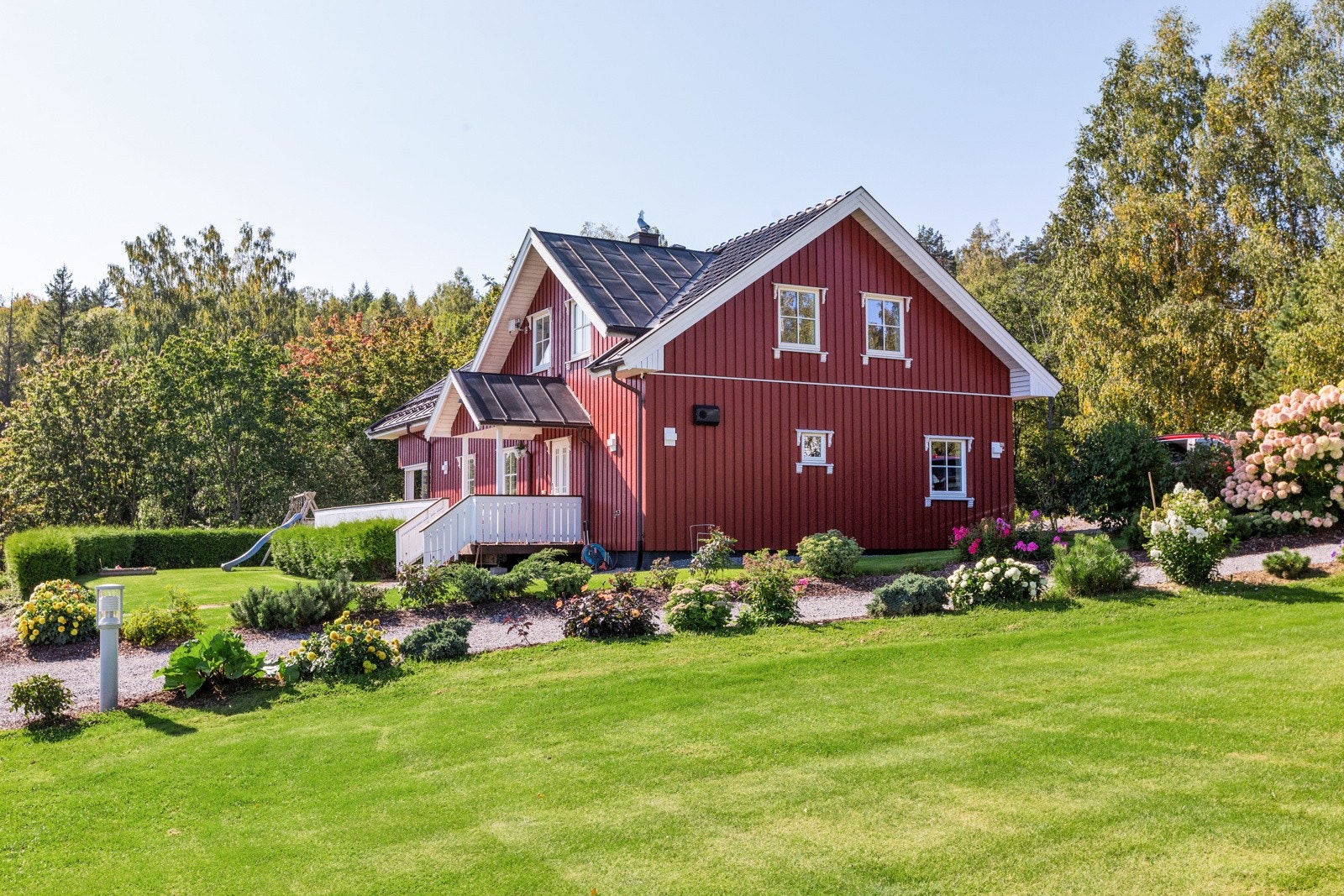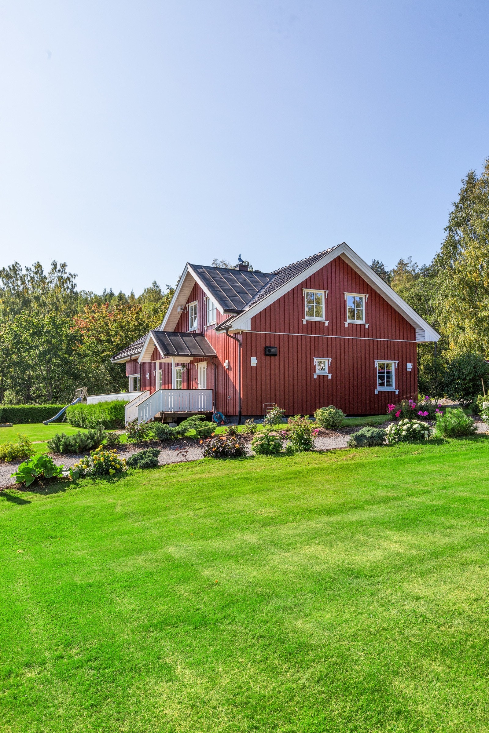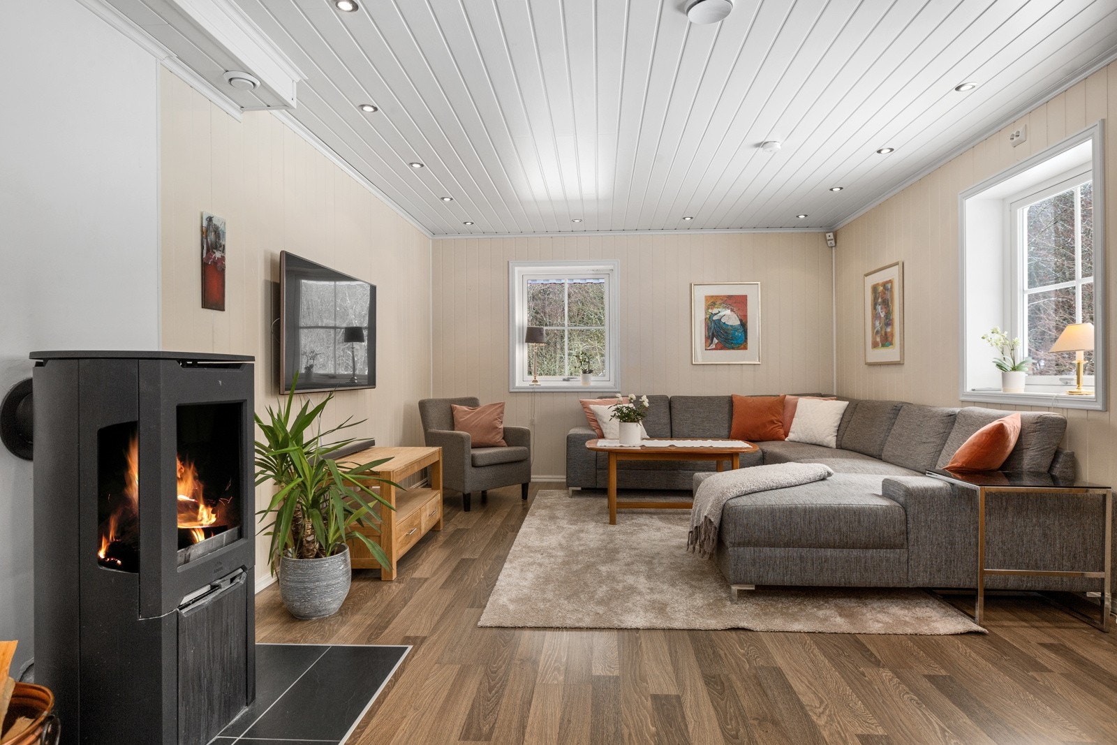 - Stort hovedhus med 4 soverom, 2 bad, stue med peisovn og 68 m2 terrasse